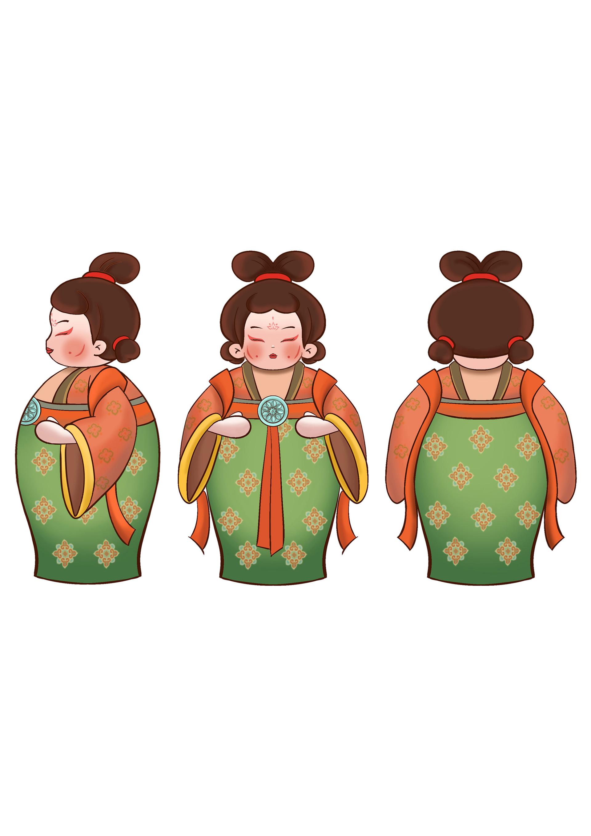 【Character description】: Taken from Tang's Female Yong. The image of the character is intentionally broadly handled. It represents the image of Tang Dynasty women as fat and beautiful. The clothes are modelled with a belt taken from the ‘Lotus Pattern Wadang’ of the Hua Qing Palace and the lotus flower decoration. The inner shape of the wadang is changed to a lotus pattern. The style of the hemline takes the pattern of the wadang. The hem is arranged in a staggered way to reflect the elements of Hua Qing Pond as much as possible.