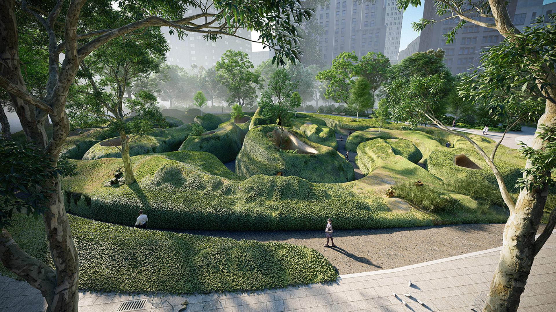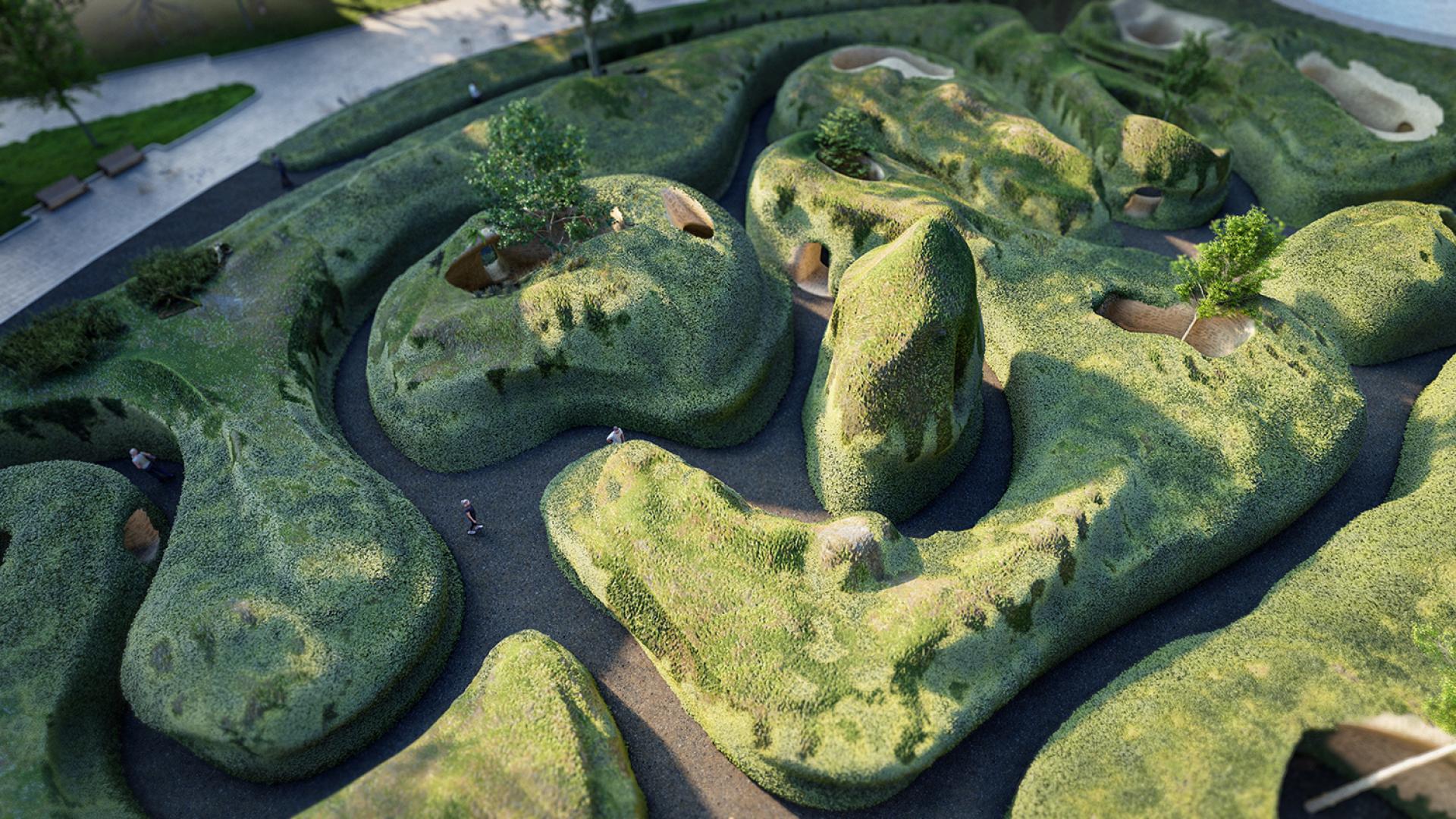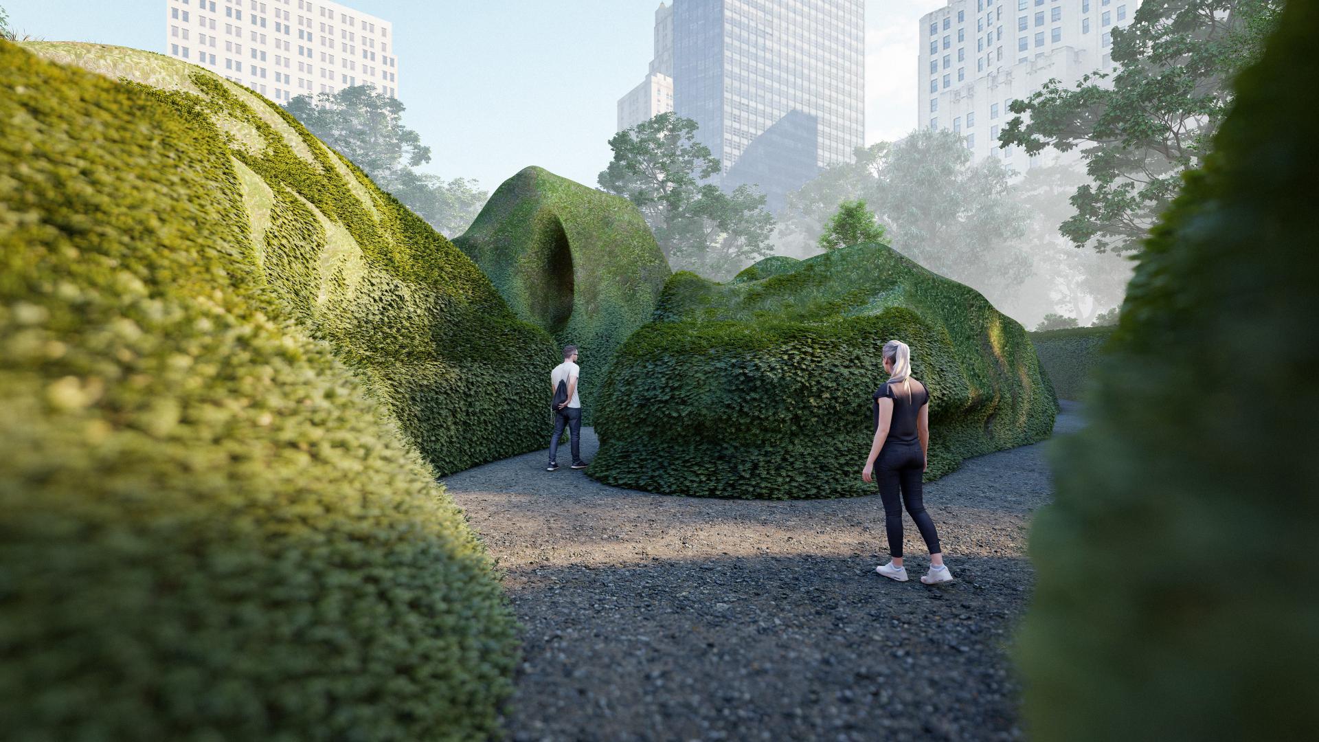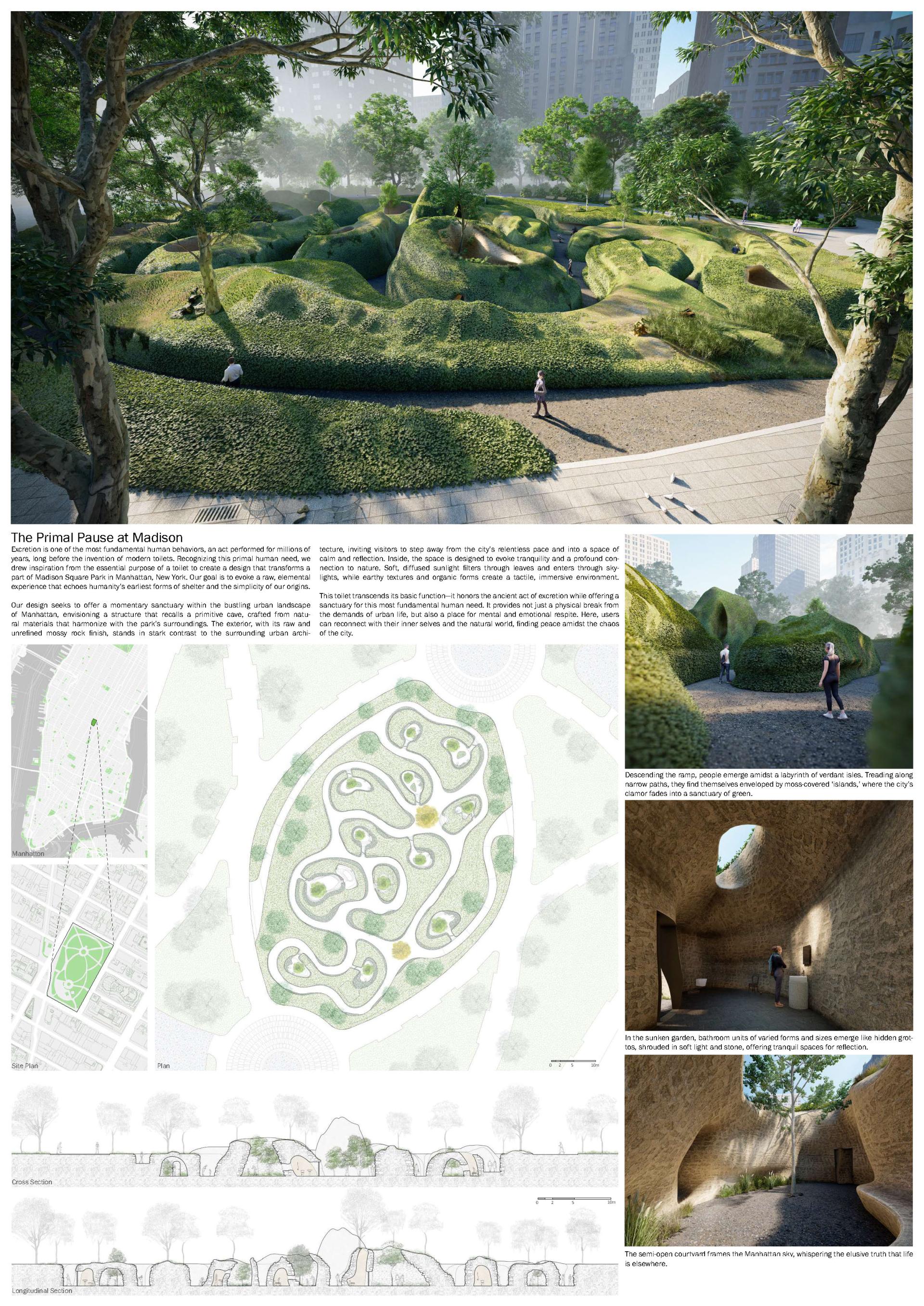 Excretion is one of the most fundamental human behaviors, an act that has been performed for millions of years, long before the invention of modern bathrooms. Acknowledging this basic and primitive human function, we drew inspiration from the essential purpose of a bathroom to create a design that transforms a part of Madison Square Park in Manhattan, New York. Our goal is to evoke a primal experience, one that harks back to humanity’s earliest forms of shelter and the simplicity of our beginnings.