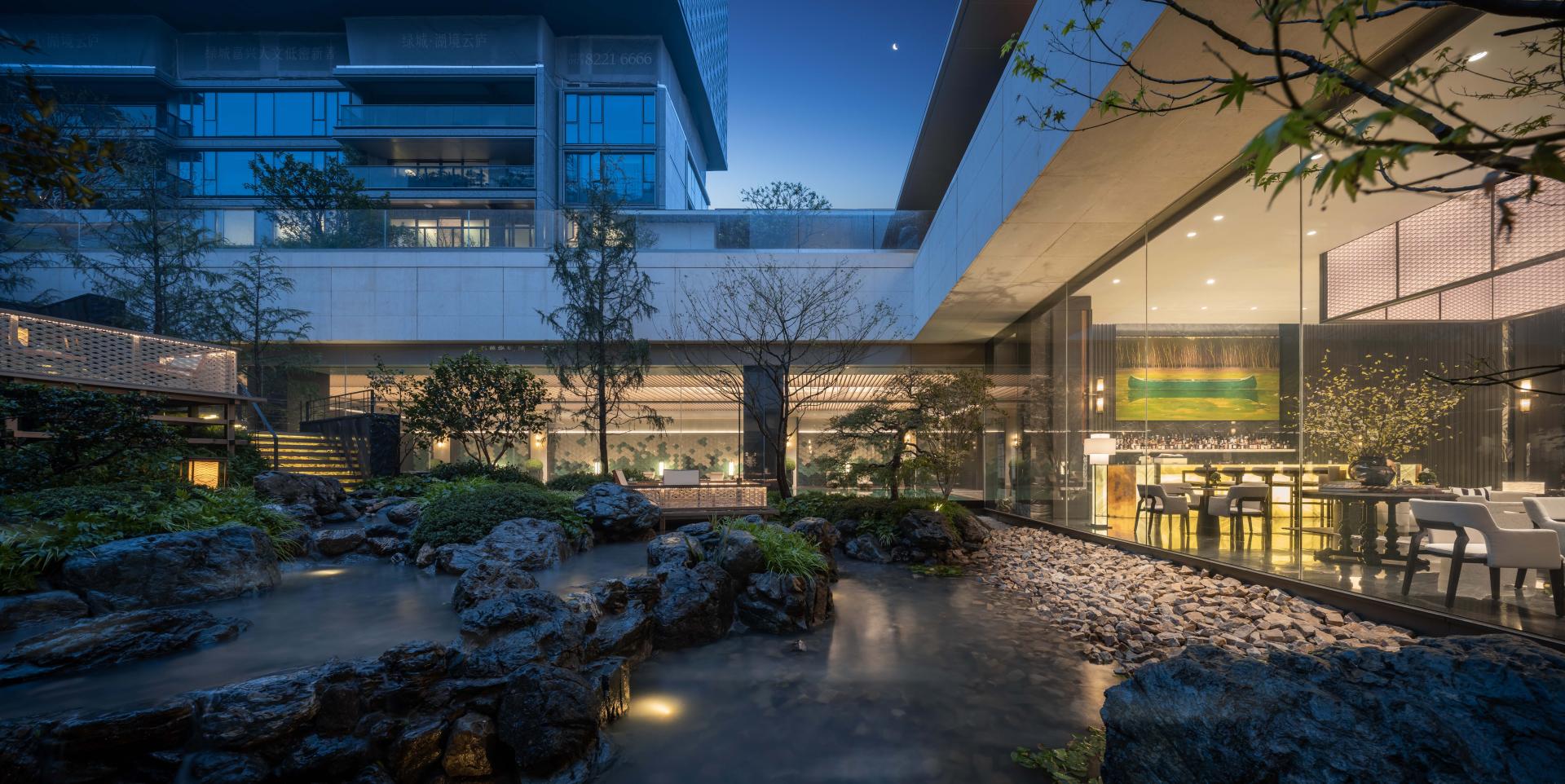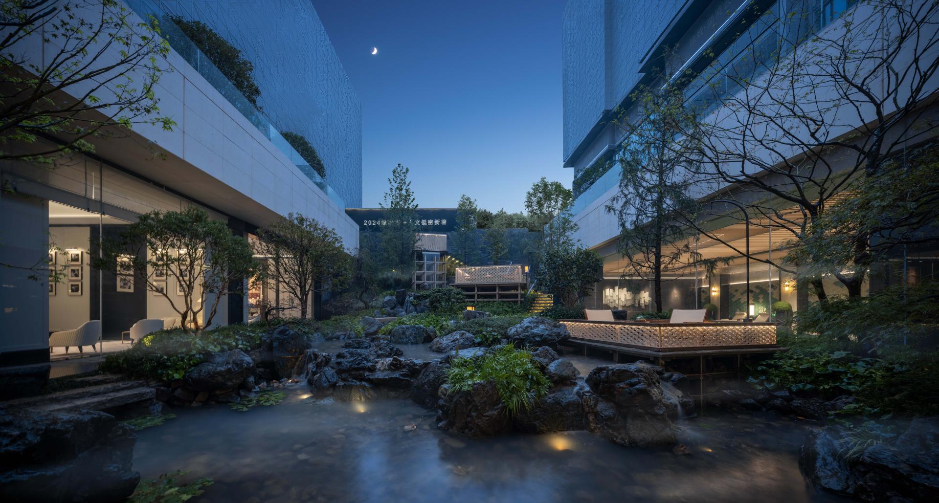 For the model home garden, LANSONG extend the imagery of mountains and water into the courtyard, preserving the refined tastes of ancient literati lifestyles while blending contemporary fashionable lifestyles, thereby crafting a daily life scenario of modern oriental gardens.