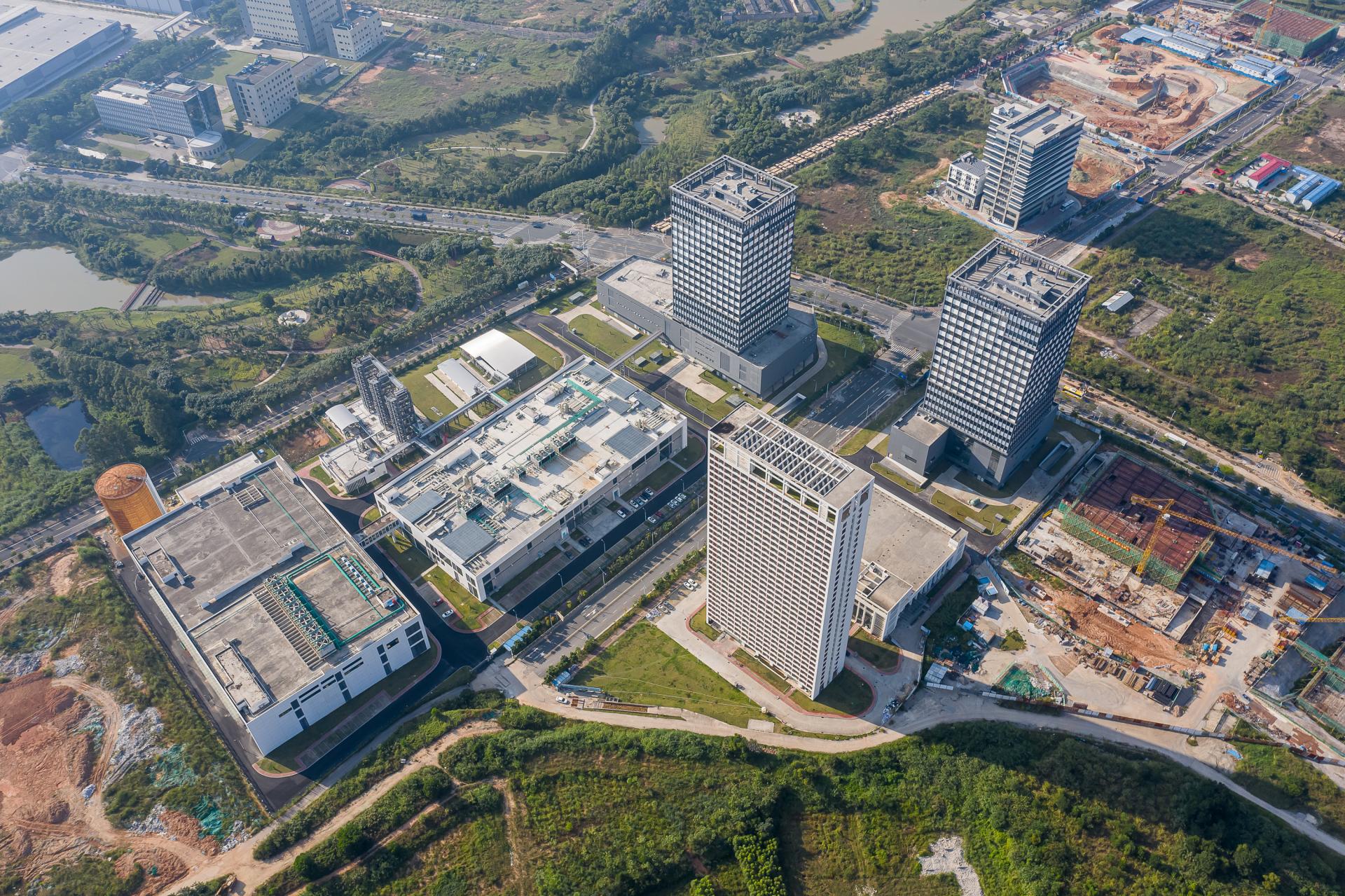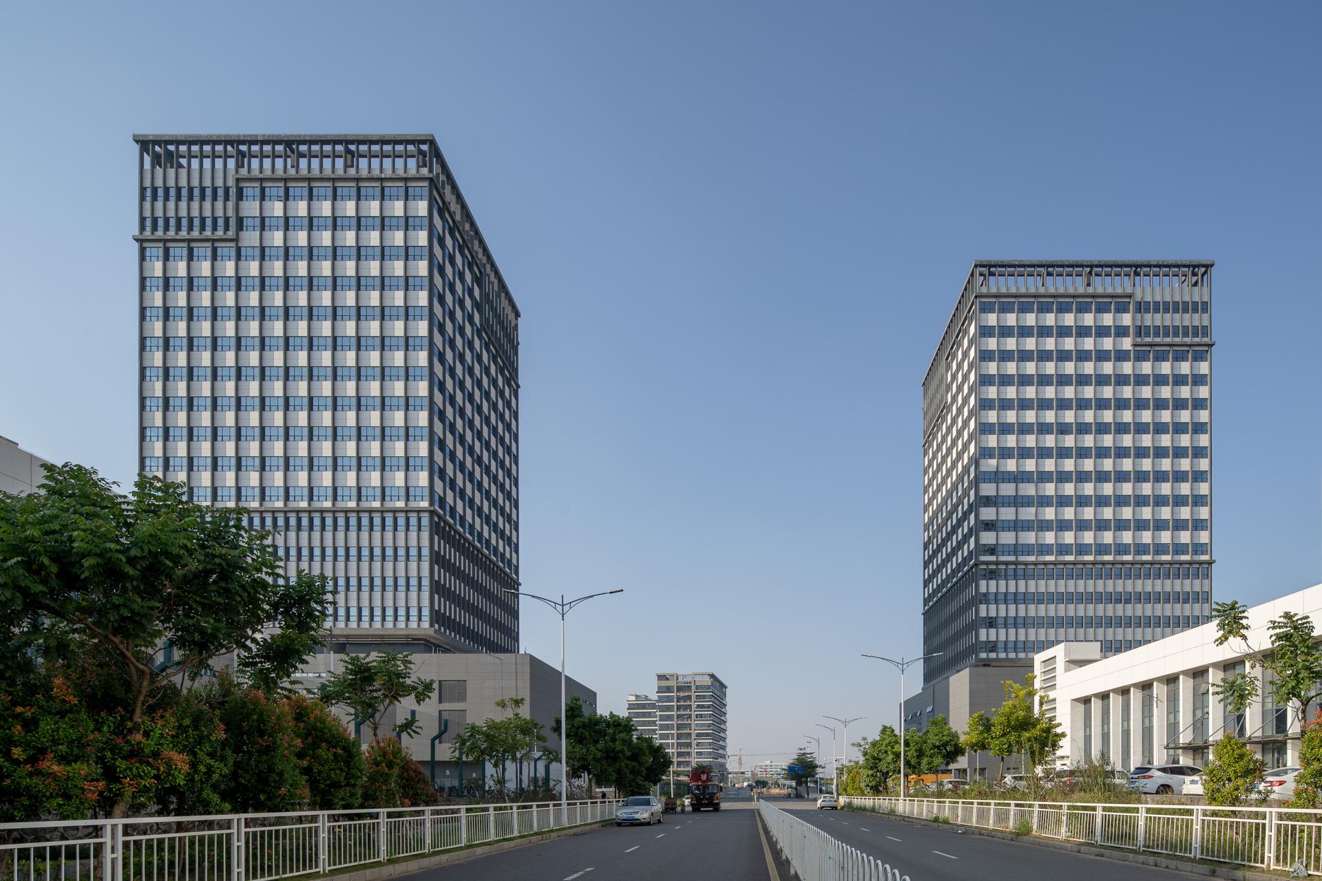 Building 3 and Building 4 are high-rises, which sit on the north sides of Plot A and Plot D1 respectively, forming twin towers on Rongtian Road and unfolding in an arc-shaped way along Jinxiu East Road with buildings under planning for the 4th construction phase. The podiums feature continuous, magnificent facades, while the towers take on square and practical forms, with the facades accentuated by strip windows and walls.