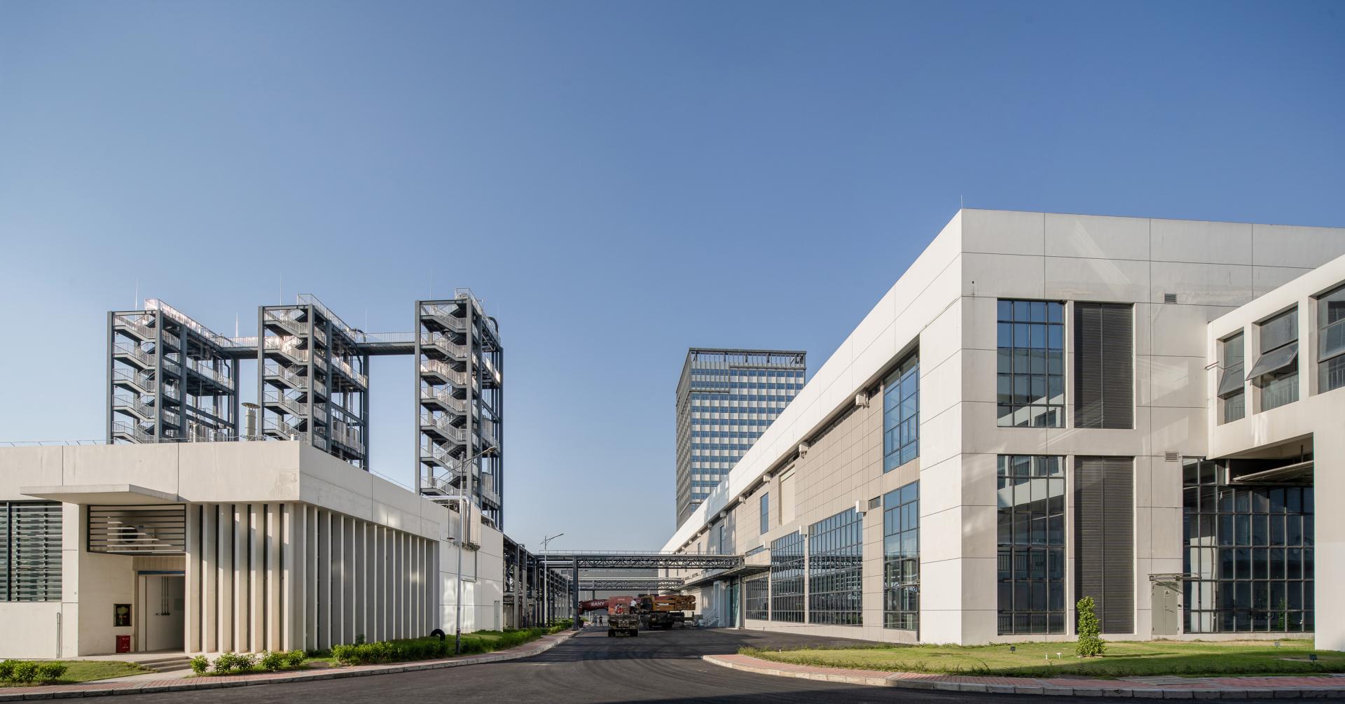 Buildings 7-1, 7-2, 7-3 and 7.4 serve as auxiliary facilities such as solvent storerooms, sewage treatment tanks, boiler rooms, and maintenance rooms. The four buildings take on functionality-oriented forms, which echo Building 1 and Building 2.