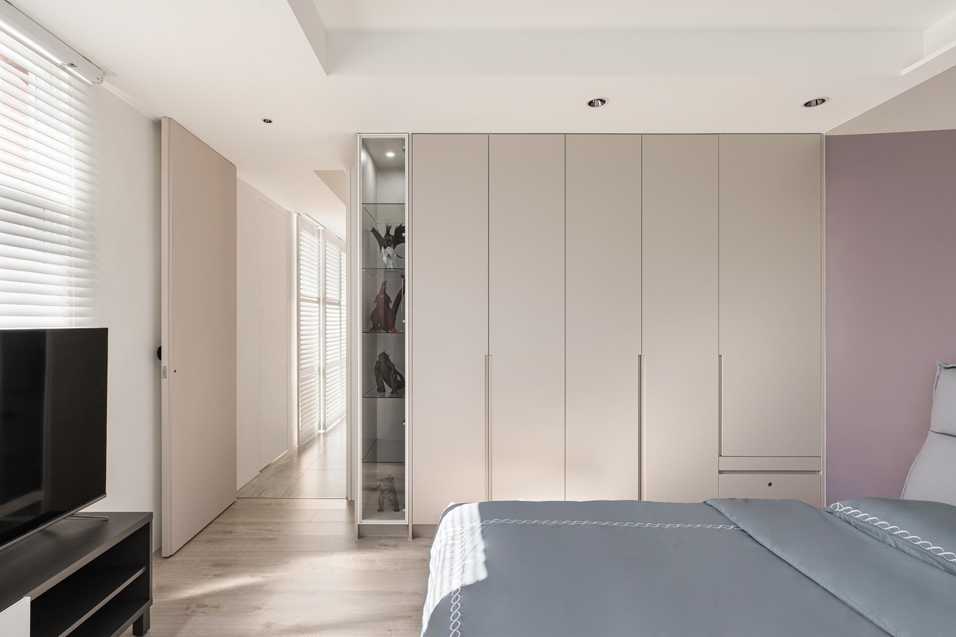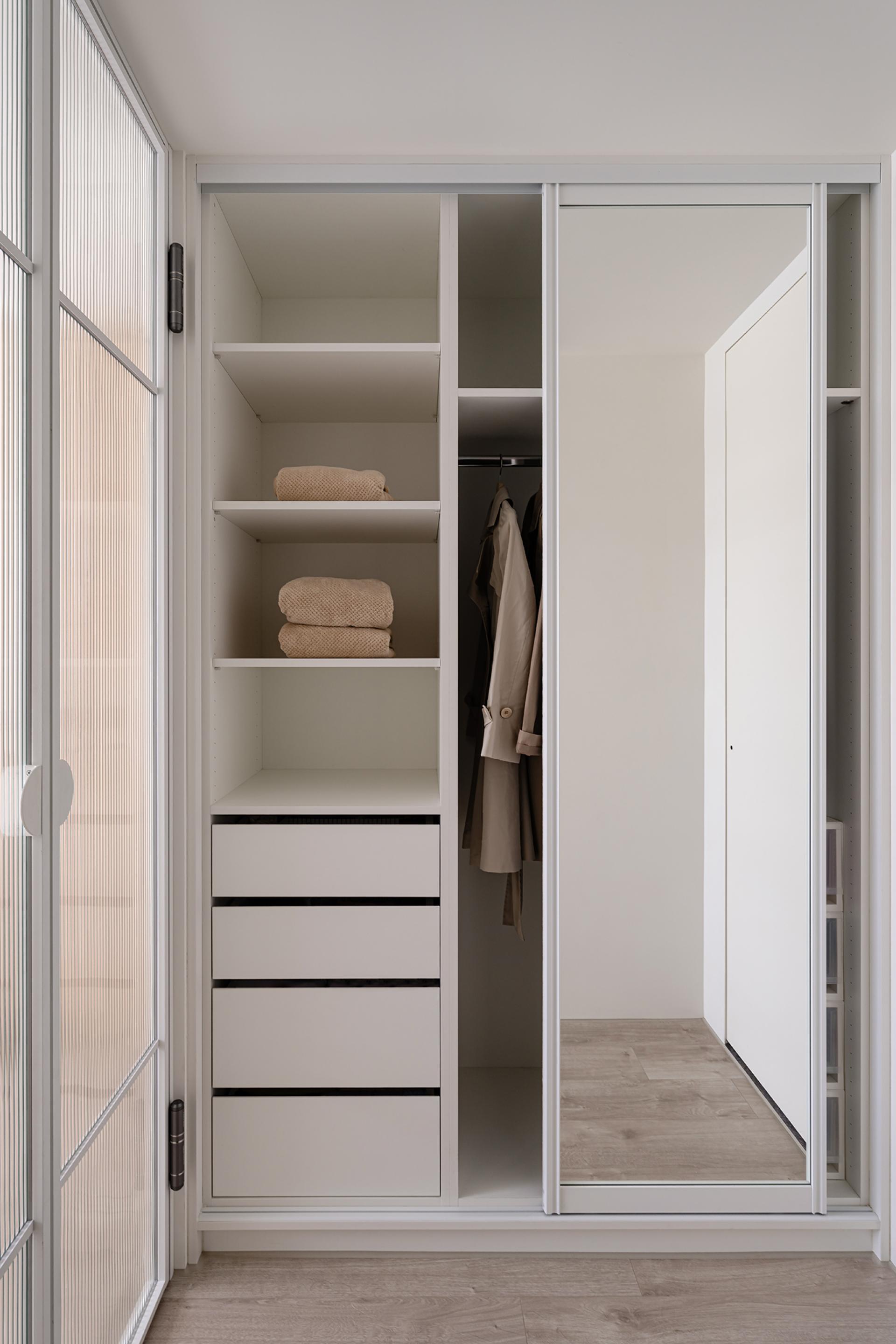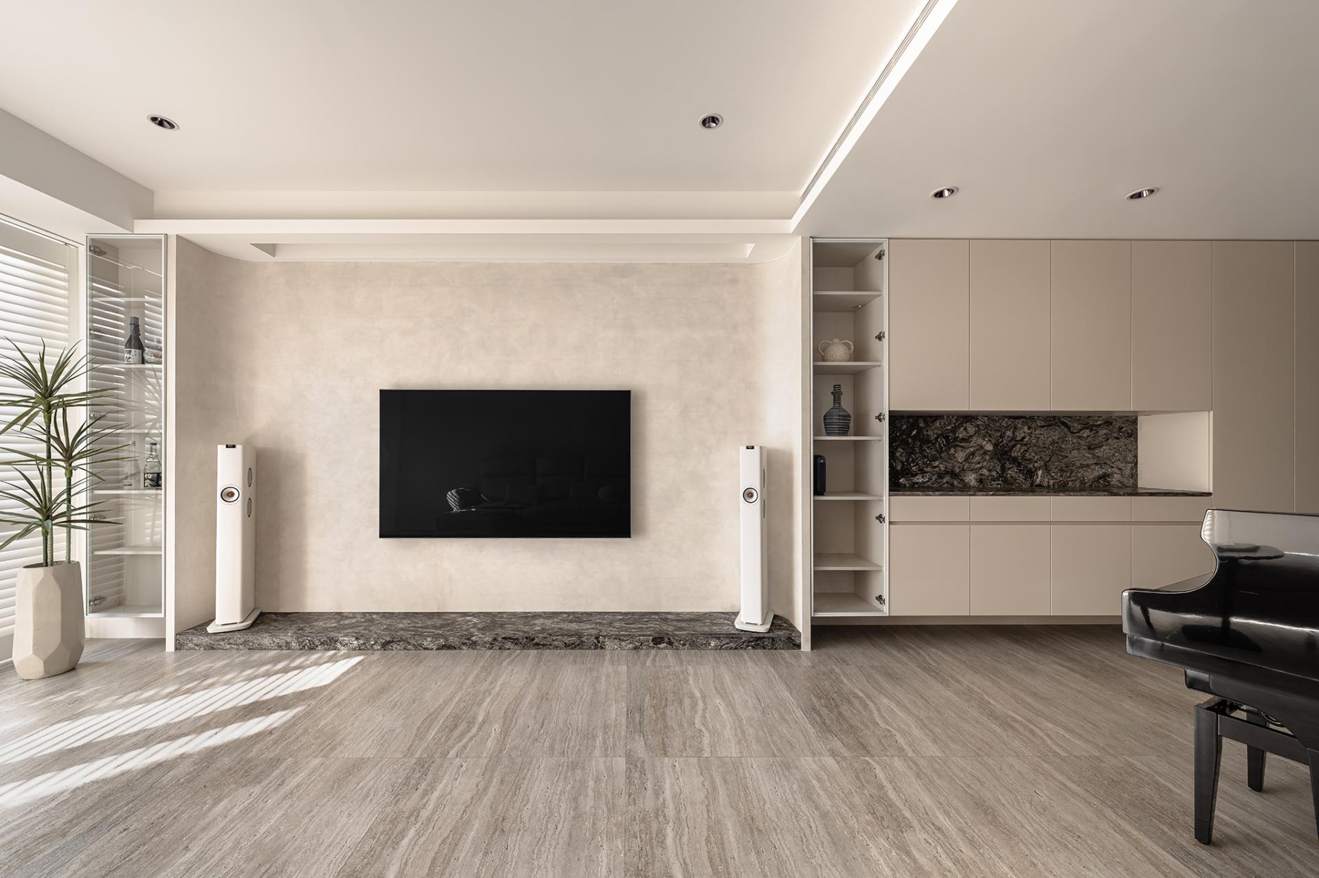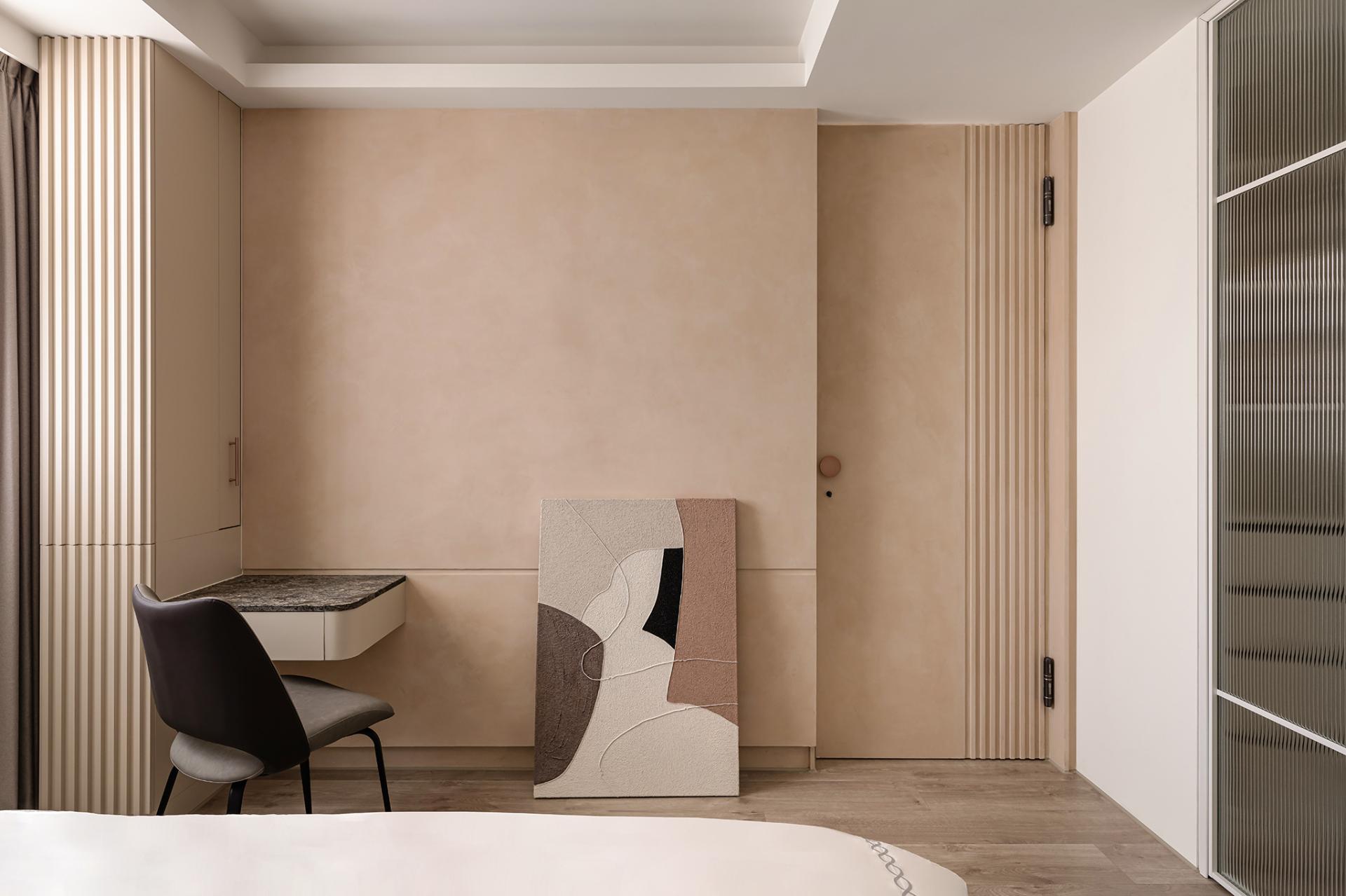 In terms of lighting design, south-facing light is guided through blinds, creating delicate changes over time that add rhythm and a soft tone to the space. At night, indirect lighting builds up in layers, outlining the three-dimensional layers between materials, making the space more tranquil and atmospheric. Additionally, the concealed door design not only maintains the integrity of the wall surfaces but also ensures smooth circulation, allowing for a harmonious transition between various materials and creating a refined and orderly space.
