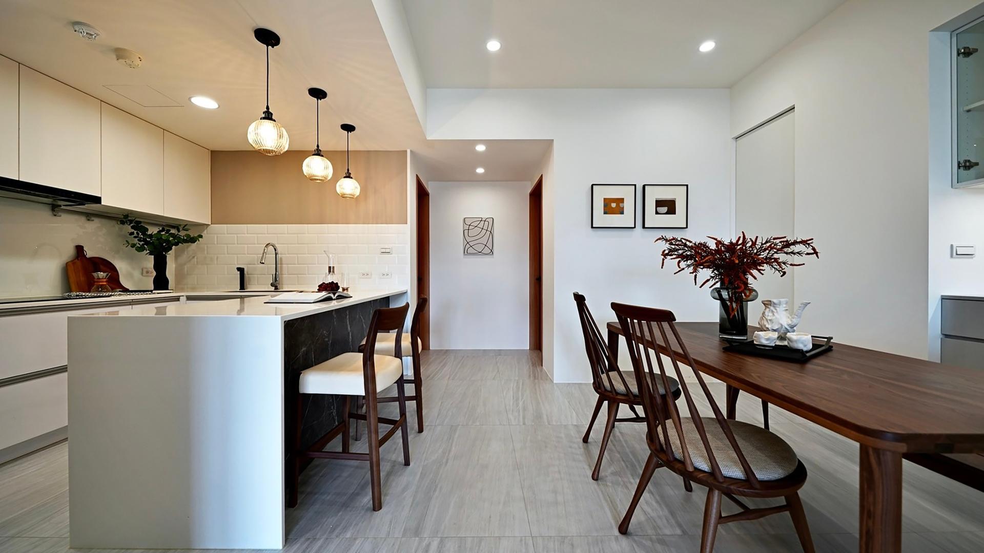 The project centers on the "dialogue between light and space," utilizing large windows to invite abundant natural light while incorporating glass partitions to enhance overall transparency. At the same time, the open plan seamlessly connects the living room, dining area, and entrance, creating a spacious and smooth social area. Careful planning of the demolition work and structural reinforcements not only preserves the existing safety foundations but also creates more flexible spatial configurations.