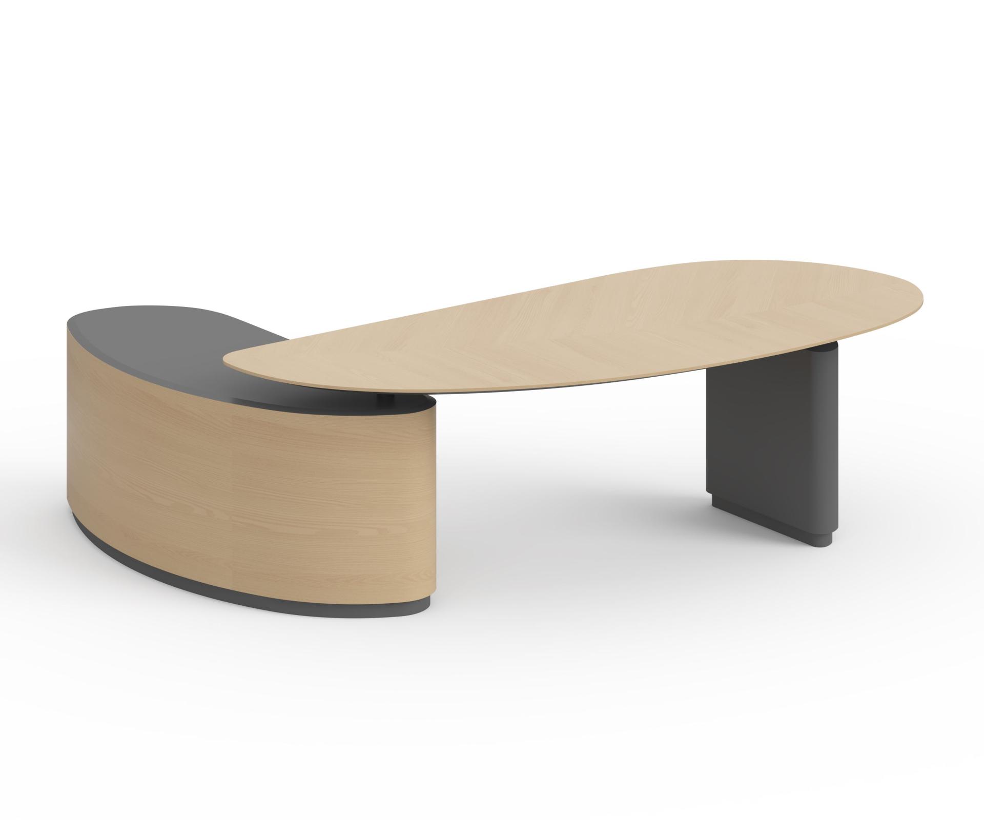 This leaf-shaped desk presents a harmonious blend of aesthetic appeal and practical functionality, combining a modern minimalist design with ergonomic considerations to create an optimal environment for focused work and innovative thought.
