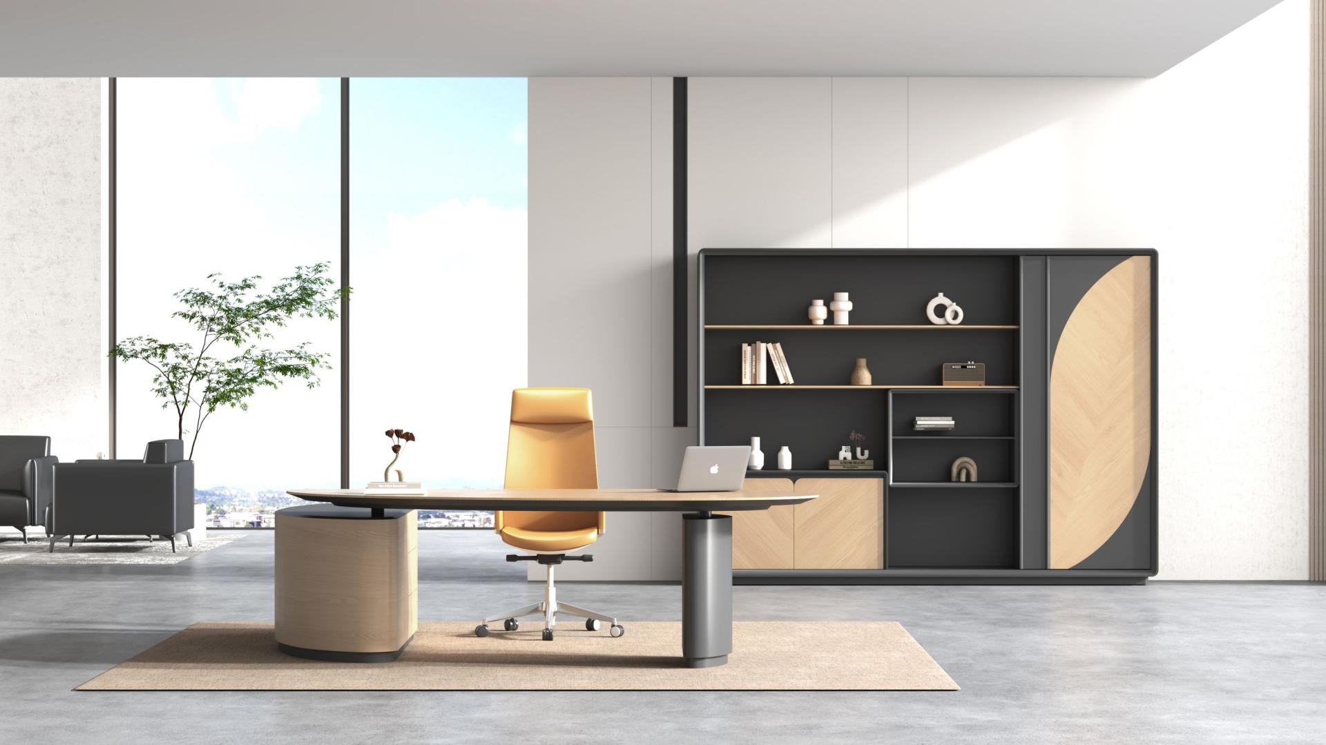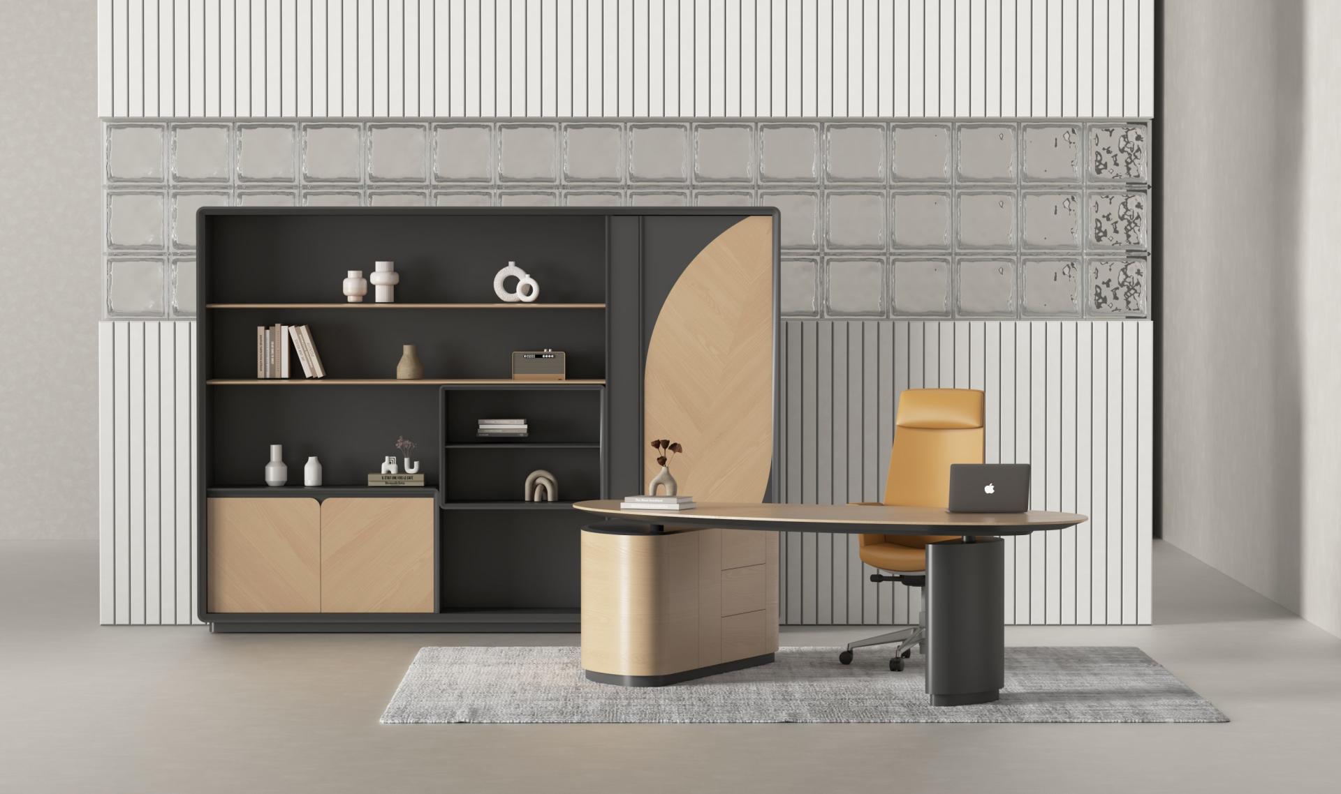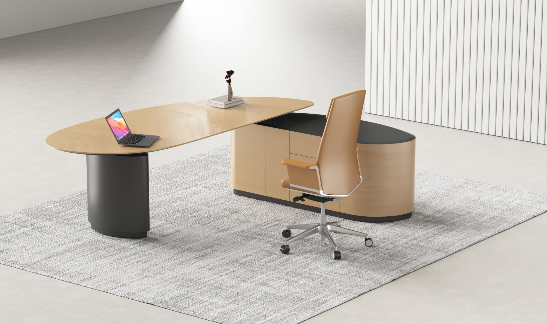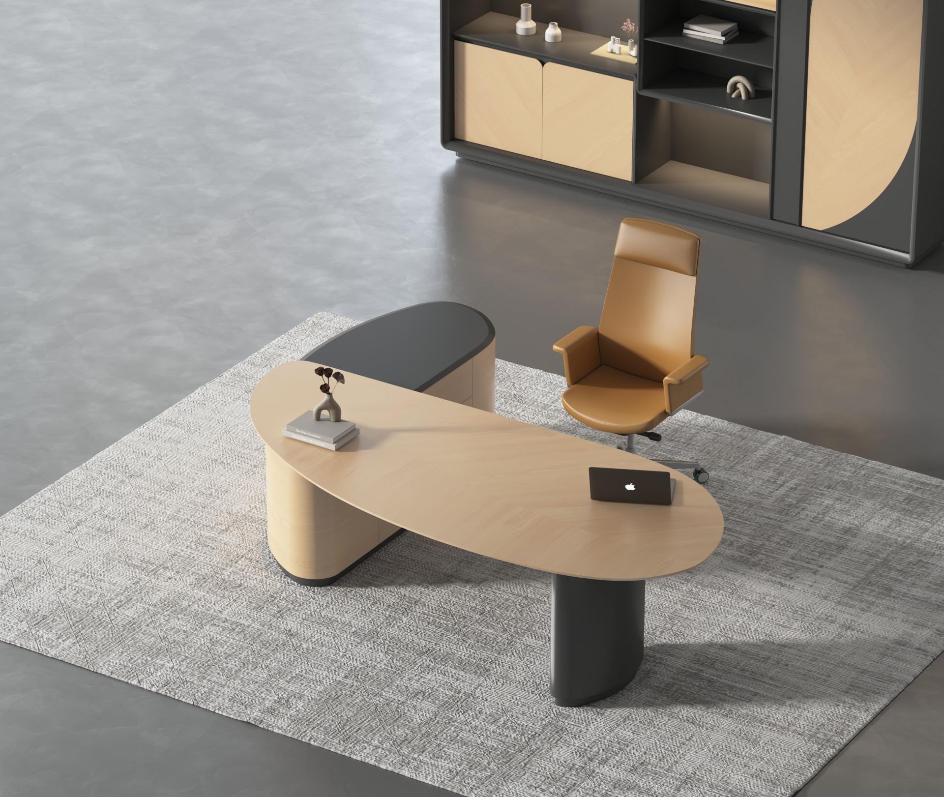Inspired by natural forms, the desktop features an elegant leaf shape, symbolizing vitality and creativity. Its profile's smooth, flowing curves mitigate potential safety risks associated with sharp corners while imparting a natural, rounded visual quality. This design enables the desk to seamlessly integrate into both office and home settings, emerging as a stylish focal point.