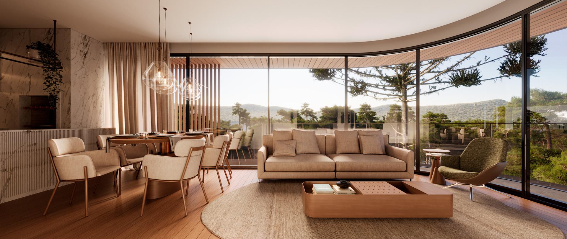 The Koti Hotel project, located in the charming mountainous city of Gramado, Brazil, is a masterpiece of sustainable luxury and cultural integration. Spanning 3000m², this interior design project transforms the hotel into an inviting refuge that reflects the essence of its natural and cultural surroundings. The name “Koti,” meaning “home” in Finnish, encapsulates the project’s goal: to offer guests a warm, sophisticated, and serene retreat.