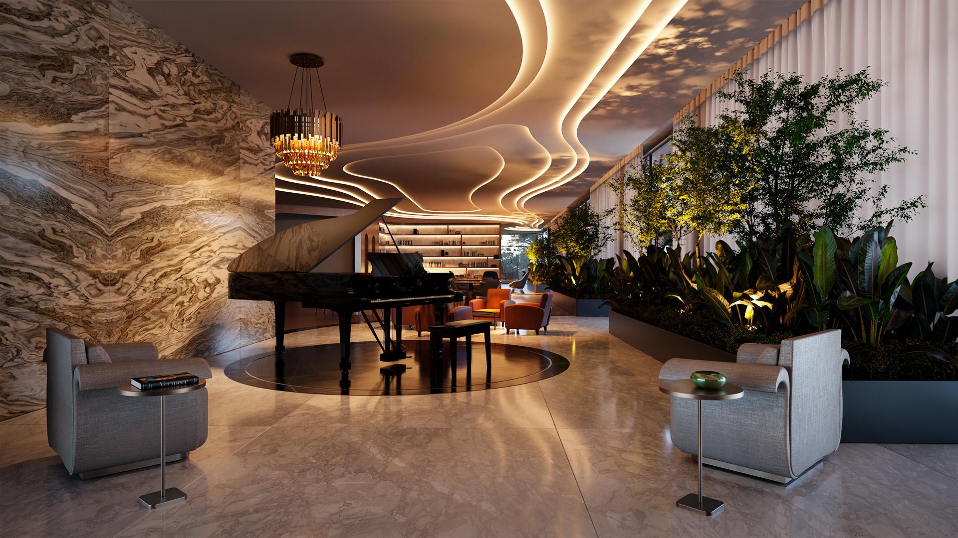 Sustainability is a cornerstone of the Koti Hotel project. Eco-friendly fabrics, crafted from recycled PET bottles, were used for upholstery, blending ecological responsibility with tactile luxury. This commitment extends to the lighting design, which employs adaptive technologies to enhance energy efficiency while creating an ambiance that evolves throughout the day.