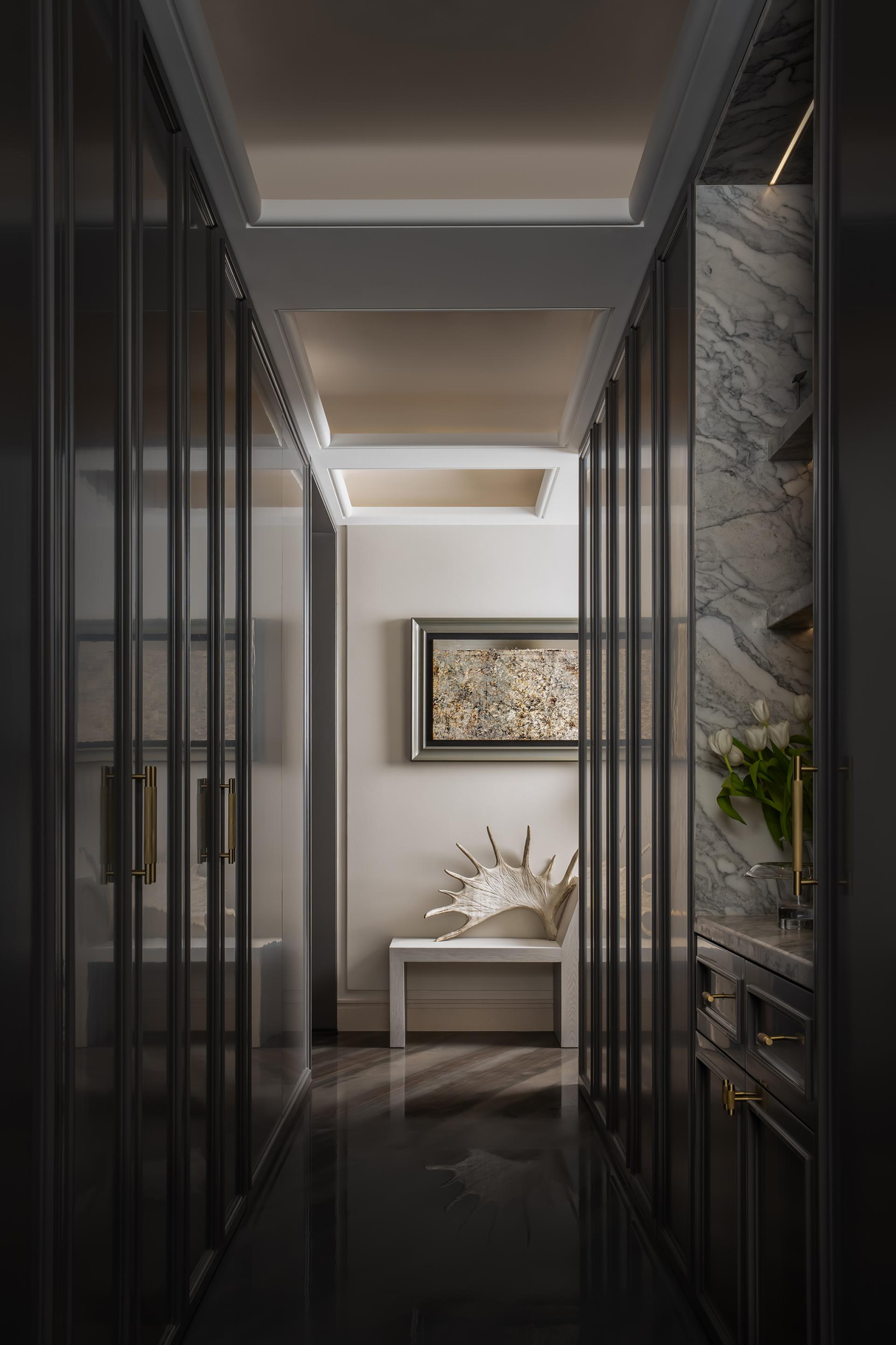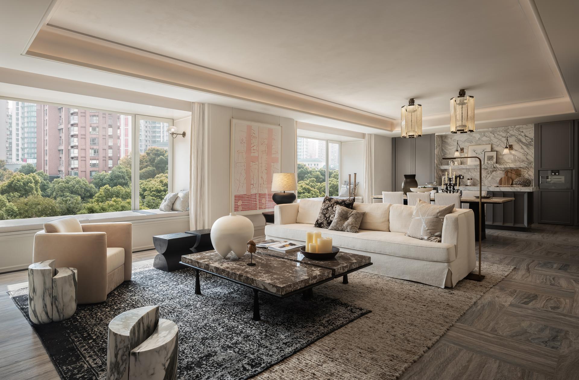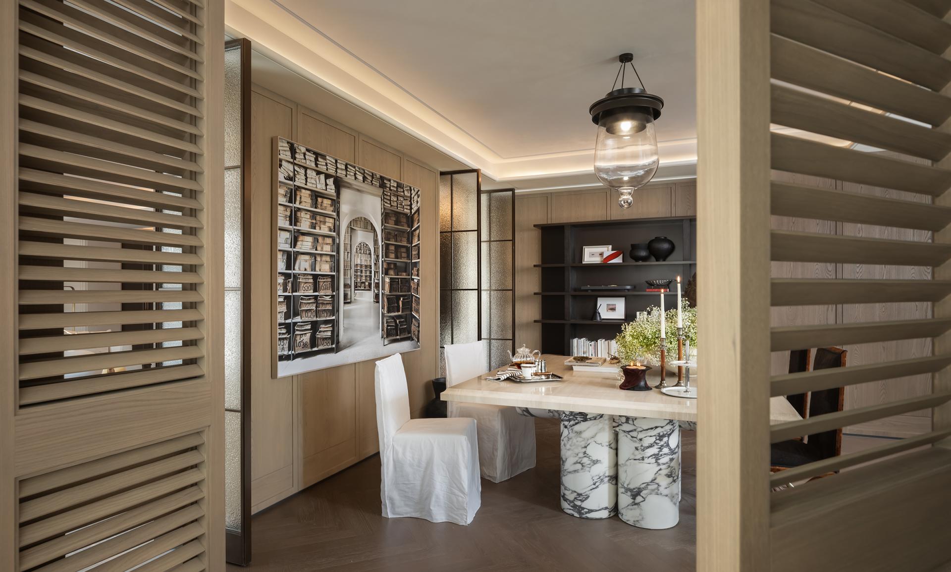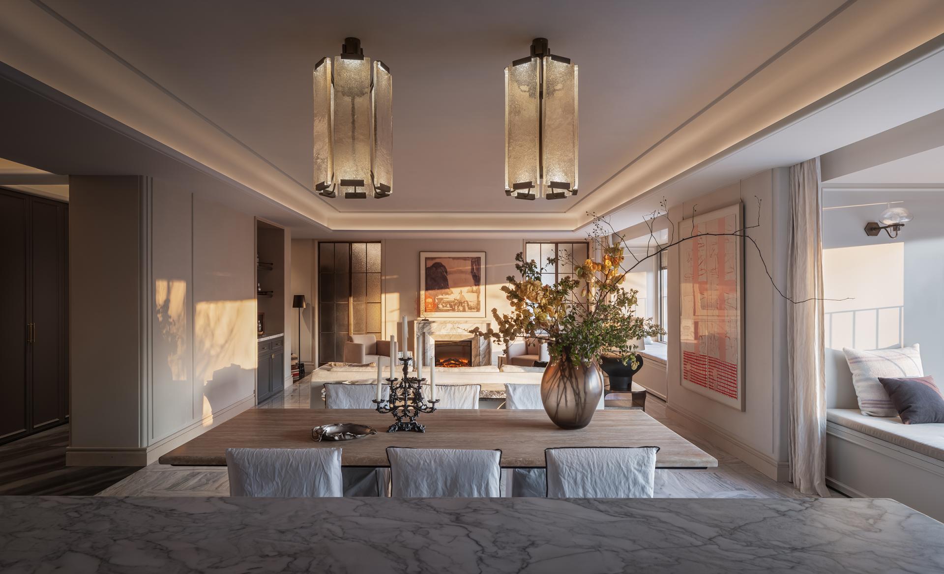 The design for AUTHOR starts with an awe to the nature and a respect for the nature. From ideology to practice, we try to avoid any superficial or excessive creation and lay more emphasis on cultural and value-based restraint, humility, and richness in design, beyond the boundaries of style, thus highlighting fusion and inclusivity. Instead of taking aesthetics or artistry as the primary drivers of the design, our designer expresses beauty with genuine emotions, leading us to understand what we really want. In a space with changing rhythm, the design showcases a process that fulfills, anticipates, and exemplifies needs. Catering to varied functions, the design tries to turn the pursuit of “permanence” into a lifestyle of “fluidity” in scenarios encompassing cultural elements. Hence, “migration” and “compromise” become the core themes in the space. In the words of our designer, “migration” stands for melody, while “compromise” represents the art to play the melody. How is the design achieved? Migration and compromise are engaged as they integrate temporal lifestyle. It is interactive and dynamic, not a linear evolution, but a development of variation, making them critical elements of the space. The total project area is 275 square meters. The elevator is decorated with engaging art pieces, where the scenery and mood expressed gives us sufficient sense of ceremony. The living room is symmetrically designed, and on the floor laid the natural luxurious stones in a cross pattern. The western-style kitchen and fireplace are made with classic French luxury stone, showing the pursuit of ideas and cultural enrichment. The X space interacts with the living room and altogether expands the sense of space in the communal area, reshaping the resources and relationships based on scale. The dual-access walk-in closet connecting the master bedroom, along with the customized master suite, demonstrates the demand for high quality while fully displaying control over time and form……These details, from behavioral habits to emotional connection, create an elevated daily experience for the residents.