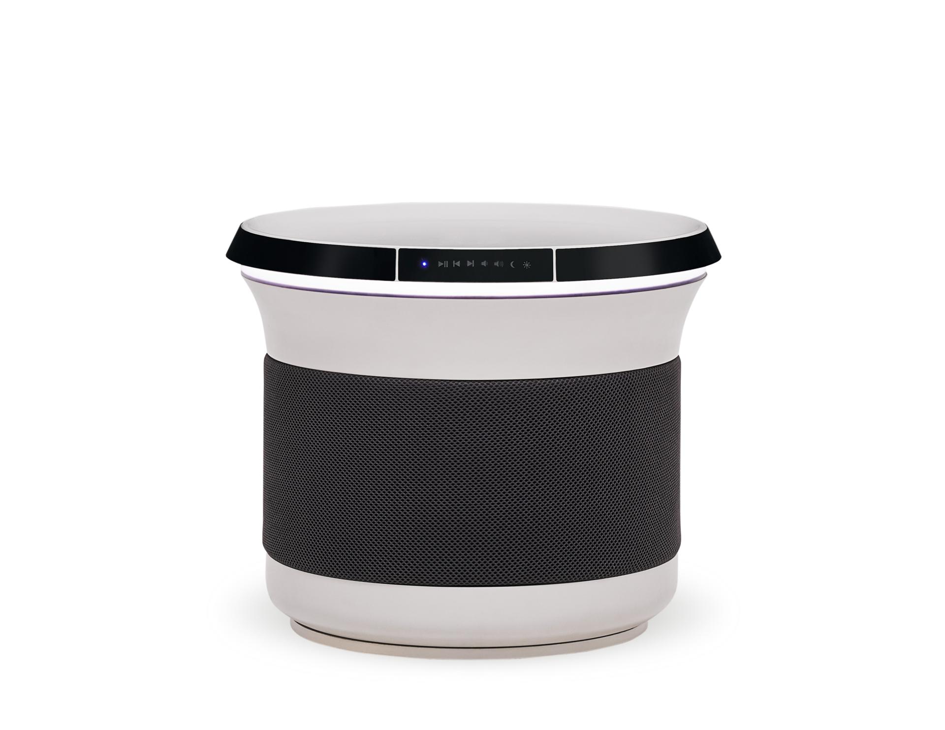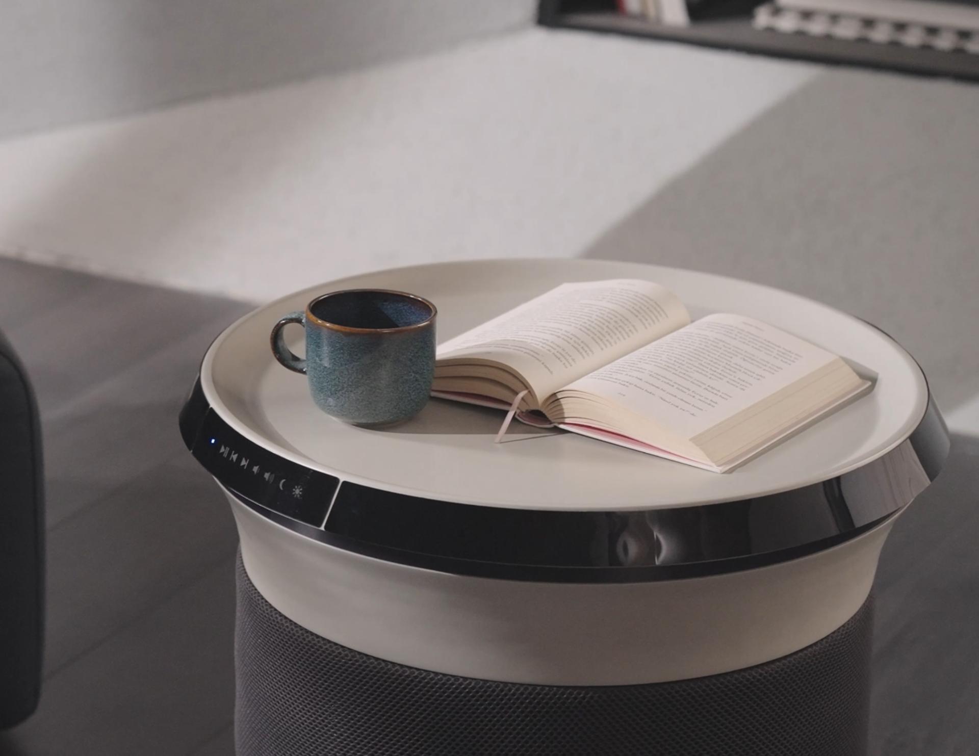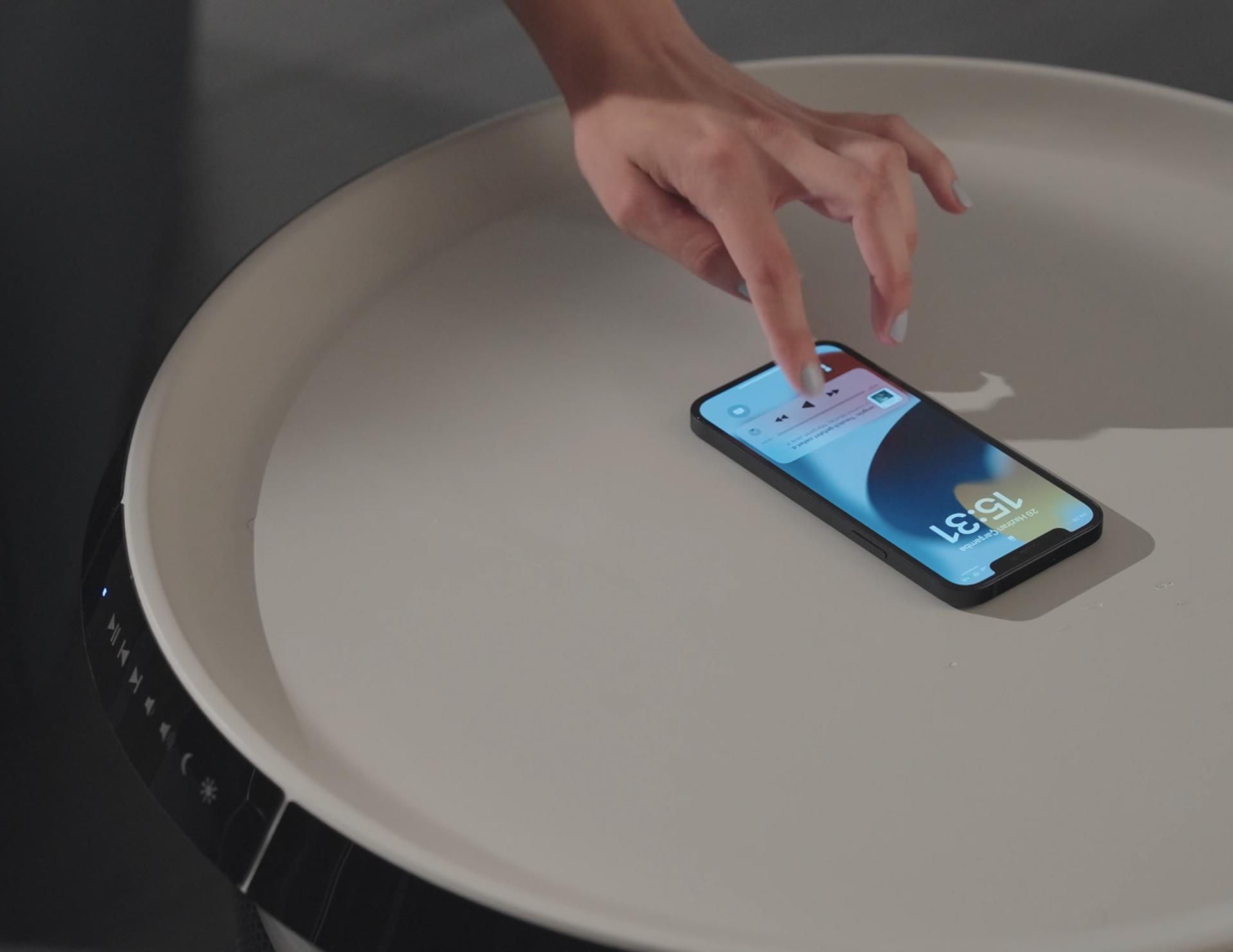 • With its modern and minimalist lines, S-Home fits seamlessly into any home décor. The body color and metal details, which can adapt to any space, offer a sophisticated and stylish look. Its circular form ensures that S-Home is easily accessible from every angle, allowing users to comfortably perform tasks such as controlling the lighting, listening to music, or charging their devices. Thanks to the fast charging feature on S-Home's top surface, users can easily charge their mobile phones and other compatible electronic devices without the need for cables.