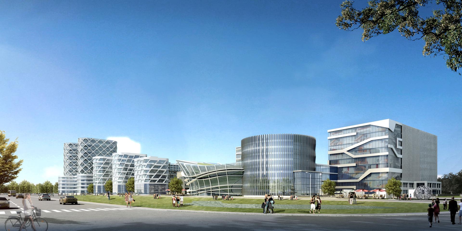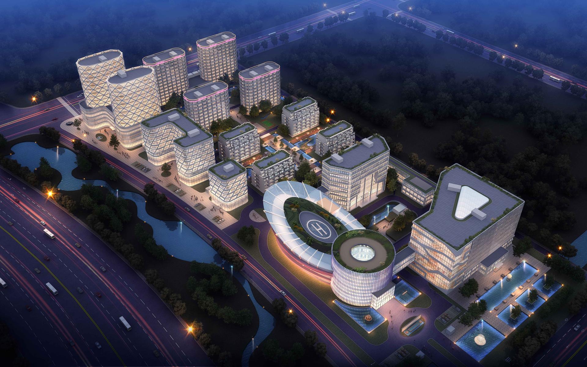 The project takes Noah's Ark as the creative core and is divided into two major areas. The main treatment area uses rudders, oars and other elements to show the concept of "Noah's Ark - Saving Lives", which symbolizes hope, progress and life-saving. The supporting park is integrated with elements such as gauze, bandages, and heavy ion halos. The serpentine scepter in the emblem symbolizes medical health, echoing the elements and clearly illumi-nating the concept of landscape design. The landscape follows Chinese Feng Shui, focuses on green roofs to expand green spaces, and incorporates rele-vant elements of the World Health Organization to give the project a unique charm and humanistic care. Zhu Jie created the project plan and led the team to use modern building technologies such as photovoltaic, passive house, prefabricated and sponge city to build the most modern heavy ion hospital in China.