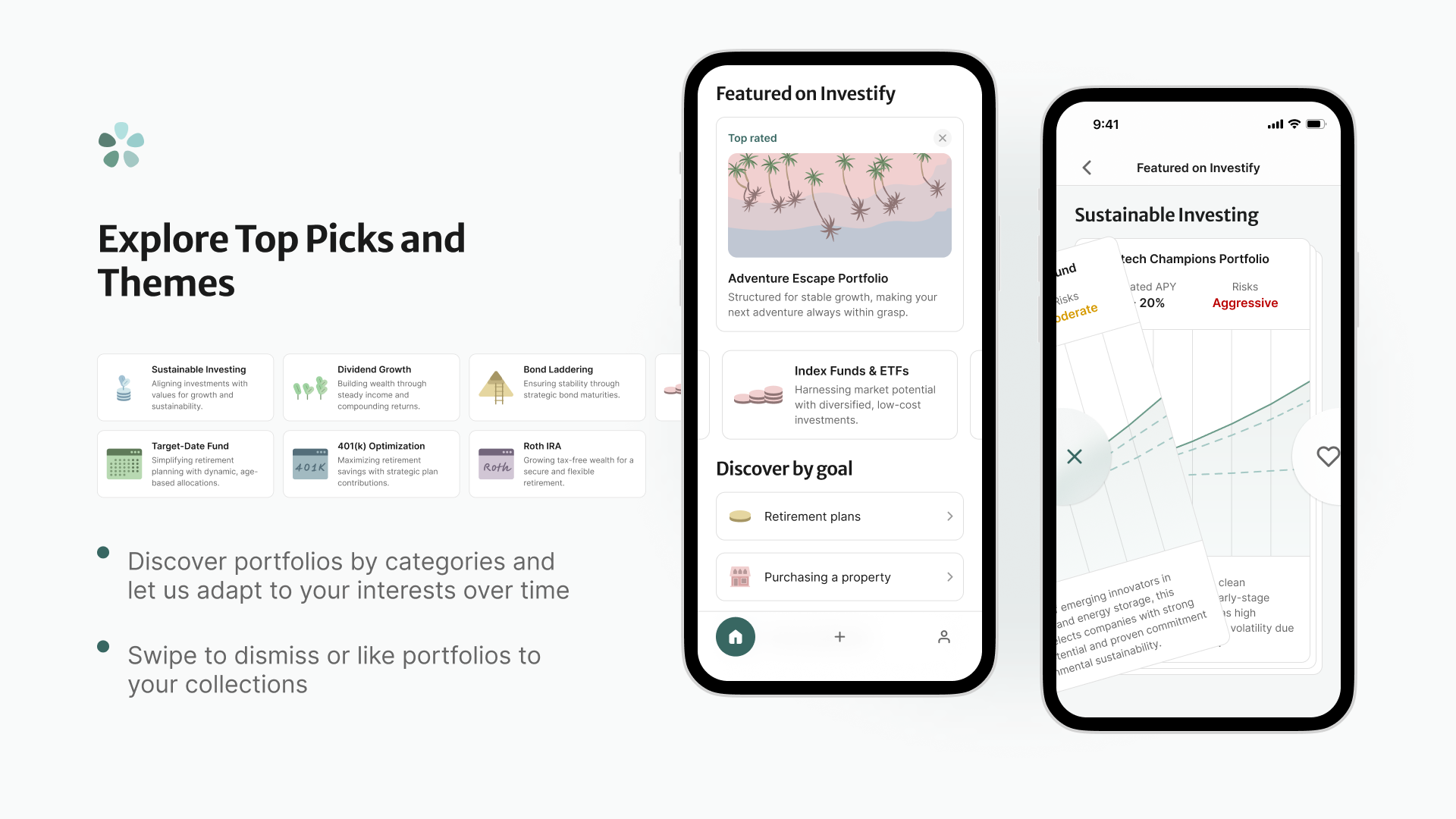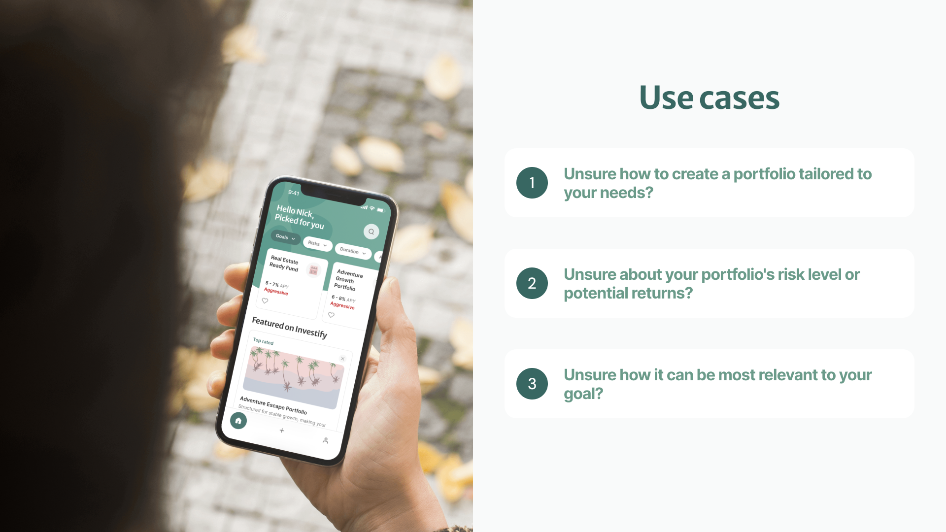 Investify.ai leverages AI technology to create personalized portfolios tailored to users' unique financial goals. The platform empowers users to explore AI-curated portfolio options, build custom portfolios with actionable insights, and track their progress over time. By simplifying the complexities of investing, Investify.ai helps users make confident decisions and stay on track toward achieving their financial goals.