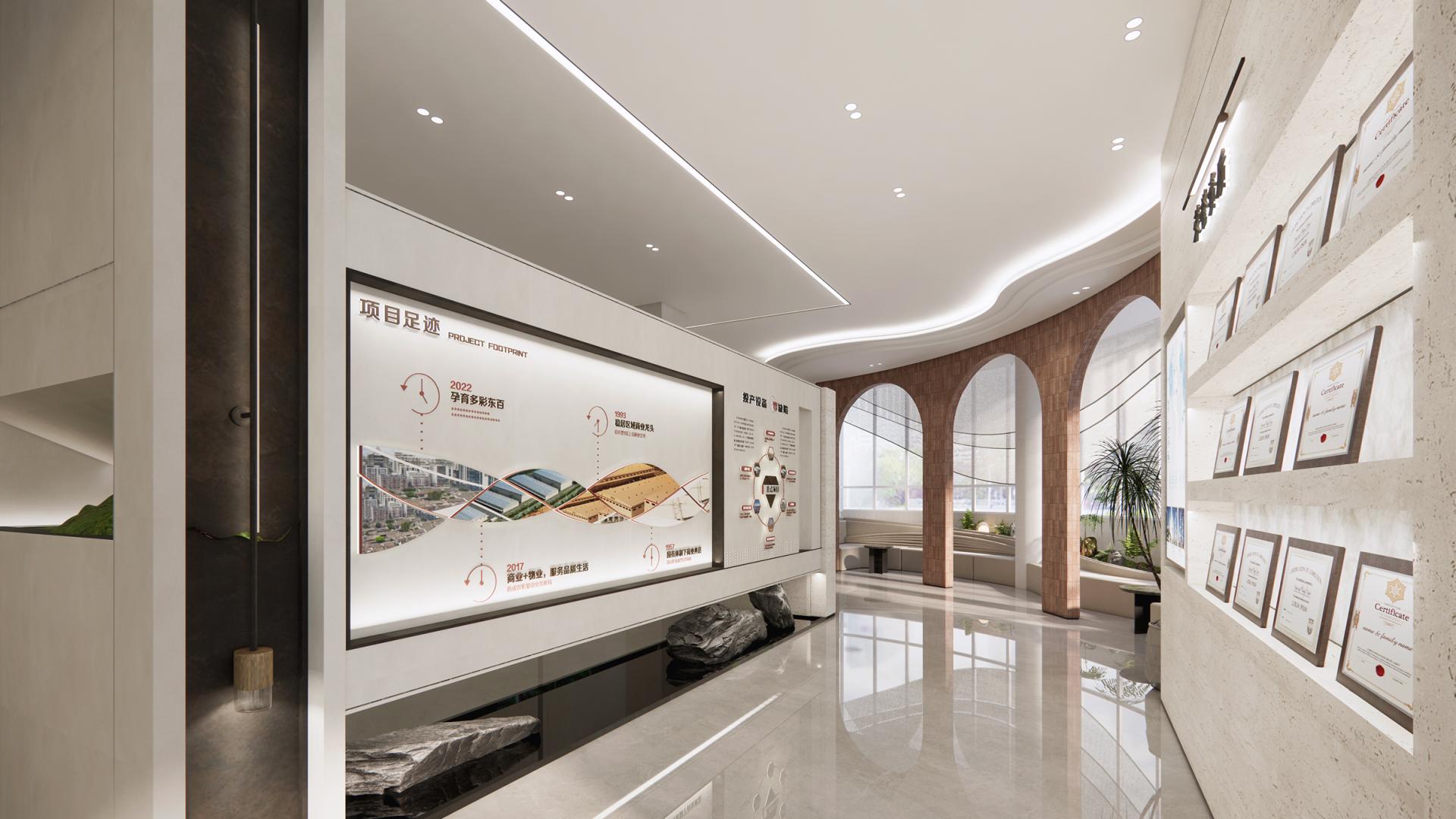 The "Walking towards the New Scenery" comprehensive cultural exhibition space is located on the first floor of the Zhenxin Park building. As the first window for the display of new energy technology and marketing business of Qingtian Zhenxin Power Co., Ltd., the first floor of the space faces the street and is a diversified cultural landmark that integrates marketing display, leisure science popularization, and efficient office. The space revolves around the core concept of "multi-dimensional value of individual units for a new future", deeply integrating the gradual development of the city, the new ecology of energy, the value vision of enterprises, and social responsibility. Considering the functional needs of different groups, it creates three major theme spaces: "New Chapter · Green Ecology", "Professionalism · Perfection", and "Reputation · Quality Service", showcasing Qingtian Electric Power's international energy development vision and outstanding leading smart energy ecology in all aspects and dimensions. In the design of spatial flow, we emphasize the openness and flexibility of the space, achieving flexible expansion of various functional flow lines such as leisure, office, and display through flexible partitions and interactive dynamic lines, and achieving seamless interaction between space and people. In terms of design techniques, we have integrated multimedia interactive technology, using sound, light, and electricity as aids, to bring the imaginative vision of a green future into reality, blurring the boundaries between the present and the future, evoking people's imagination and resonance of "future presence", and creating a more communicative and visually appealing exhibition platform.