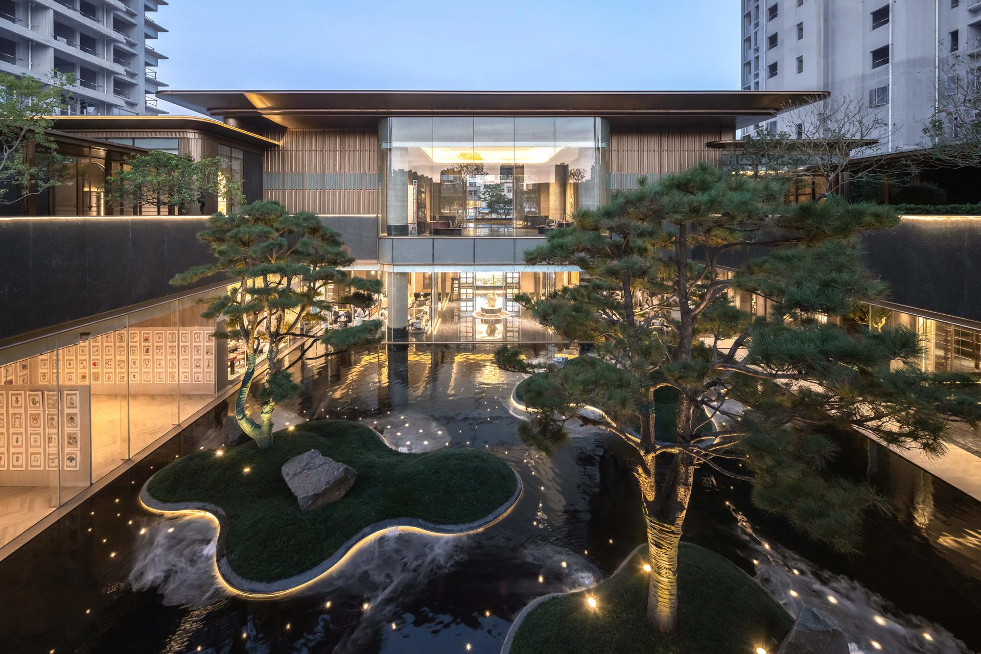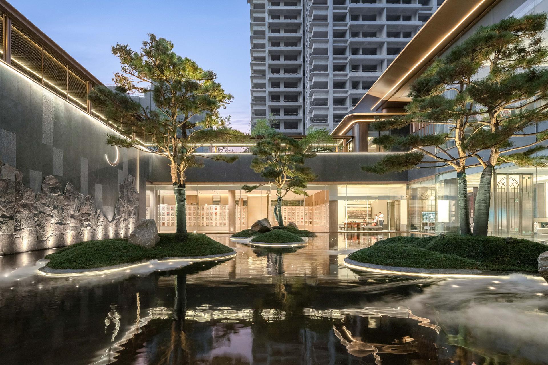 The project uses the spatial layout of the Oriental ritual order to integrate the hotel quality of modern healing to create a fashionable and luxurious high-end life. The layout will integrate the regulation of the palace "front hall and back bed" with the creative essence of the Lingnan garden "clear and transparent, and accumulate beautiful and beautiful". The aesthetic pattern of "modern shape and Oriental meaning" will layout the contemporary Lingnan five-dimensional ritual order to create an elegant and atmospheric sense of life ceremony. At the same time, in-depth exploration of local culture, and study of the intangible cultural heritage of Huadu art, the city's cultural aesthetic and life feelings, combined with new technologies and new materials, old forms and new technologies, create new ideas in the tradition, create a sense of belonging to life. Finally, the poetic dwelling of the five courtyards is formed,Leading the new model of CBD mansion in Huadu District. The project is inspired by the story of the dialogue between Phoenix and all things under the sky as the design concept, and uses the story of "water, light, stone, Fang and sen" to build a poetic picture of one street, one axis and nine landscapes. At the same time, Huadu non-relics (enamel, bronze, Ruiling bonsai, gold embroidery, gray sculpture) and the living quality of modern resort hotel are combined to create a boutique project with a sense of The Times and without losing cultural heritage. The project focuses on the creation of a space that blends without boundaries, forming a space that penetrates green and enjoys inside and outside, exploring the Lingnan aesthetics of half fireworks and half poetry. While creating a sense of dignity, it provides the Lingnan living courtyard with landscape poetry, appreciation and sightseeing. The poetic dwelling of one street, one axis, one heart, nine realms, builds the ideal life of Huadu people, exits the prosperous - the luxurious city-level cover hotel-style entrance, enters the quiet - the pursuit of natural and distant self quiet.