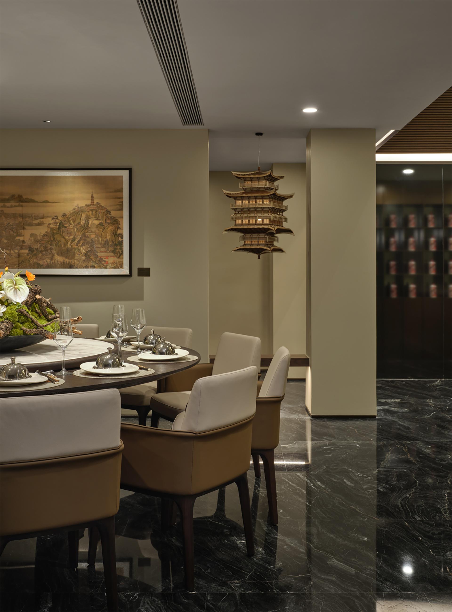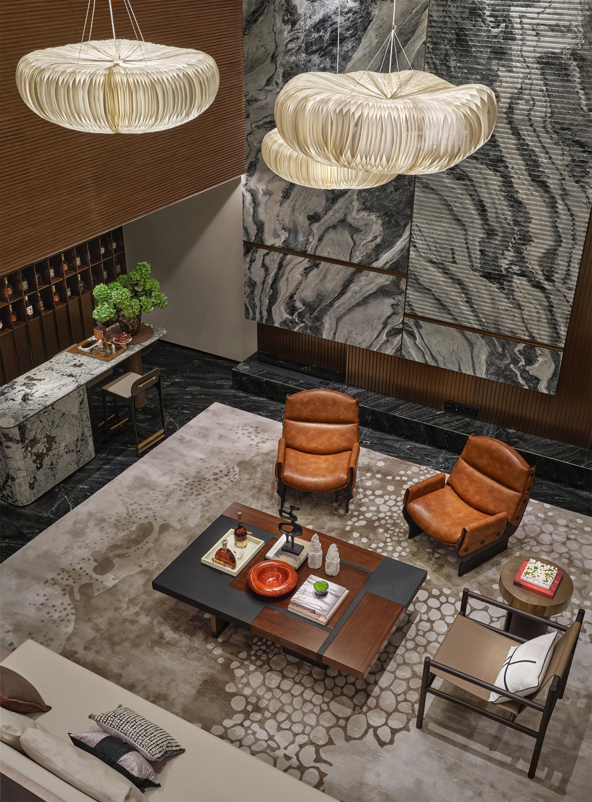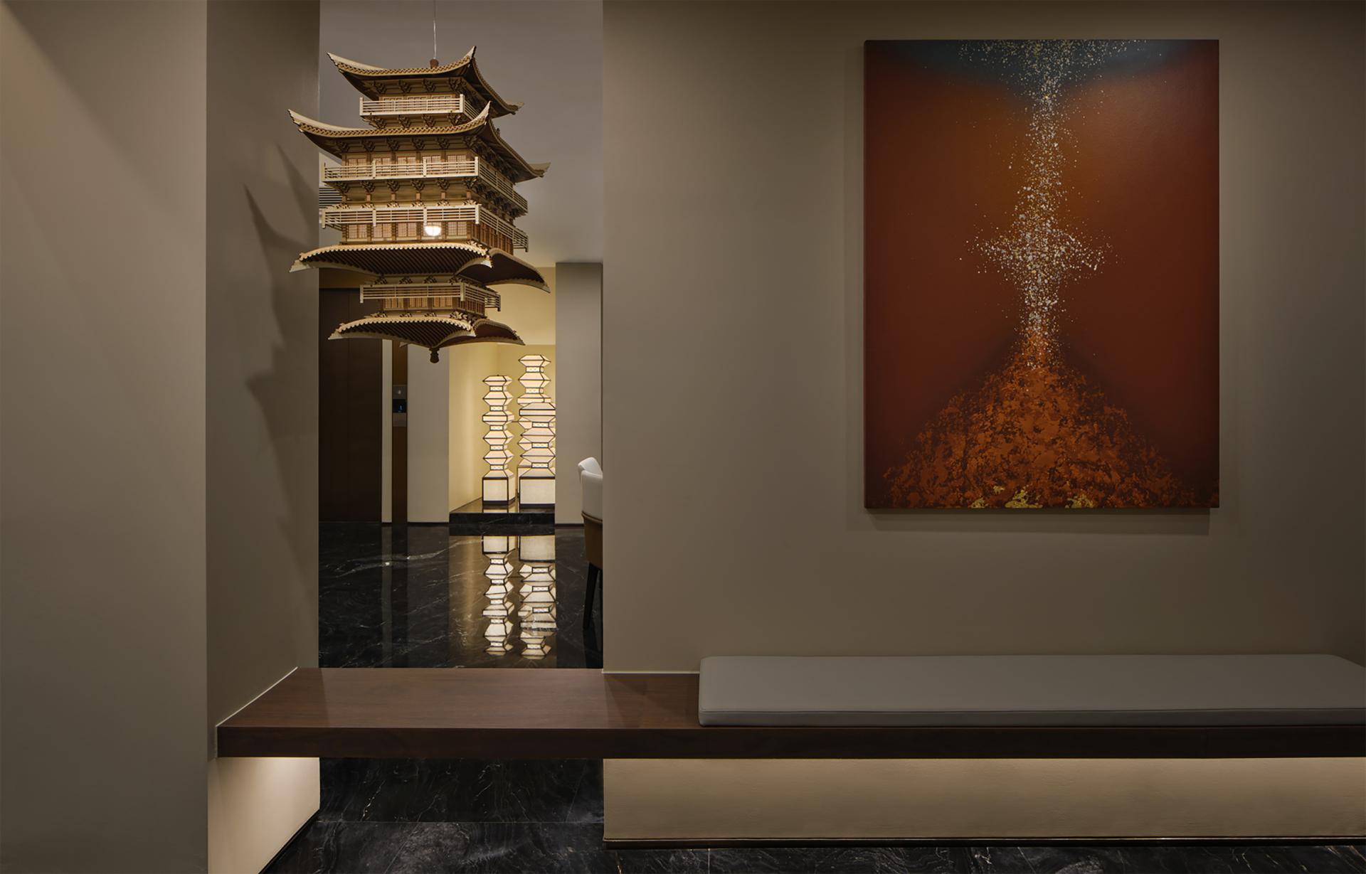 In this case, the design explores the stories and cultural history of Danyang Ancient City, extracts local cultural labels, and combines customized design elements such as art installations, furniture ornaments, hanging paintings, etc. with modern decorative art carriers and high-end materials to showcase the project's unique cultural connotations and humanistic feelings, creating a noble atmosphere where art and Eastern culture intertwine.
