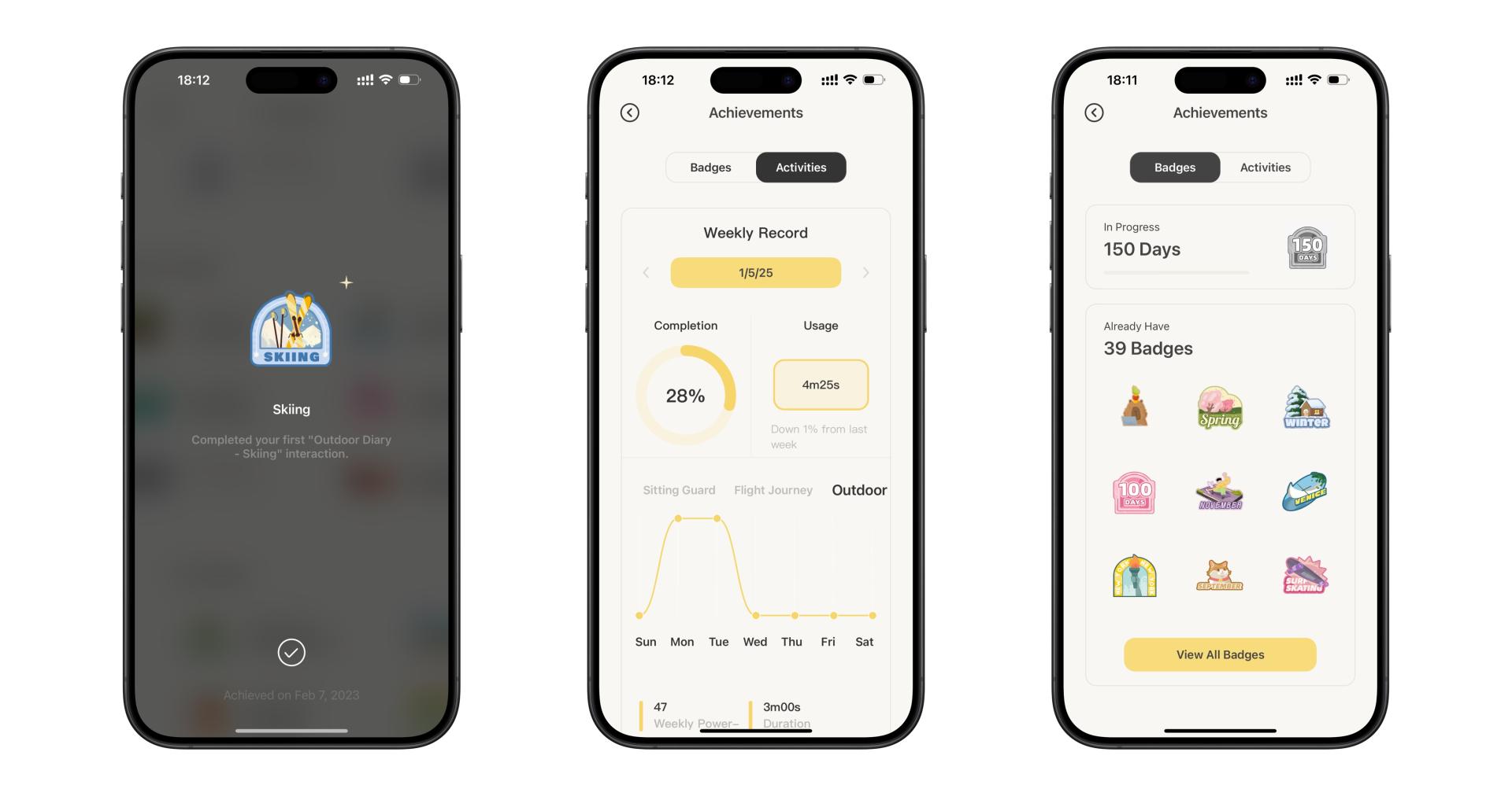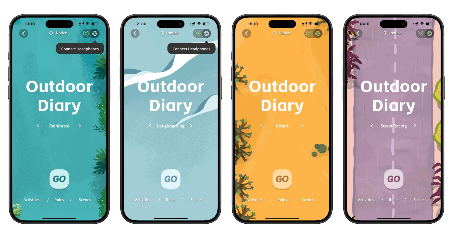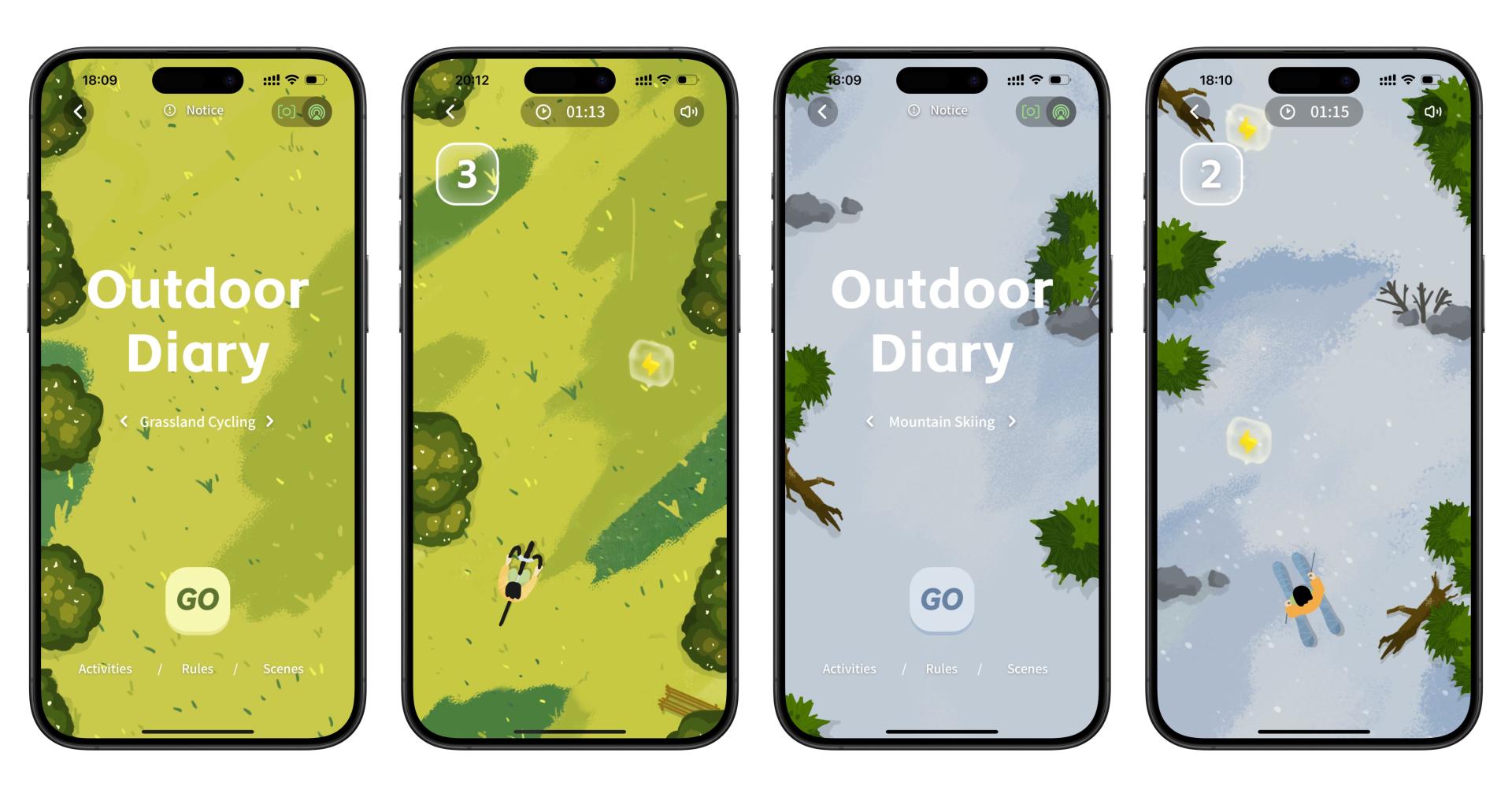 Posture Guard: This feature uses AirPods to monitor posture and provides birdcall reminders when the user's head tilts excessively. Users earn virtual fruit rewards for maintaining good posture over time, promoting long-term Outdoor Diary: This feature allows users to control characters in activities like