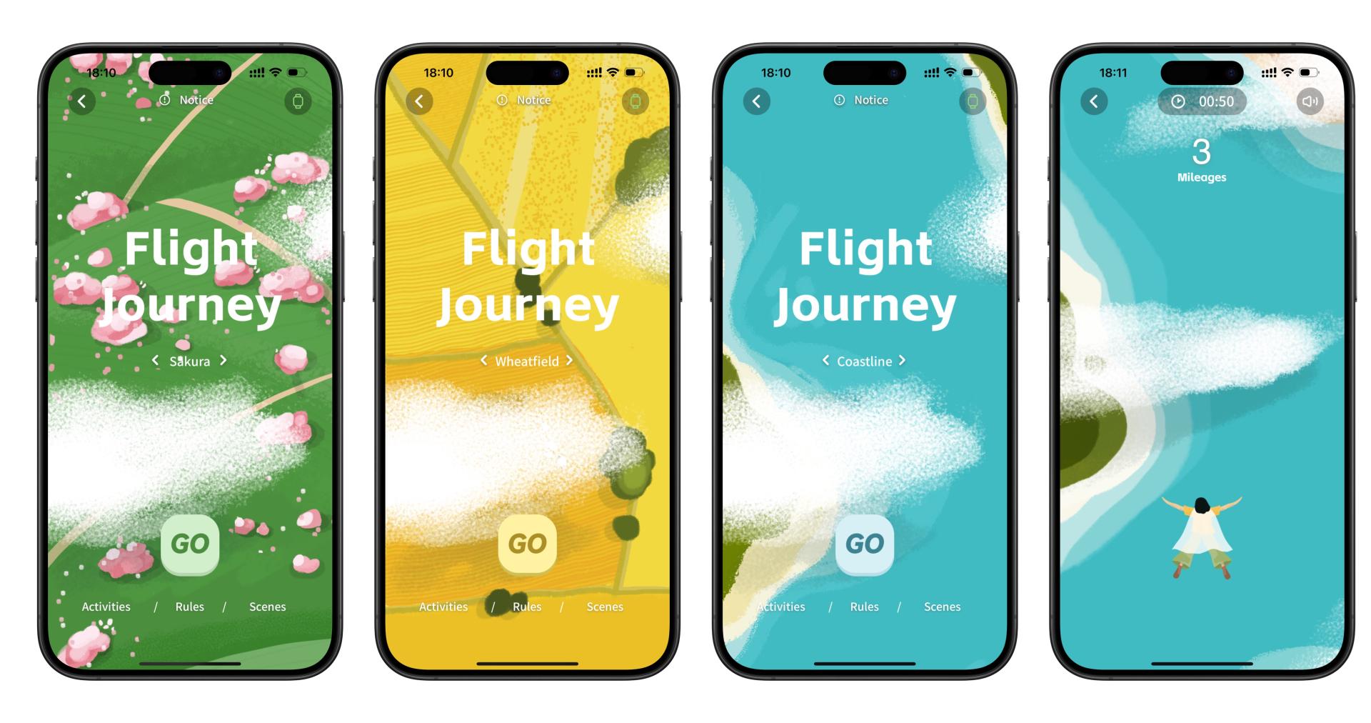Flight Journey: With the help of an Apple Watch, users can swing their arms to control characters flying to different cities, combining neck and shoulder exercises with an exciting adventure. This feature makes exercise enjoyable while improving posture.
