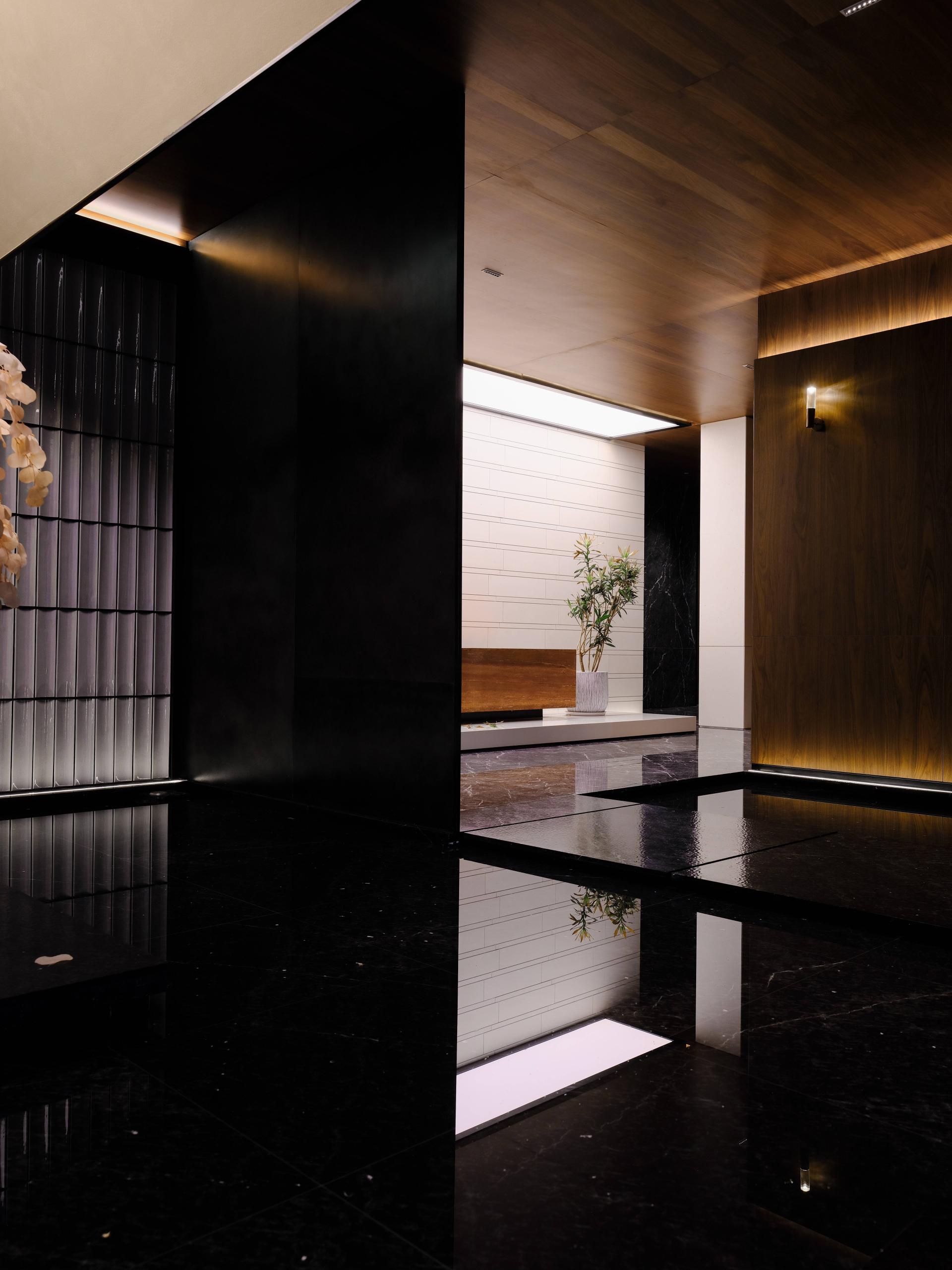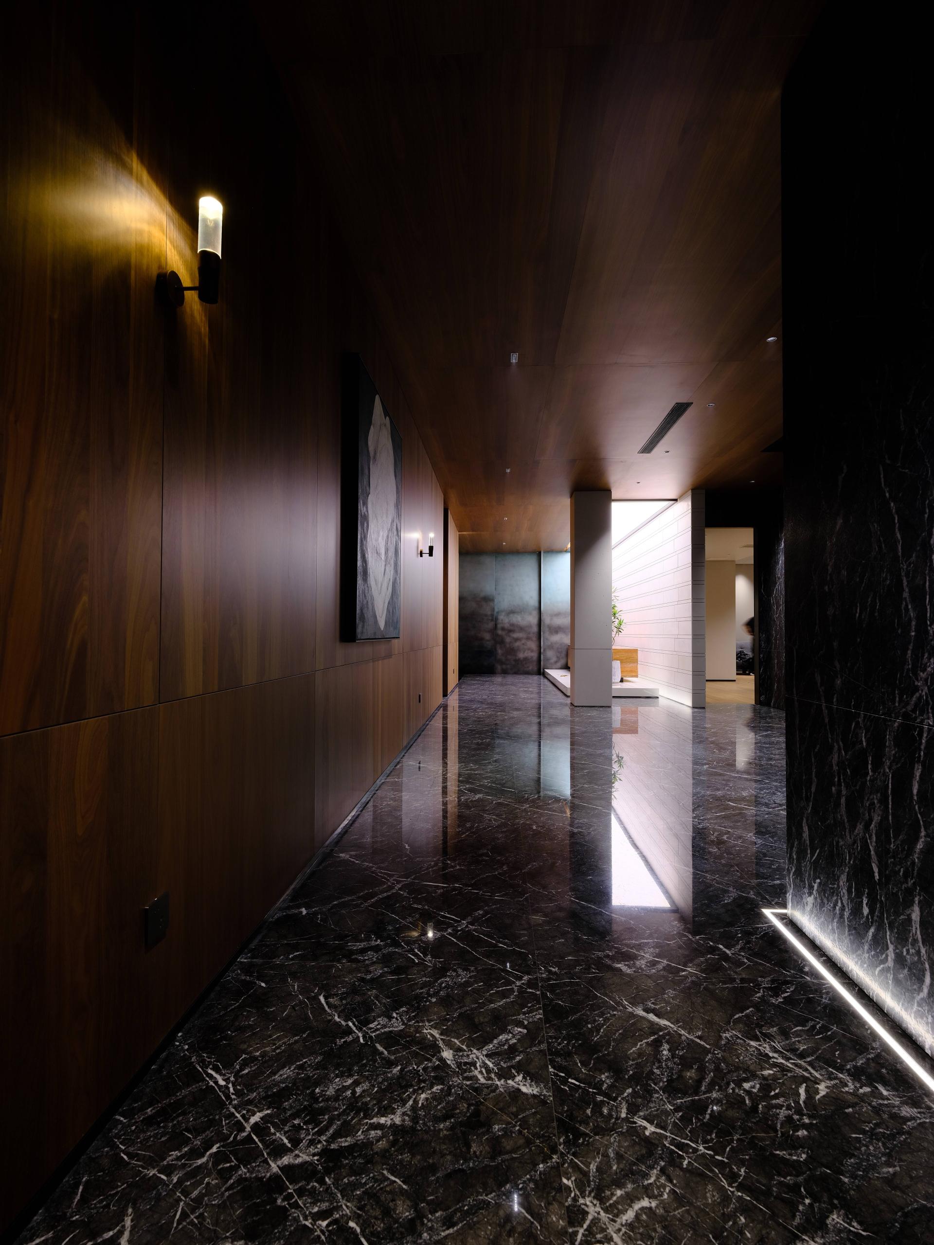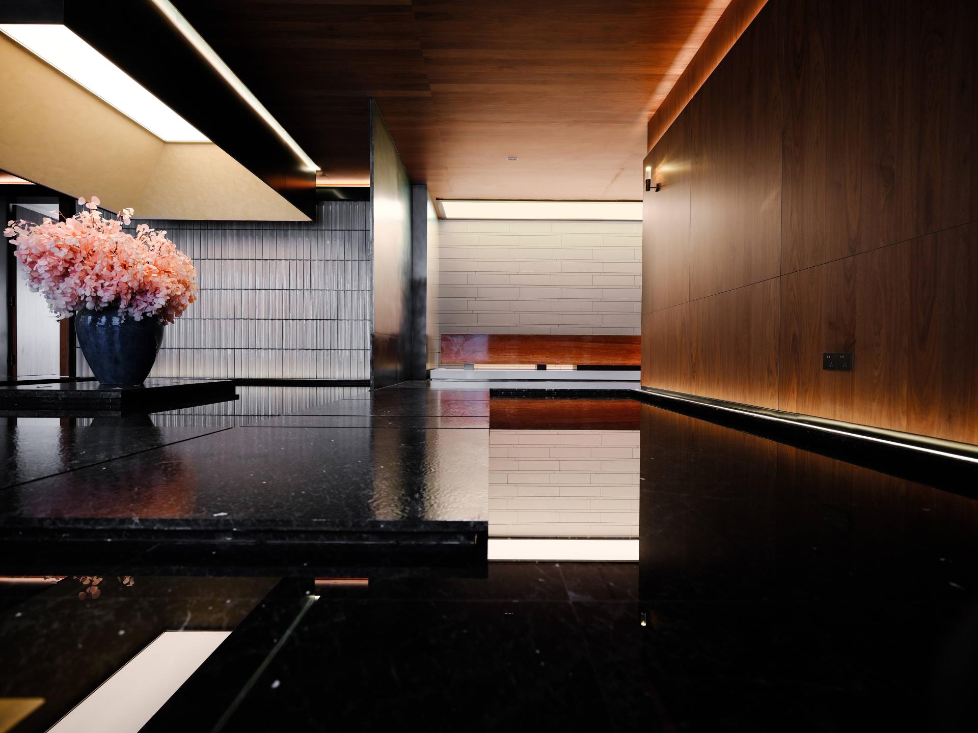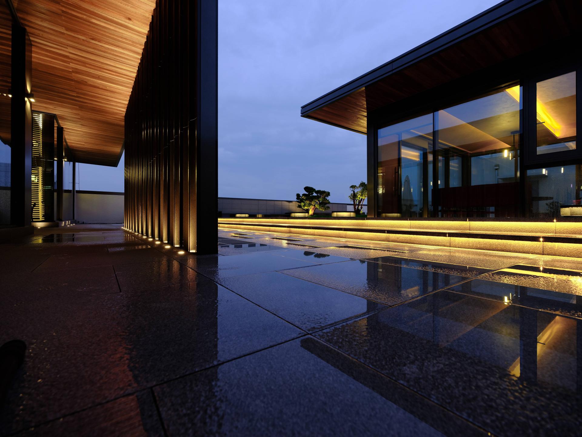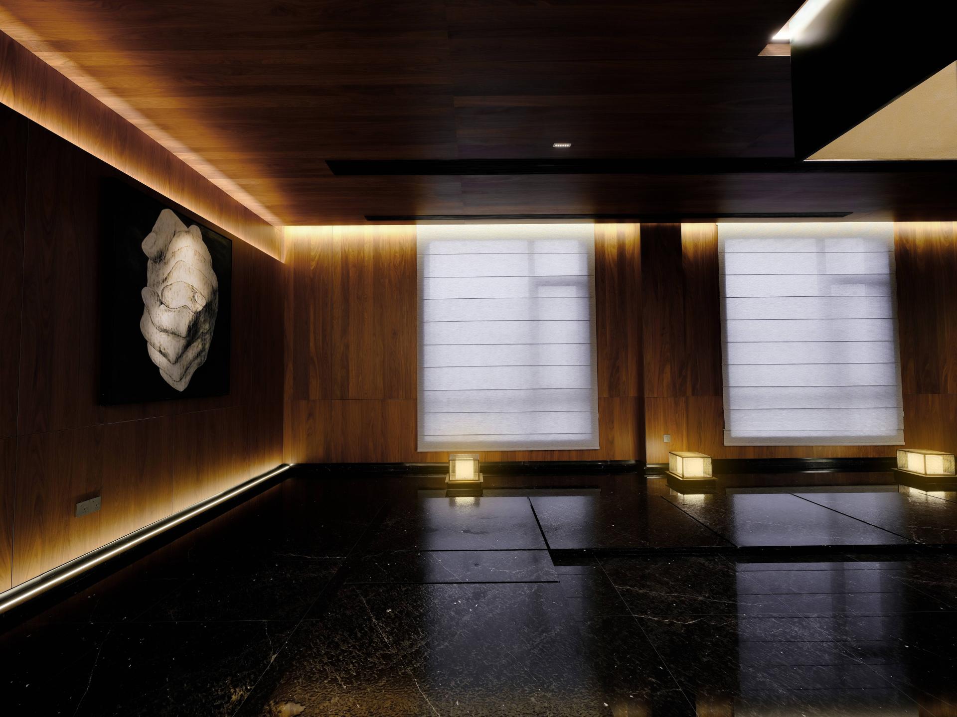 This project is a club designed by the designer Zhu Yunfeng, which is located on the shore of Lake Taihu—Yixing, it’s a landscape city famous for its pottery Purple Sand. Upon entering the lobby, the local Jun ware art installation shows "The Beauty of Rational Sensibility," stands in an orderly manner. The extracted elements of Eastern nature add a rhythm of ease and flexibility. Through the flowing water feature on the ground, it reflects a spirit world that is inherently harmonious and natural. As far as the eyes can see, the entire floor of the hall is paved with locally produced ceramic slabs, exuding a tranquil depth akin to still waters. The walls are extensively clad in exquisitely textured natural wood, setting the tone for the main space and thereby encapsulating the cultural essence of the Taihu Lake region, a freshness and elegance that transcends time. The theme of "landscape city" strives to break through the limitations of materials and forms, contemplating the abstract expression of Eastern artistic conception in the context of the times, and reconstructing an Eastern space that aligns with international and contemporary aesthetics. In a city blessed with exceptional natural landscapes, using reinforced concrete to create mountains and waters, one constructs an inclusive Eastern spirit. With mountains and valleys in one's heart, one's brush will naturally depict landscapes. It is a place where one can completely relax both body and mind. The design abandons the traditional functional zoning of a club and centers around the user, specially creating a leisure club space. It also integrates outdoor landscaping with open and transparent porch designs, breaking down the boundaries between spaces and allowing the natural ambiance to flow freely. With every step, the scenery changes, creating an illusion as if in a fairyland.