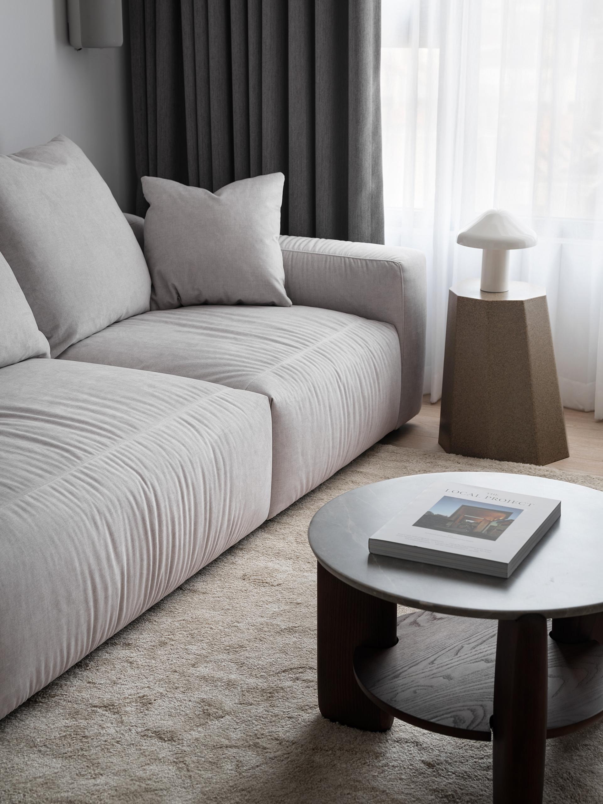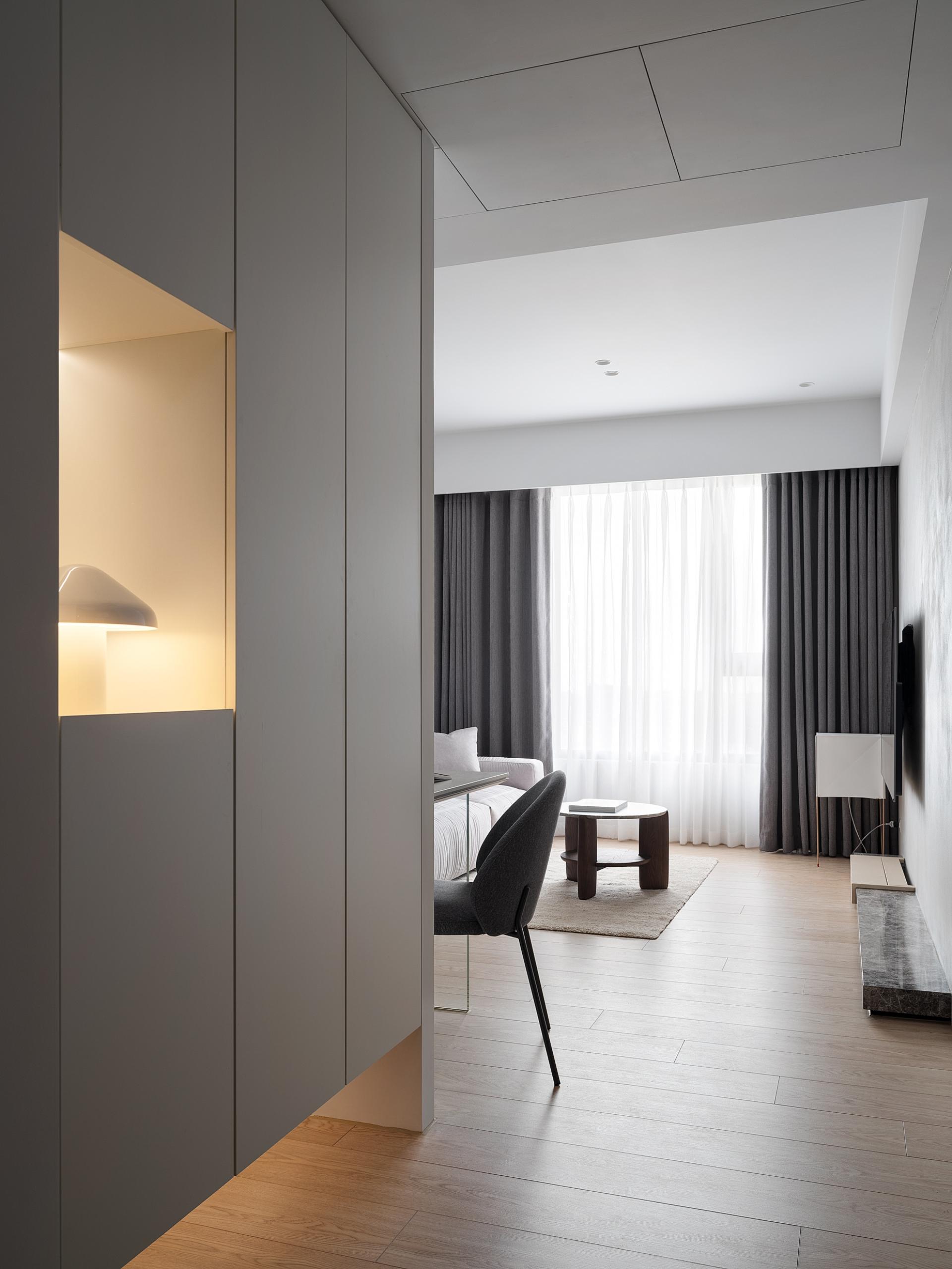 「恬靜」以平和的氣韻描繪出一個適宜棲居的空間,運用淺米灰與暖白的主調,