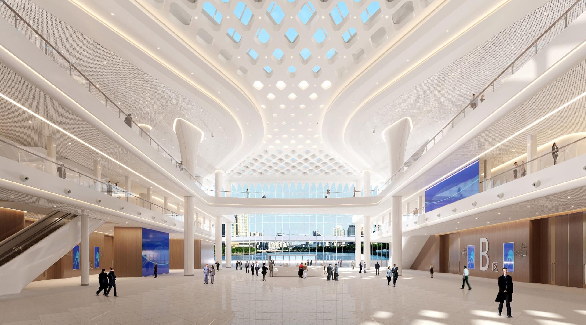 The project features a full-steel frame structure, with a total height of four stories. It is divided into two main sections, with a shared atrium connecting them. On the first floor, the west side accommodates a large main exhibition hall, while the east side hosts a medium-sized exhibition space. The shared lobby in the center offers a welcoming entry point. The mezzanine level provides essential services like restrooms and air conditioning rooms. The second floor is dedicated to conferences and banquets, with spaces such as the main conference hall, VIP lounges, and banquet hall, as well as supporting kitchen facilities. The third floor is designed as a city exhibition space, and the fourth floor combines office spaces and additional exhibition areas.