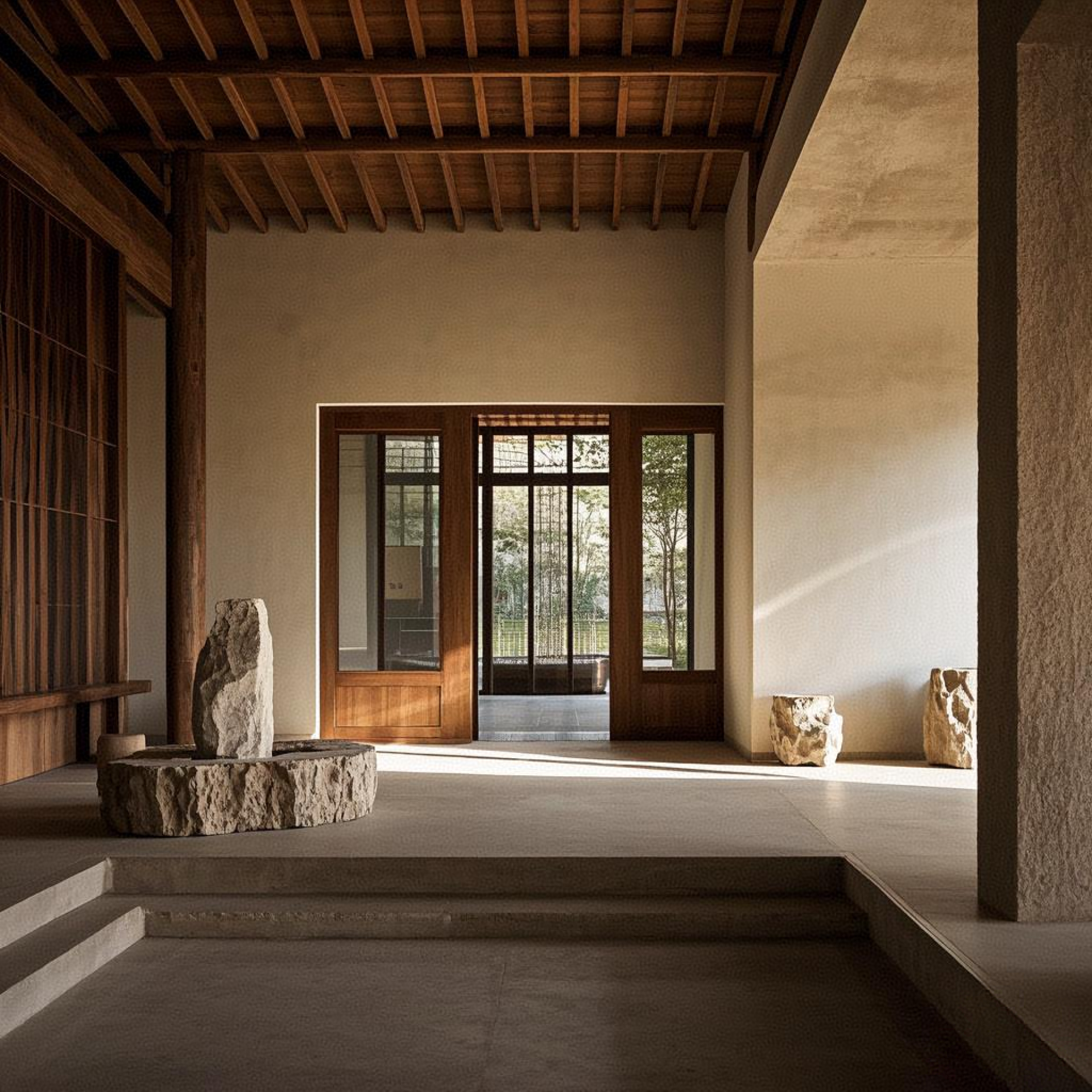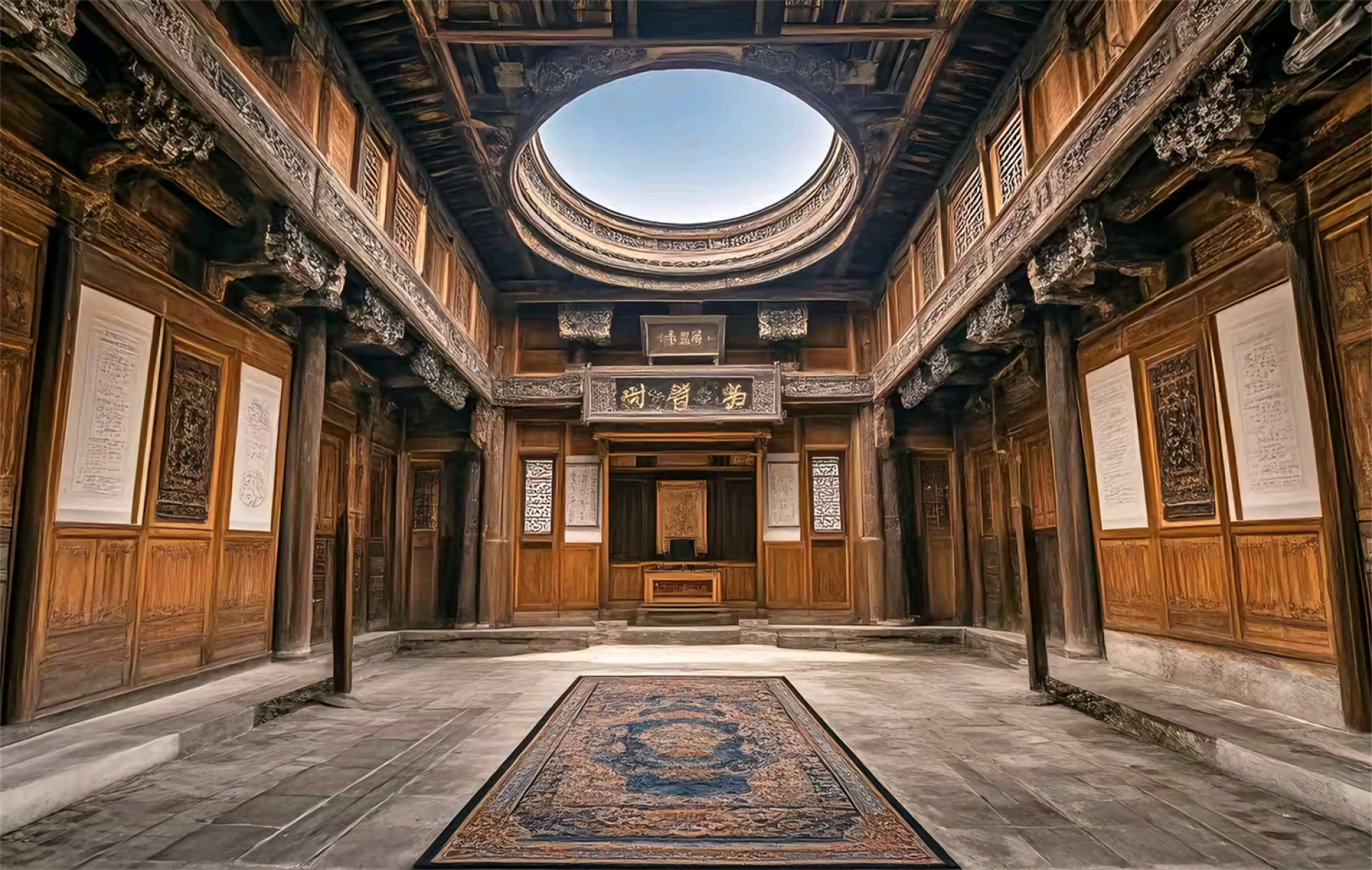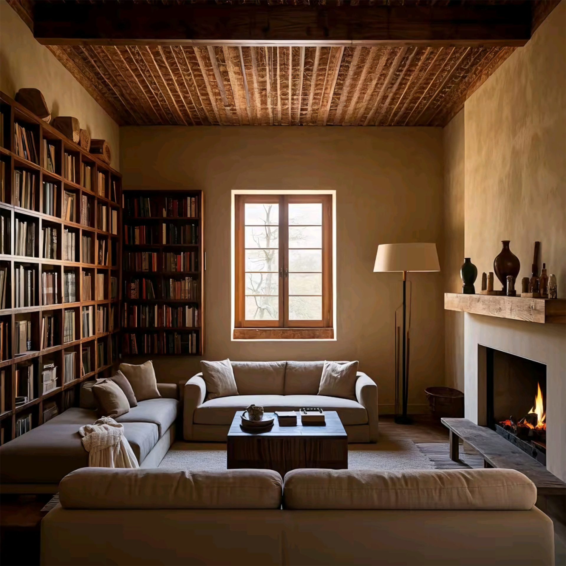 In the common areas, the ancient rammed earth walls have been restored with modern fiber materials while keeping the original stone slabs unchanged. Beneath ancient trees in the front courtyard, traditional stone benches are harmoniously arranged alongside chic outdoor sofas, reflecting the theme of past meeting present. The lobby features a lofty and open design, with raw wood used extensively—from the exposed beams to the furniture. The authentic wooden texture and aesthetic evoke the rustic simplicity of the ancient residence. The centerpiece here is a solid stone fireplace, whose simple and unadorned appearance perfectly complements the rustic wooden elements, fostering a warm and nostalgic ambiance.
