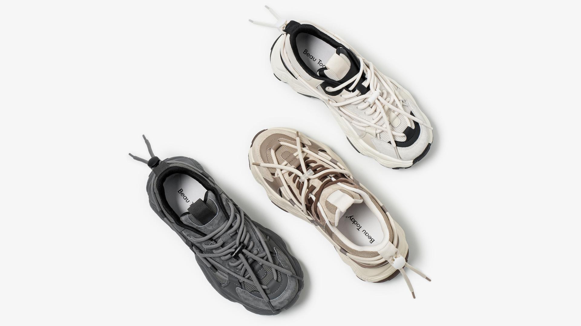 This cutting-edge dad sneaker redefines tradition with its innovative dual-lacing detachable system, offering a dynamic twist on styling. Switch between lace modes effortlessly and embrace a bold, ever-changing aesthetic. The sculpted strap details amplify a sporty, energetic vibe, while striking color-blocking ensures a standout look. Designed with a 6.4cm golden height-boosting formula, refined through nine iterations of last adjustments, this sneaker delivers an elevated yet pressure-free cloud-like experience. The lightweight EVA sole provides responsive cushioning, while the X-shaped support structure subtly enhances leg proportions—effortlessly transitioning between a sleek, confident allure and a playful, chic charm, balancing style and all-day comfort.