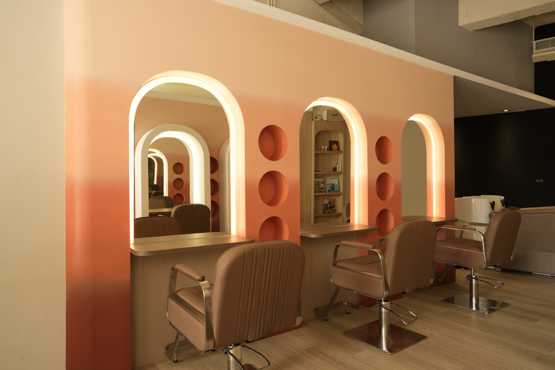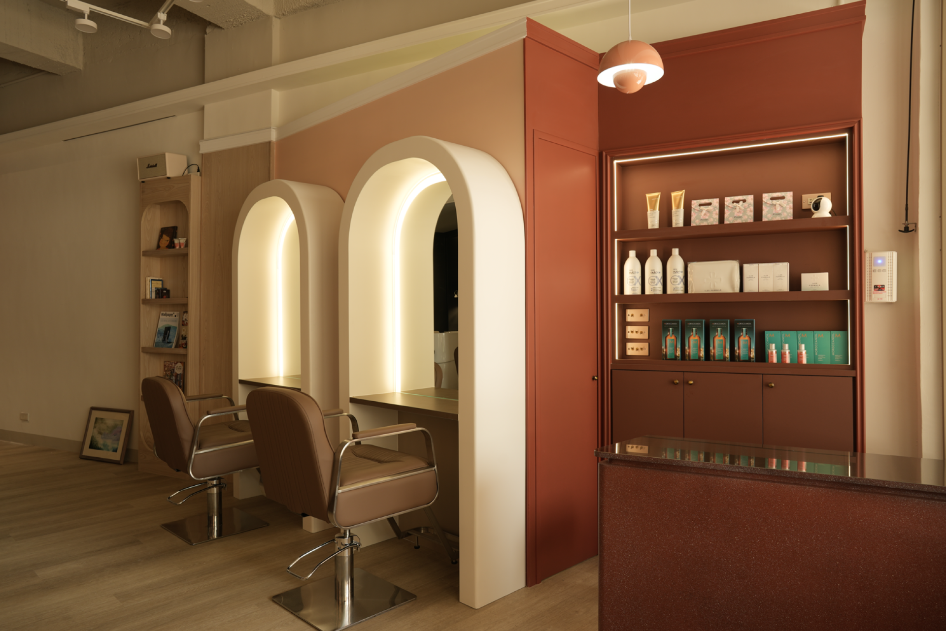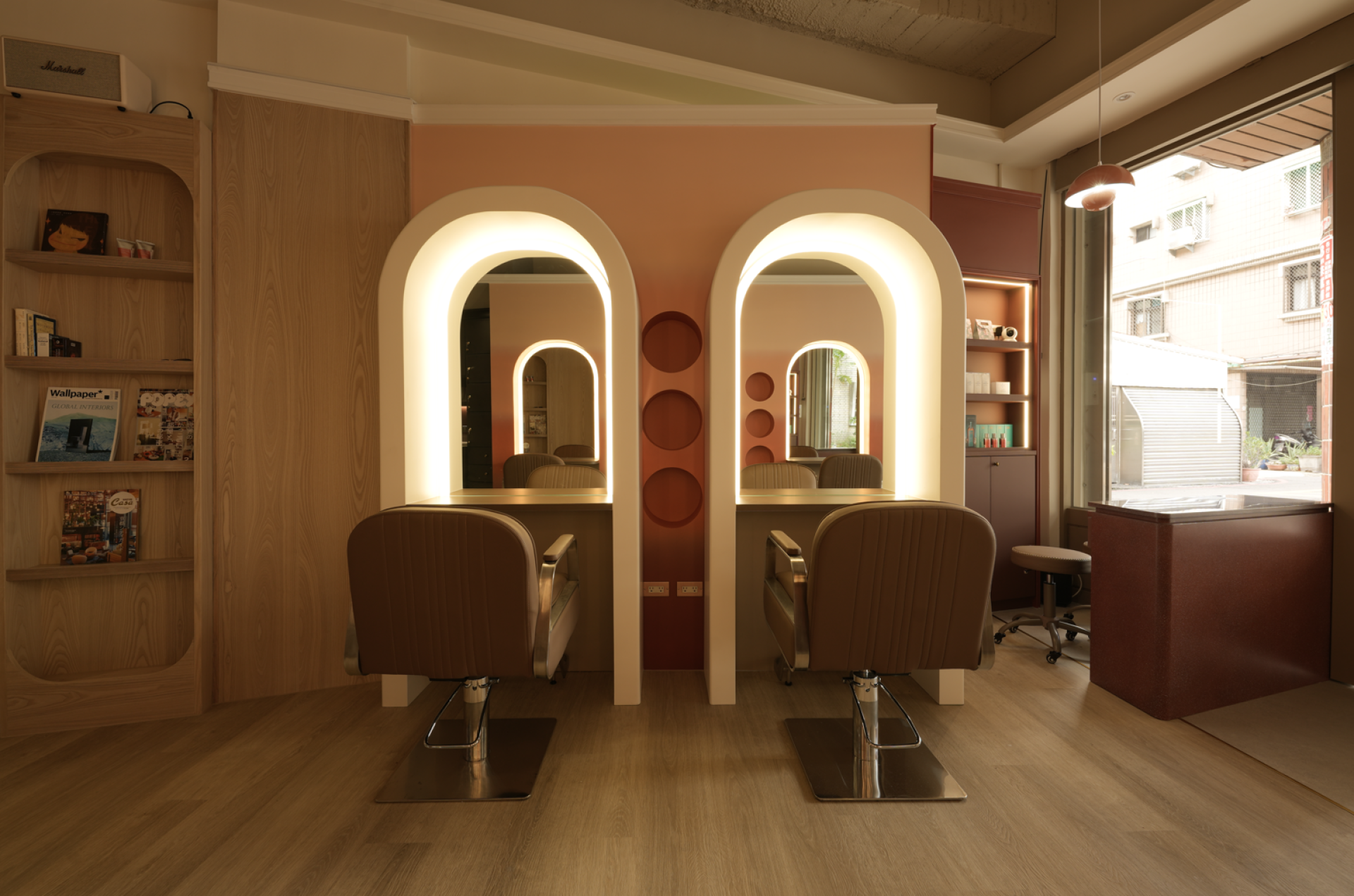 It a 40 m² space located in Kaohsiung, Taiwan. The challenge of this project is the client want 5 seating and including reception area. Our team also ambitious to provide different vibe from traditional hair salon which is always black and white showing. Thinking of how craftsmanship can also add in this project to give a different ways of thinking.