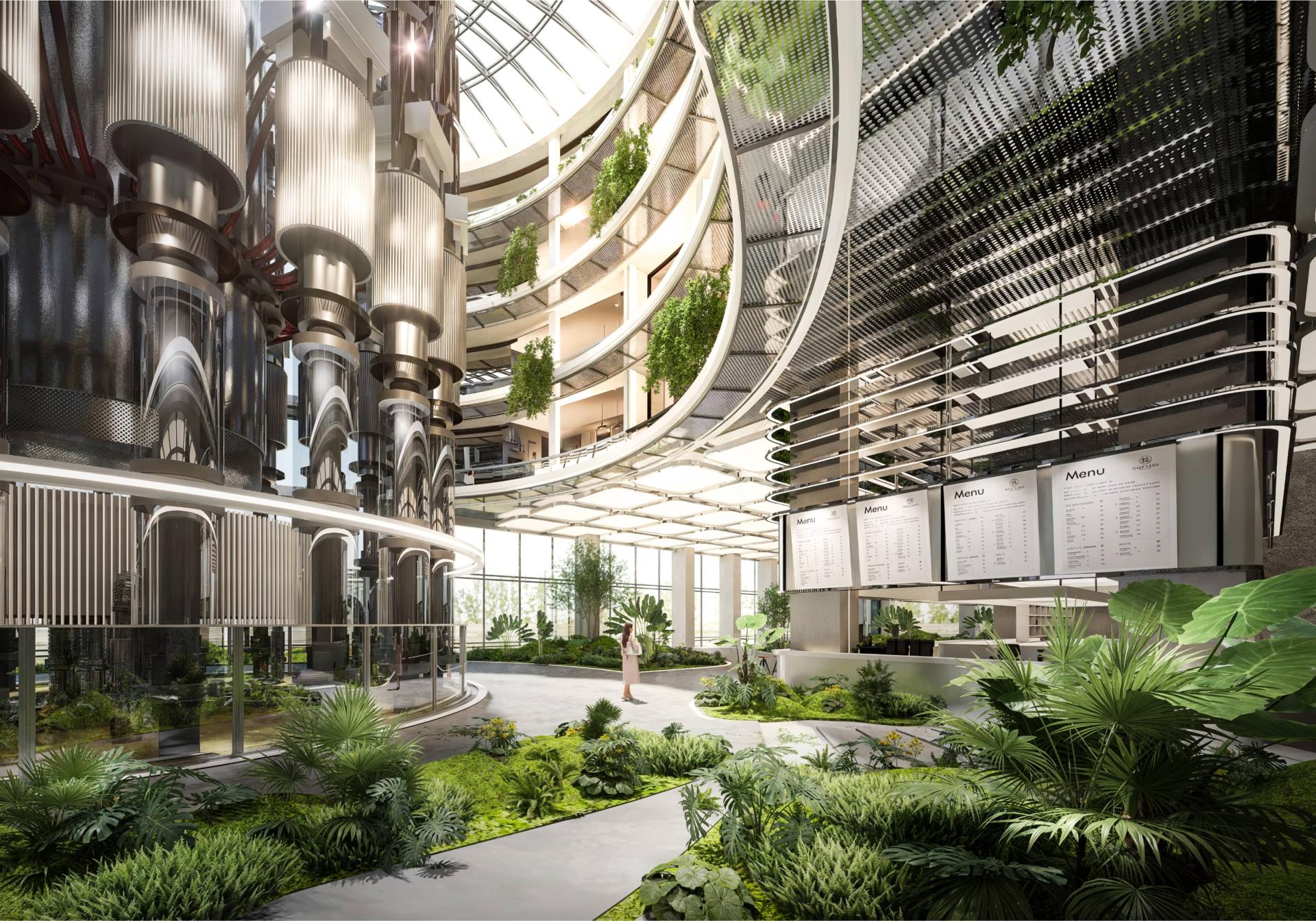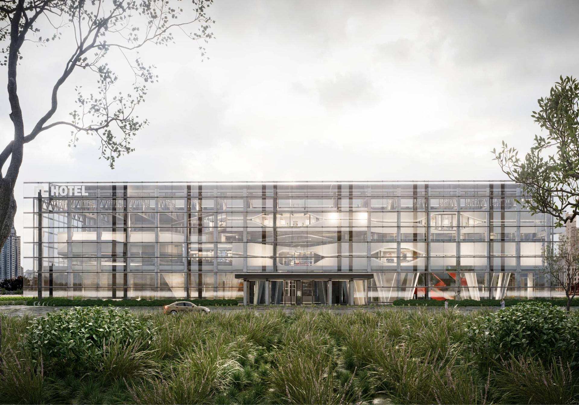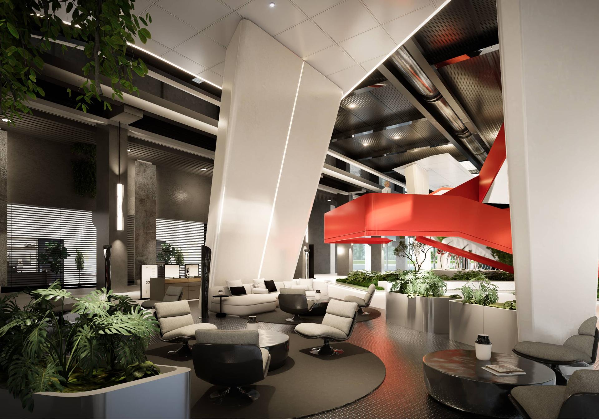 The project is located in Shenyang. It’s structured around the theme of "space&media", ingeniously integrating mechanical aesthetics with green ecological elements to create a cultural space for traveling, living and relaxing. We aim to convey the symbiotic concept of industrial strength and green sustainability through the combination of space and media. Steel, as a symbol of industry, signifies the progress and strength of human civilization while green ecology symbolizes the continuation of nature and life. The mixture of the two elements indicates the harmonious coexistence of modern civilization and natural environment.