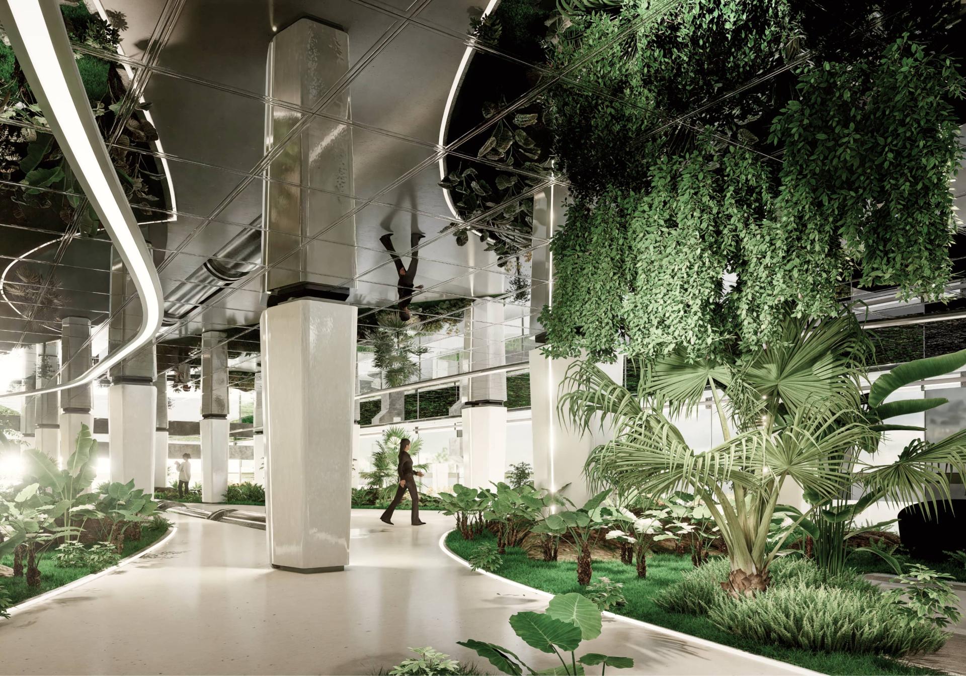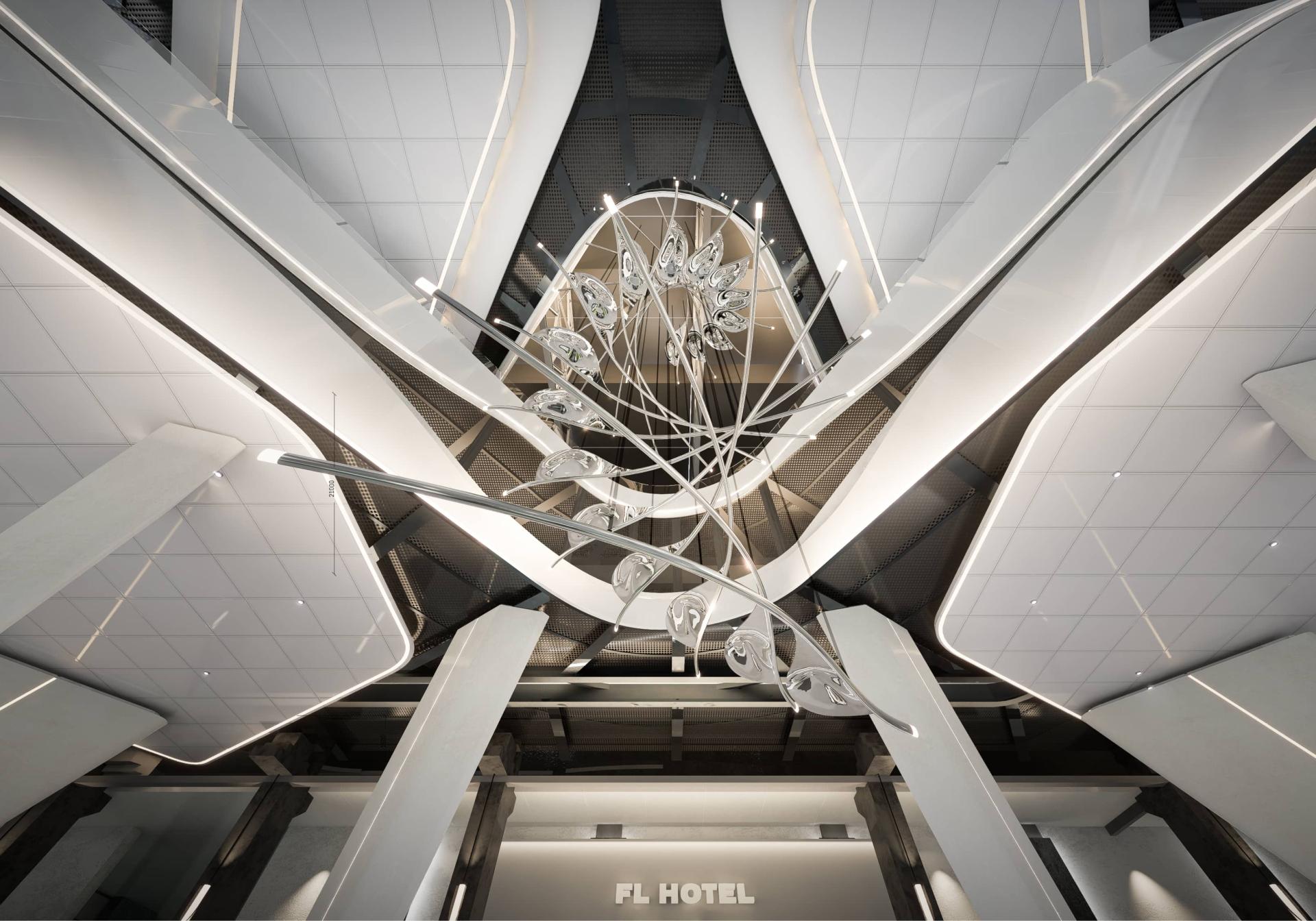 Green ecological elements play a crucial role in the design. We introduce natural landscapes into the building and create a complete ecosystem with the arrangement of indoor and outdoor green plants as well as the construction of landscape walkways and sewage purification system. These green spaces provide fresh air and comfortable environments, and also become a medium between human and nature. The hotel is equipped with intelligent lighting and environmental control systems that can automatically make adjustments according to natural light and temperature to reduce energy consumption. The design of the water purification system further enhances the interaction between man and space. The large-scale water purification device in the southern part recycles water for the hotel landscape and ecological zone by collecting natural water sources such as sewage, rainwater, and snow, and provide a vital link for the harmonious coexistence of human beings and nature.
