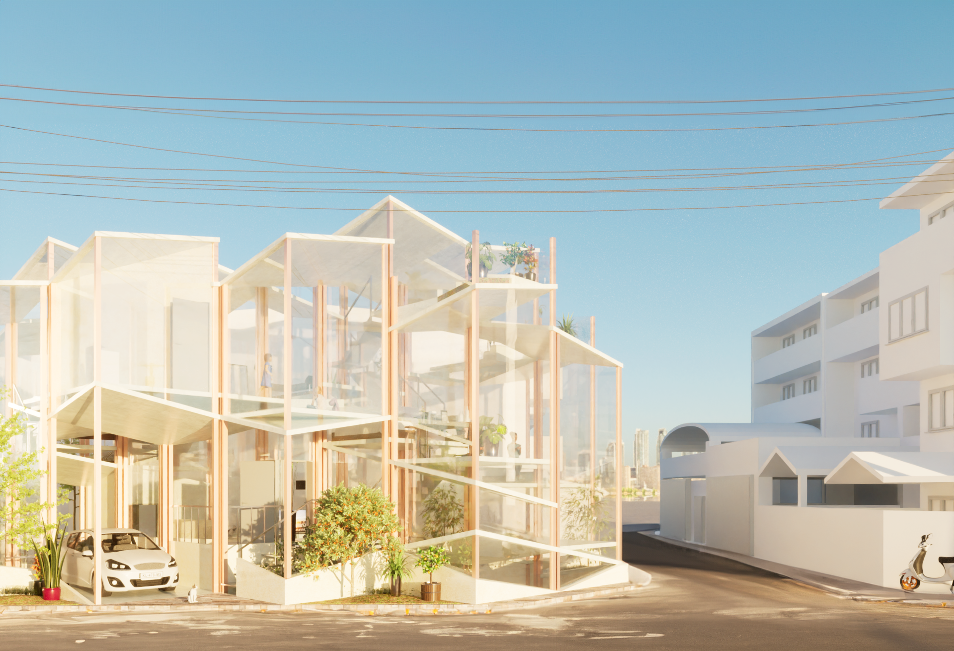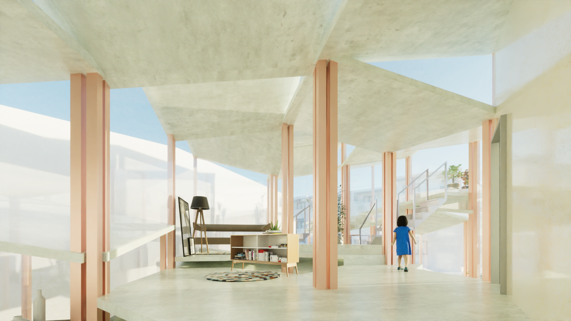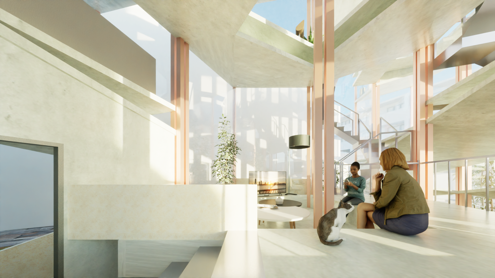 When scaled up, this design philosophy extends to housing complexes, communities, and even the city, harmonizing human environments with nature. By introducing an organic slab structure, the concept redefines the spatial connection between people and the natural world, creating a new living landscape seamlessly integrating human and ecological systems.