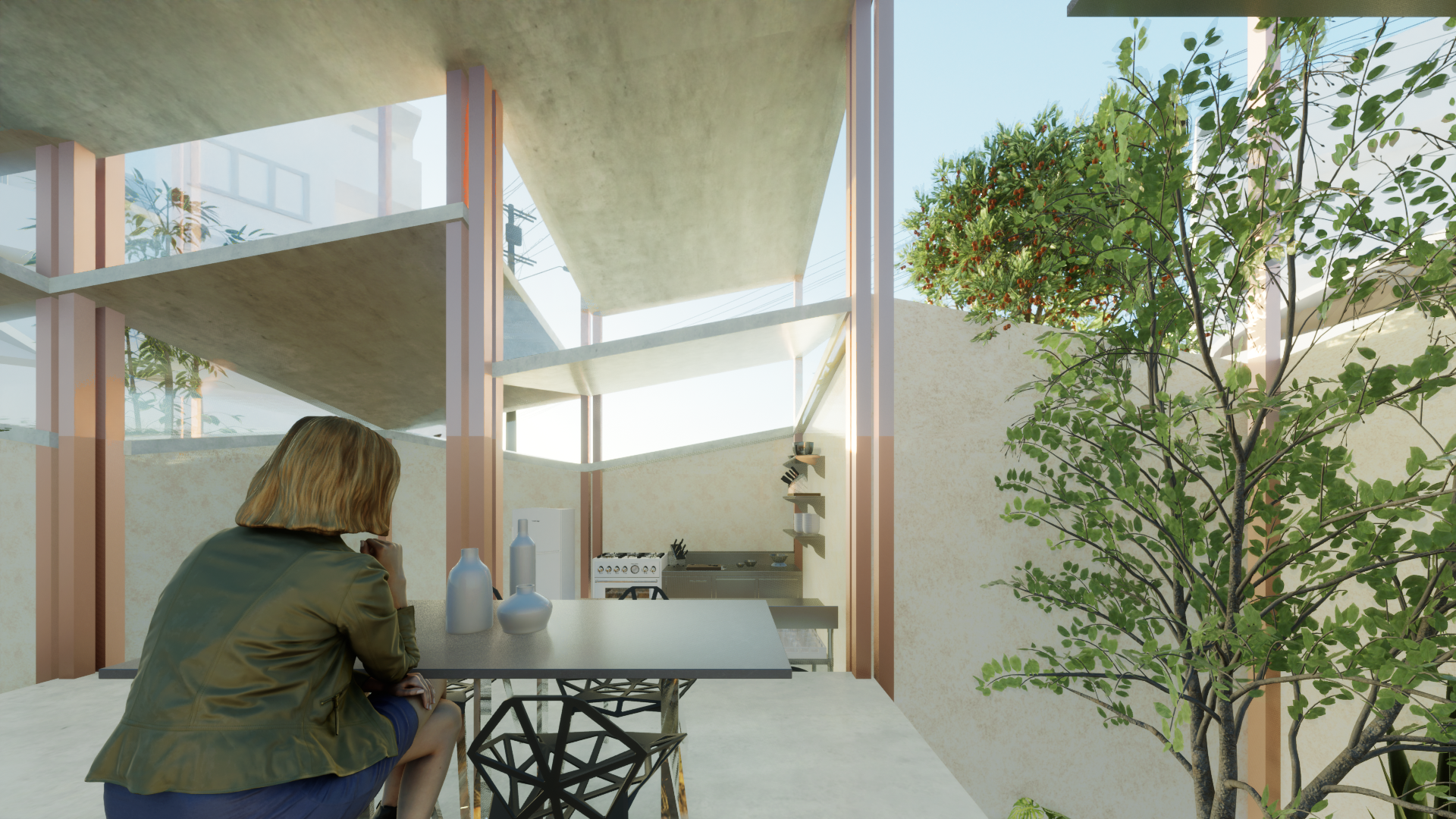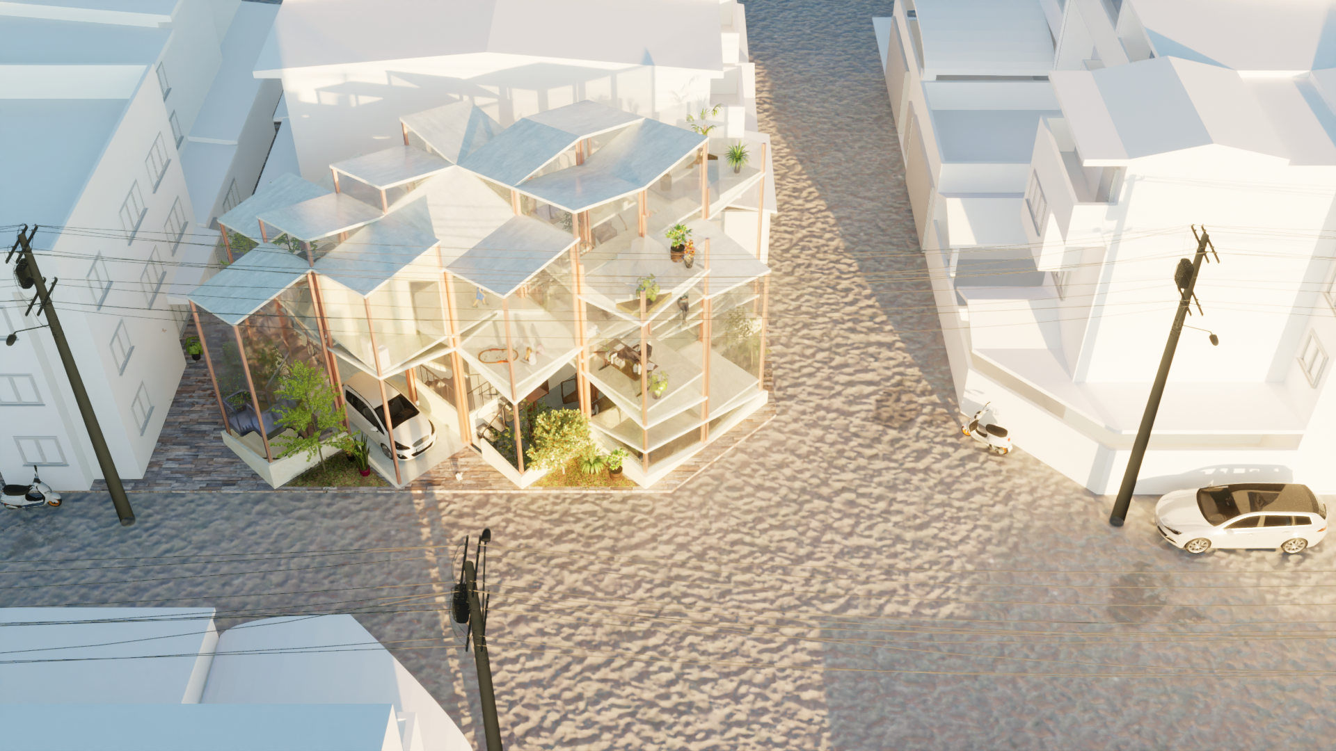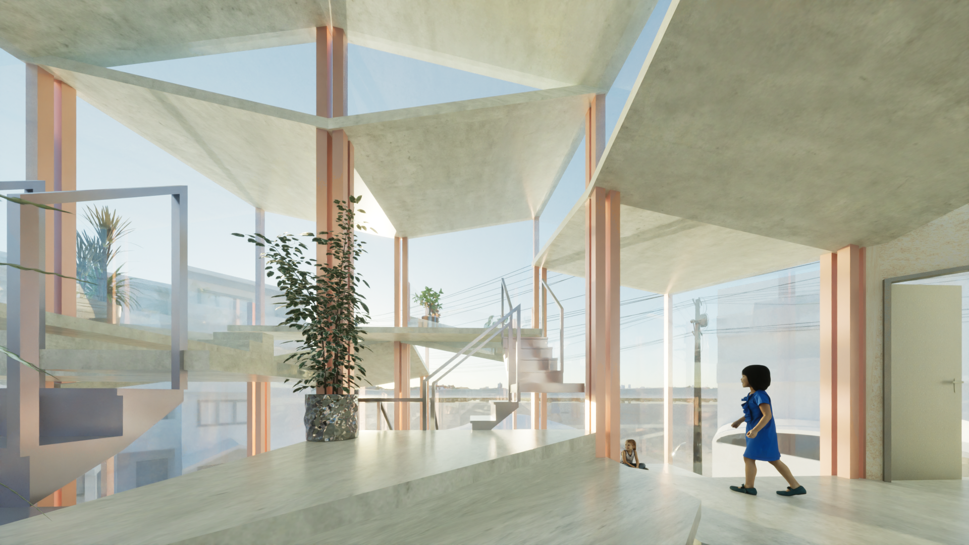 In the city’s construction, solid vertical walls traditionally define the boundary between private and public, artificial and natural, family and society. The design draws inspiration from the organic form of the roof addition on the site—an informal, unregulated space that defies conventional building regulations. This boundary, however, begins to dissolve, fostering a reimagined relationship between humans and nature within the urban fabric.