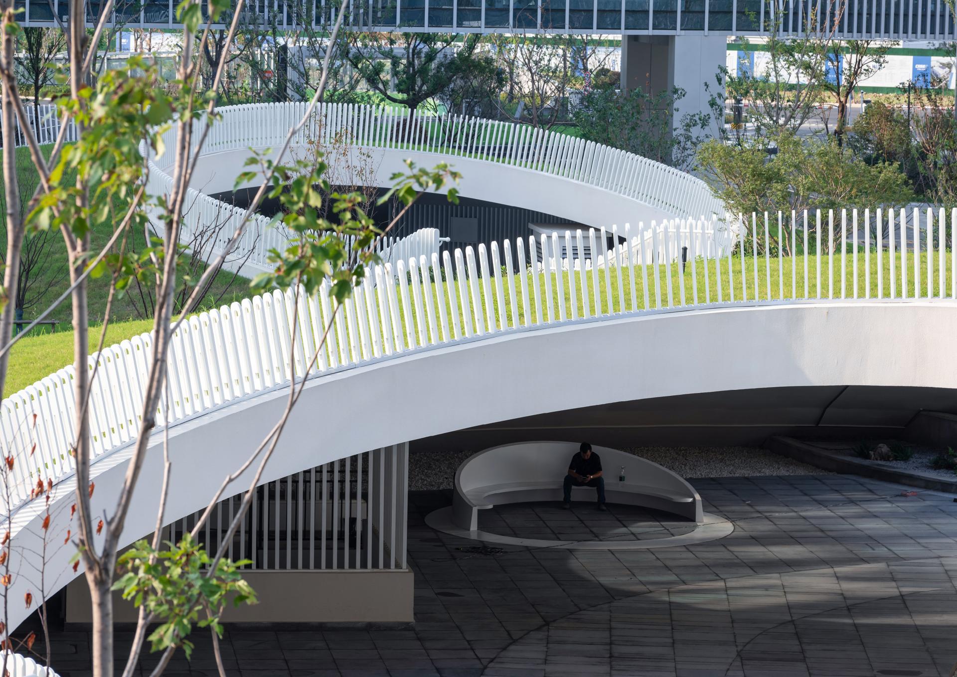 Taking advantage of the characteristics of site elevation difference and adapting measures to local conditions, a landmark concave city entrance square is created, which provides more and safer use scenarios for customers and the public, and reflects and strengthens the friendly and open public attributes of the park.