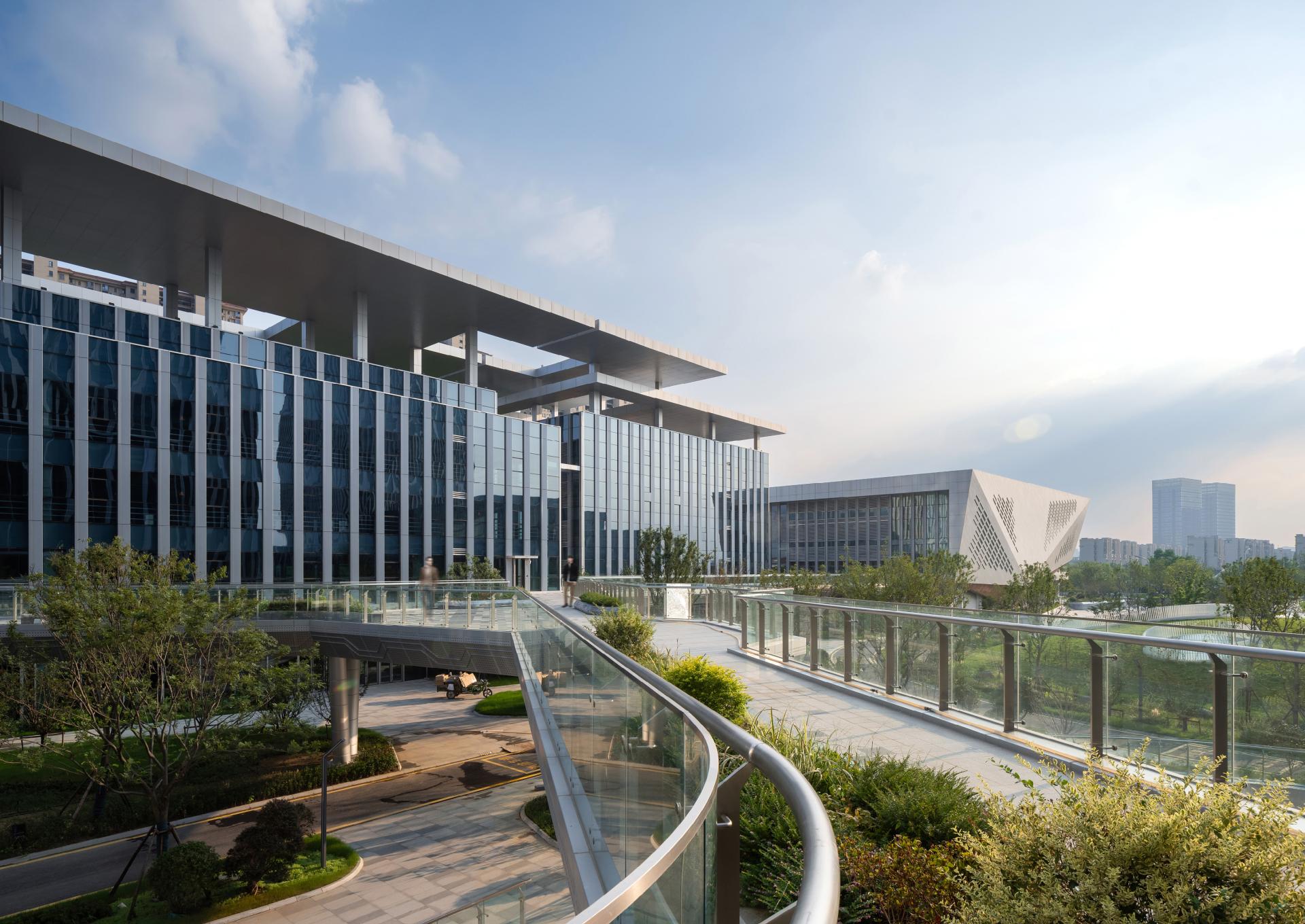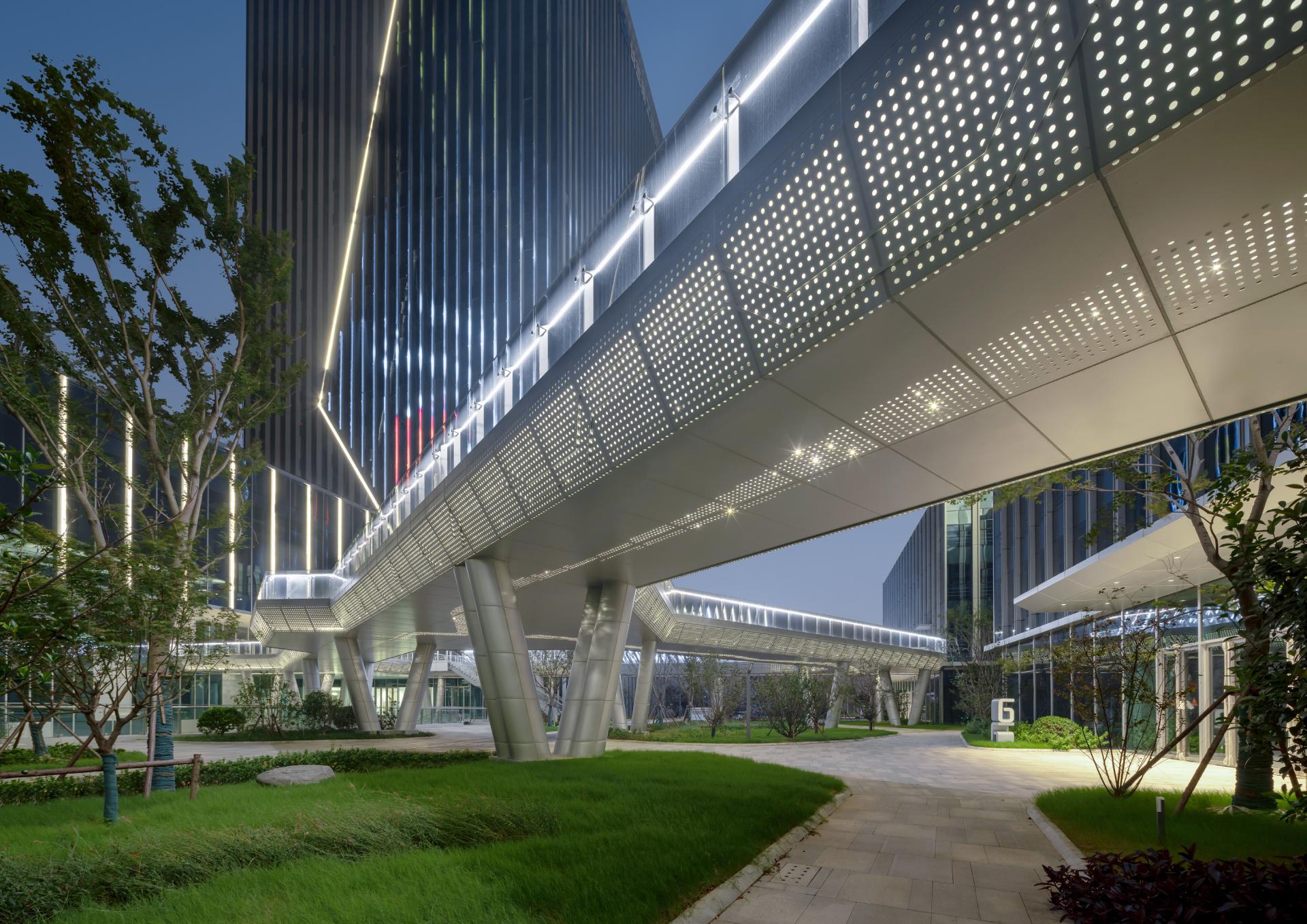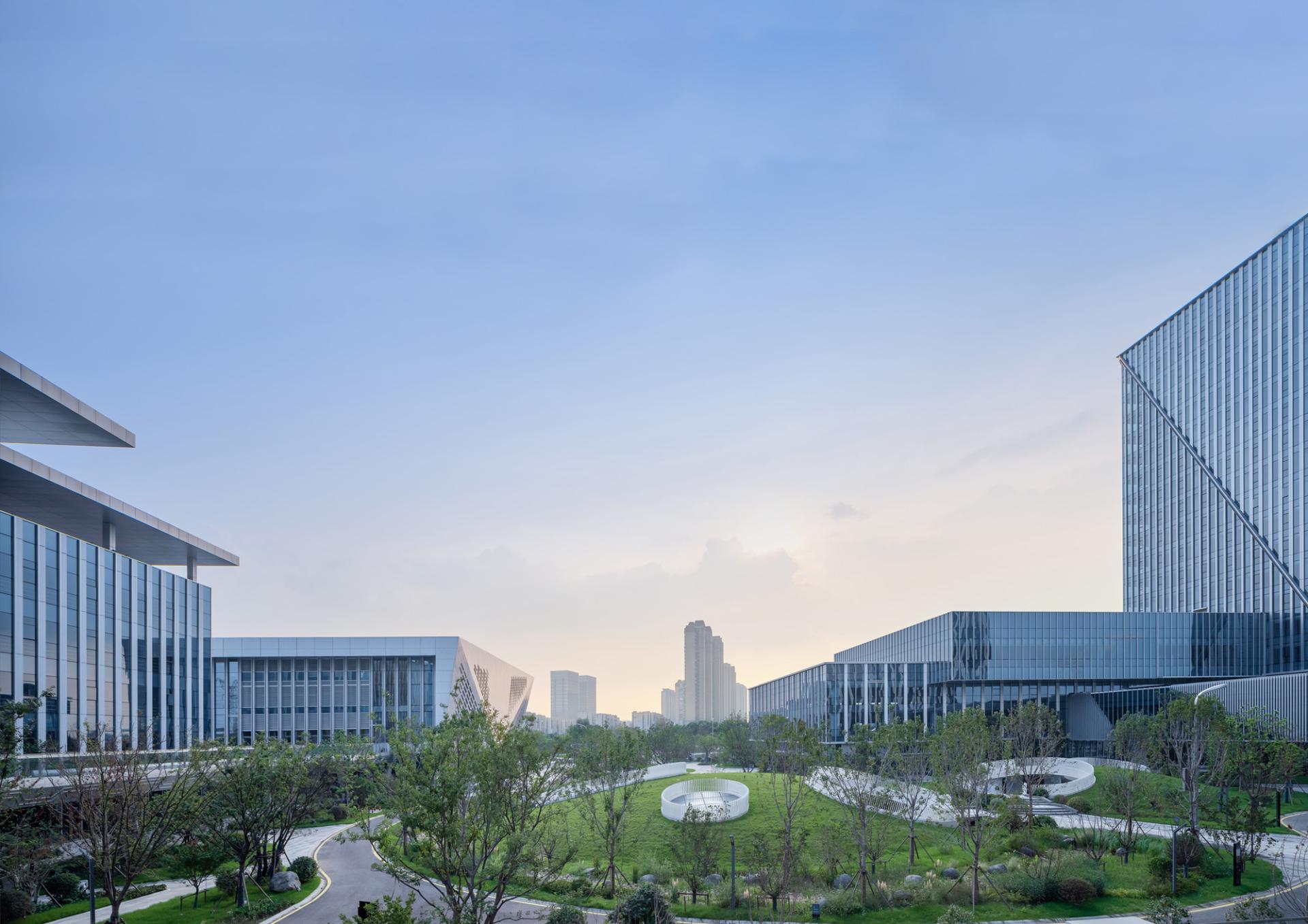 The site adopts an enclosed layout, connecting various functional blocks through the sunken square, central green space, air corridor and roof garden, creating a multi-level landscape space, providing more accessibility for the site, promoting the communication between enterprises and customers, and realizing multi-dimensional ecological sharing.