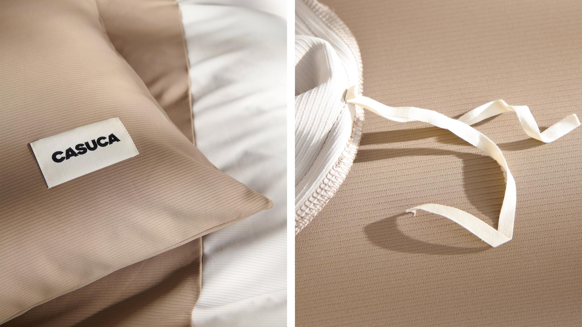 Every detail of the product is meticulously crafted for a high-quality and comfortable experience. The 0-sensation stitching process ensures neat and delicate seams with a soft, imperceptible touch, while offering durability for long-term use. The pillowcases feature an envelope-style design that is minimalist and elegant, making them easy to remove and clean. The duvet cover is equipped with eight thoughtful ties to keep the comforter securely in place.