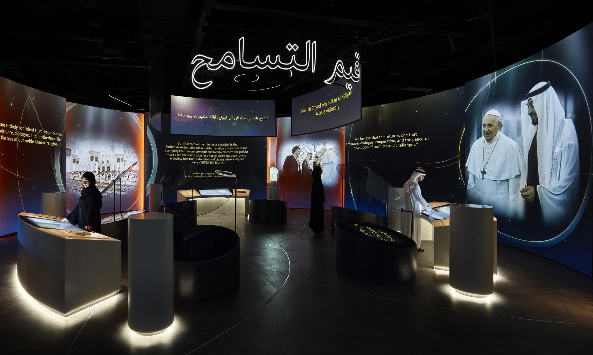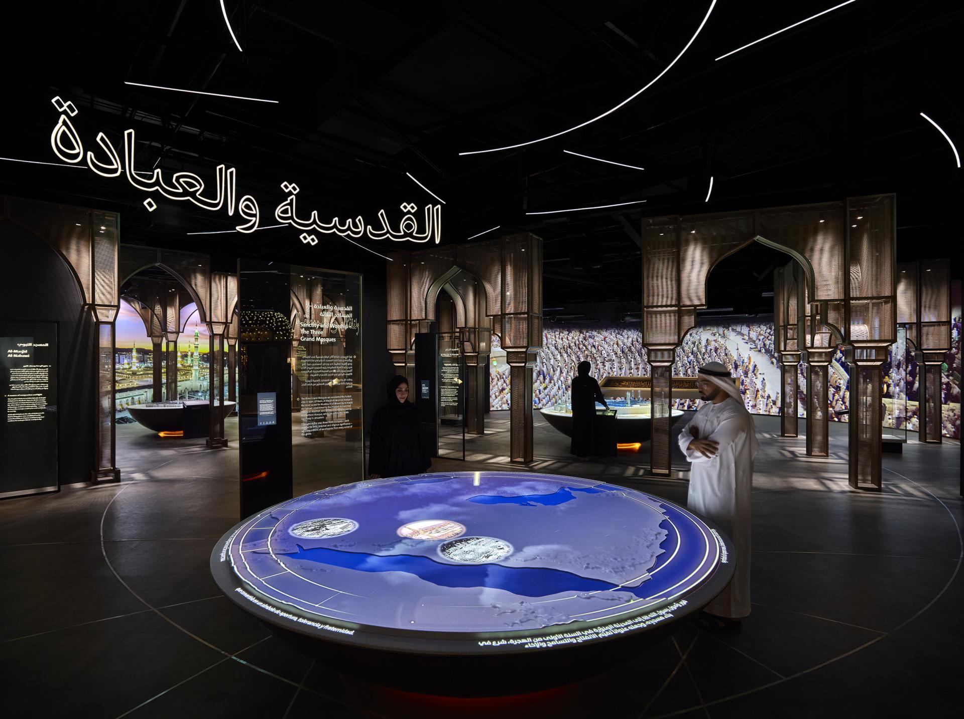 The narratively-driven Visitor Centre that accompanies the Grand Mosque is a permanent exhibition that forges connections between the Mosque and the wider story of Islamic civilization, as well as and the scientific and cultural achievements that flourished from the coming of Islam. Spanning 1,050 square meters, Light and Inspiration: Sheikh Zayed Grand Mosque encompasses different aspects of Islam while connecting the gallery space – making use of the height of the gallery and bringing in sound, scent, and light to create a sense of co-existence, openness, and shared experience.