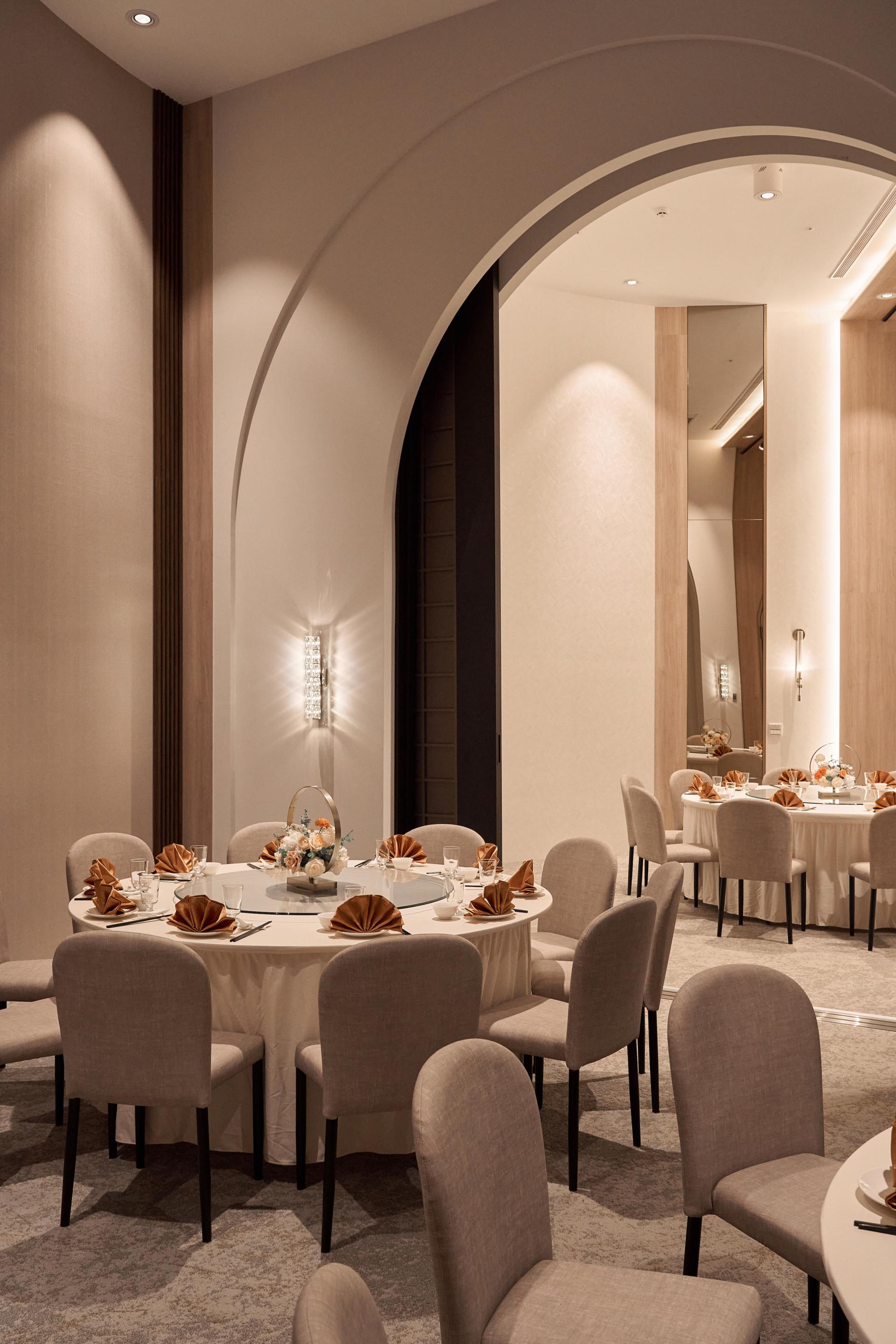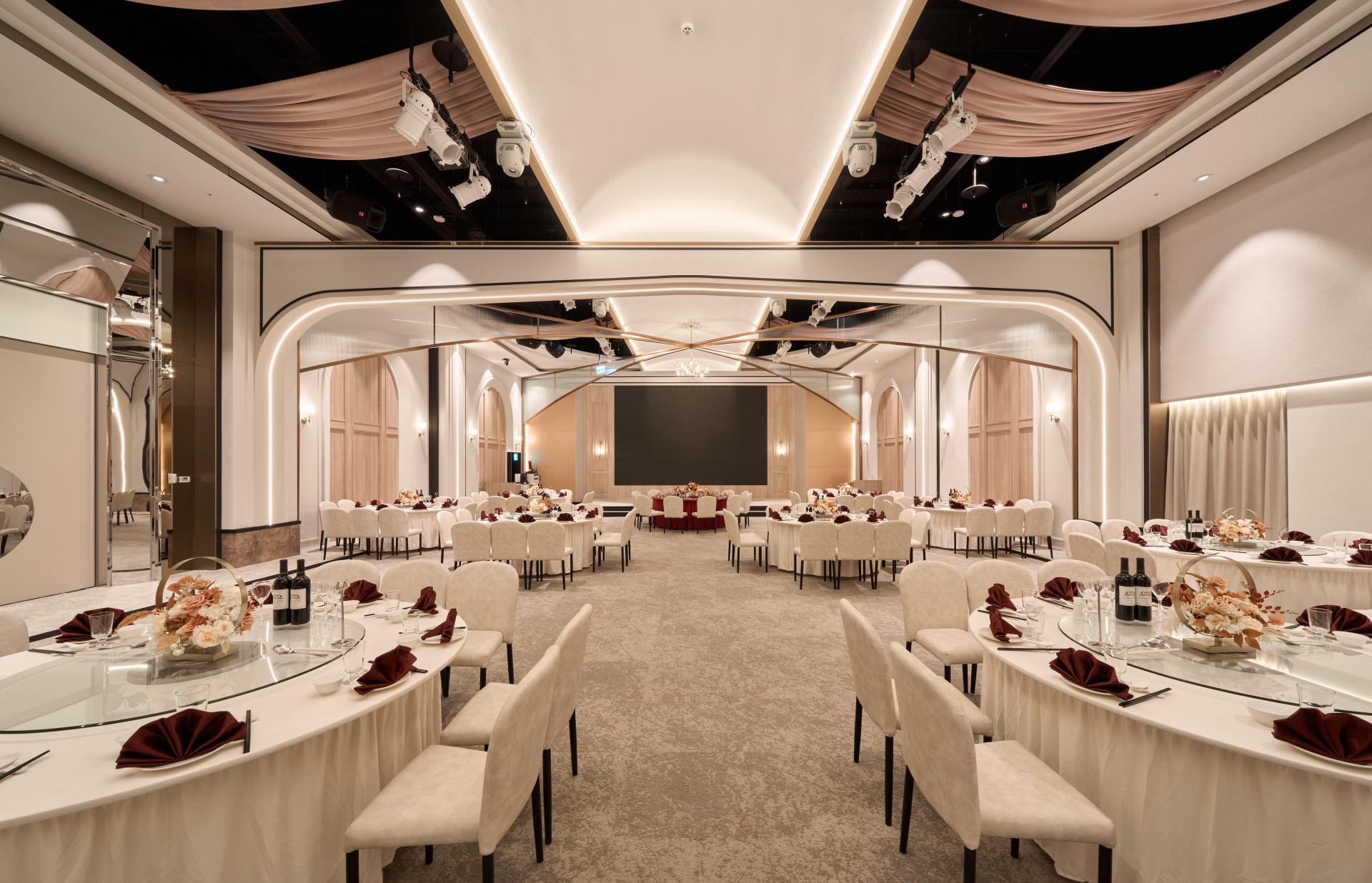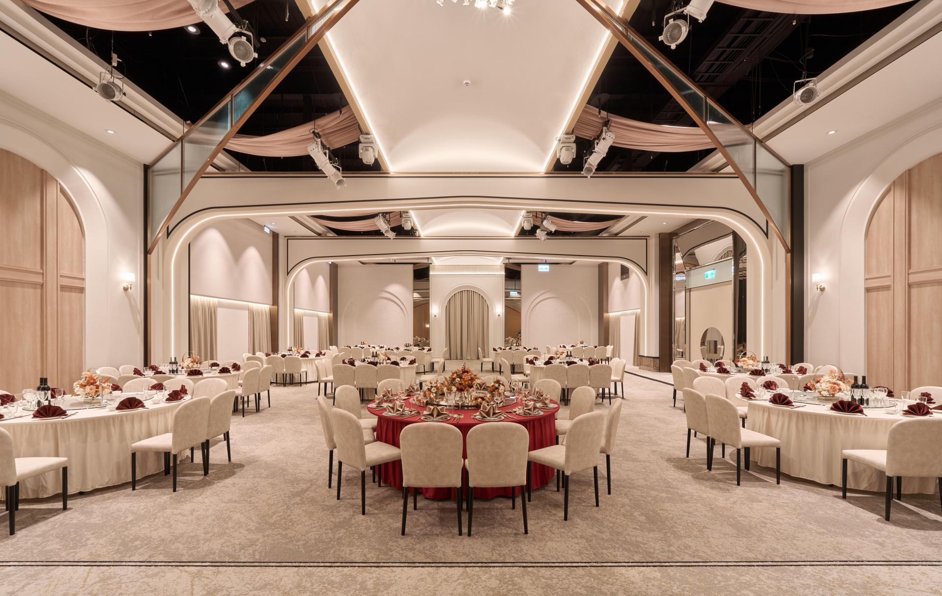 A wedding banquet hall, carrying blessings of newlyweds over the past 10 years. Redefining and harmonizing interior style, the design team solves the problem of inconsistency of each original space. Considering brand innovation and acceptance of future customers, design team integrate modern and luxurious senses and retranslate characters of French church. Each room not only suits wedding banquet purposes, but also multiplies its business and catering functions. Retaining parts of design elements to extend old memories highlights the spirit of sustainability and environment-friendly concept.