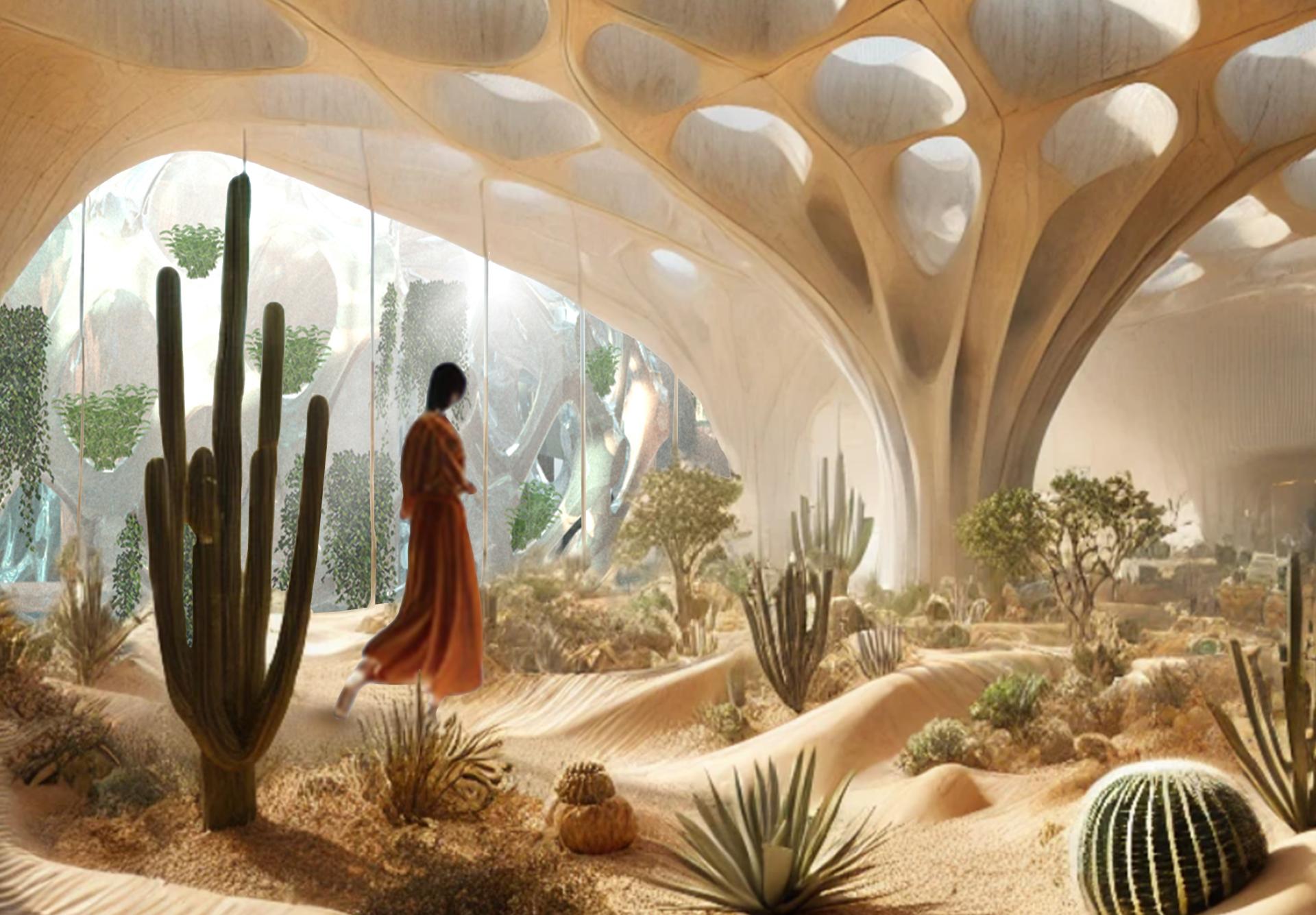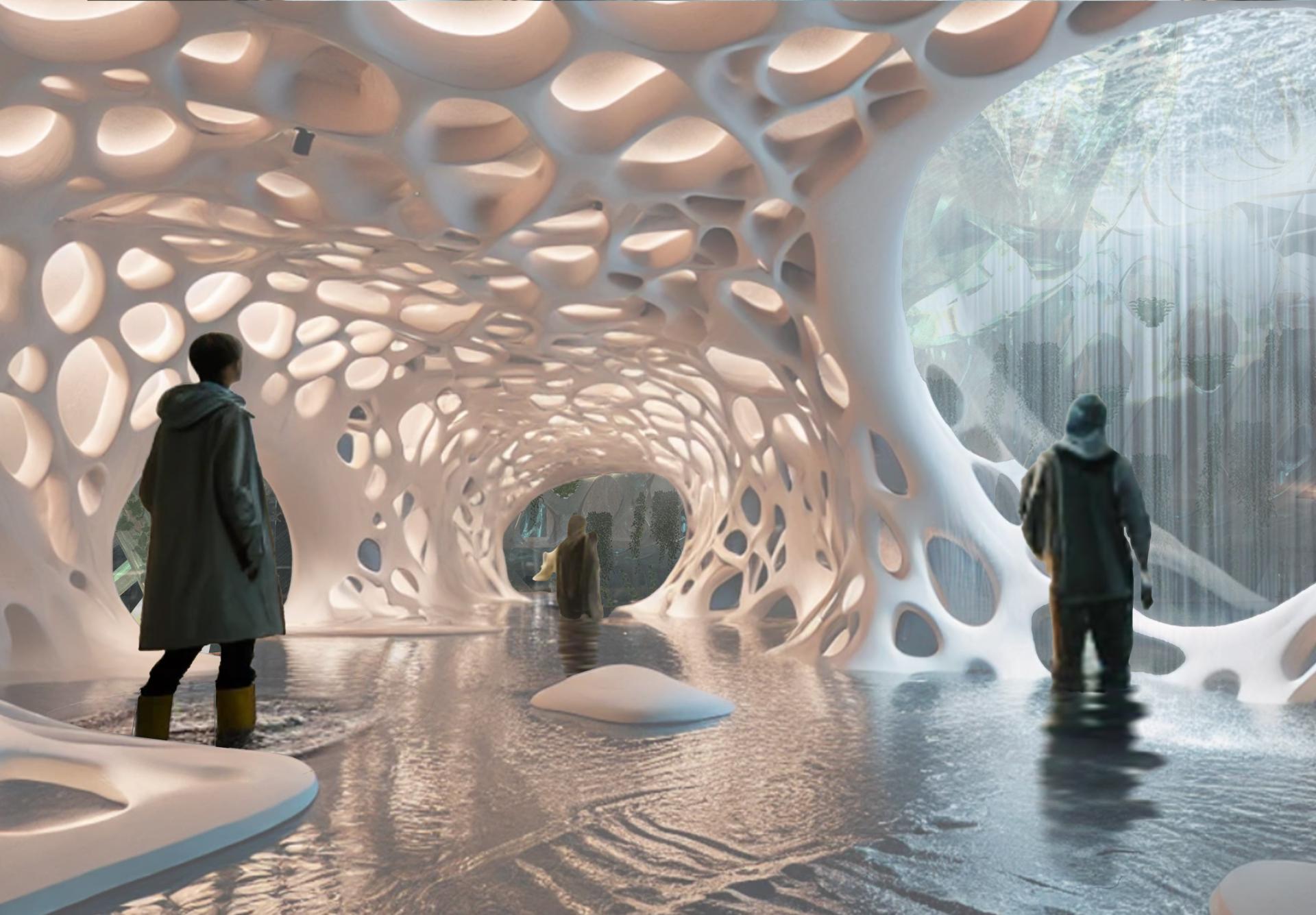 This project envisions a natural museum housed within a greenhouse, transforming interior space into an immersive medium for climate awareness. Rather than relying on data and scientific analysis, the design engages visitors through sensorial experiences, placing them in direct dialogue with the realities of climate change.