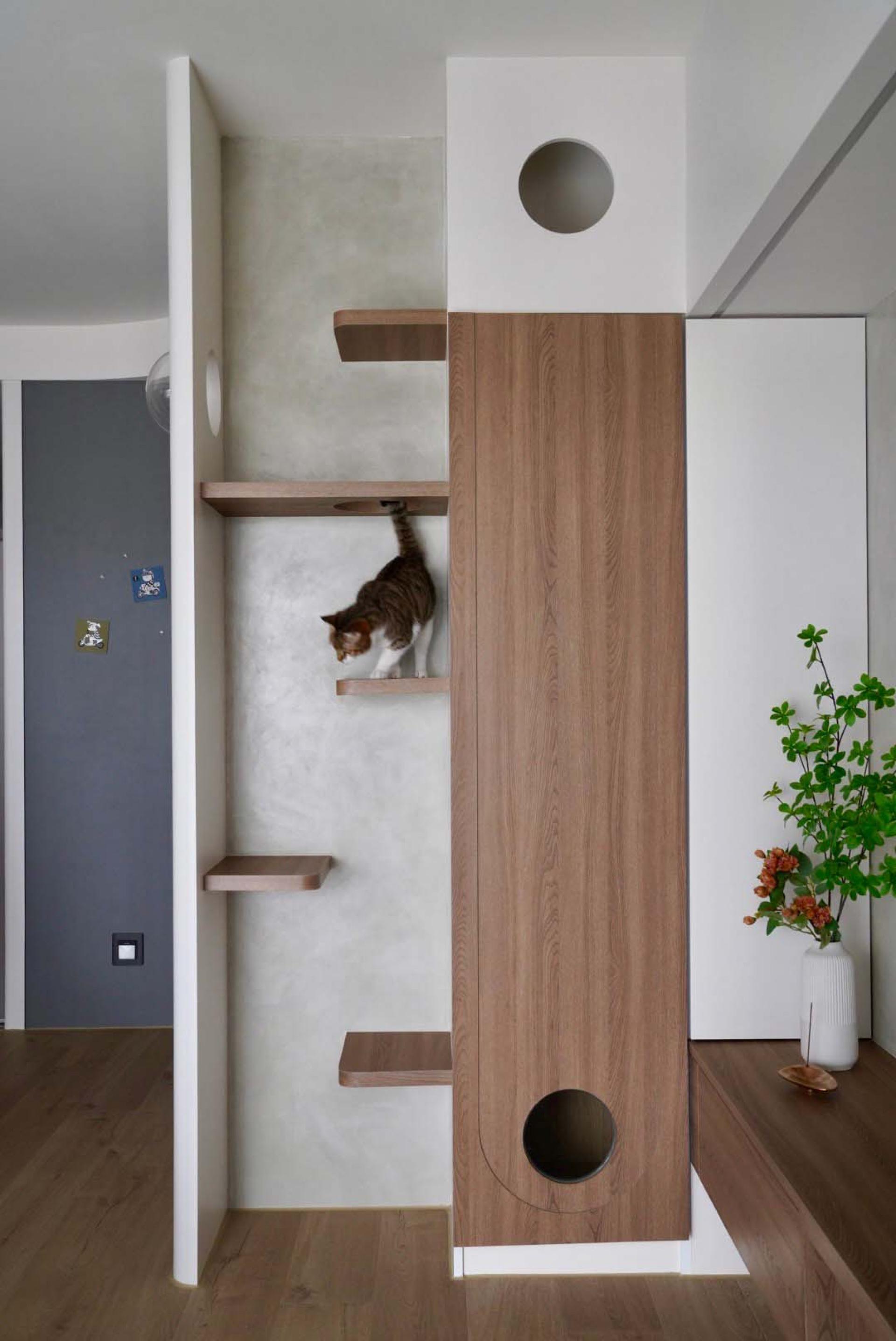 Whether it’s basking in sunlight by the window, relaxing on a cozy sofa, or exploring the carefully arranged platforms, Serene Arc Residence is more than just a home—it is a sanctuary where both humans and pets can find peace, coexist freely, and share moments of tranquility and warmth.
