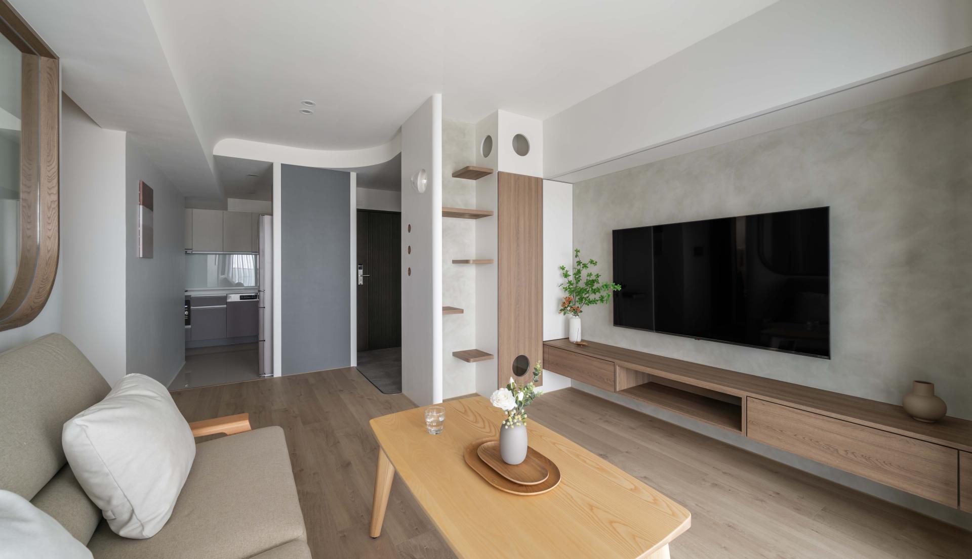 This multifunctional wall design serves as both an entertainment space for pets and an integral part of the home, fully embodying the practicality and warmth of Scandinavian style. At Serene Arc Residence, every space is thoughtfully designed to meet the needs of both people and their pets while preserving a sense of simplicity and elegance, making the home a warm and comforting sanctuary for the soul.