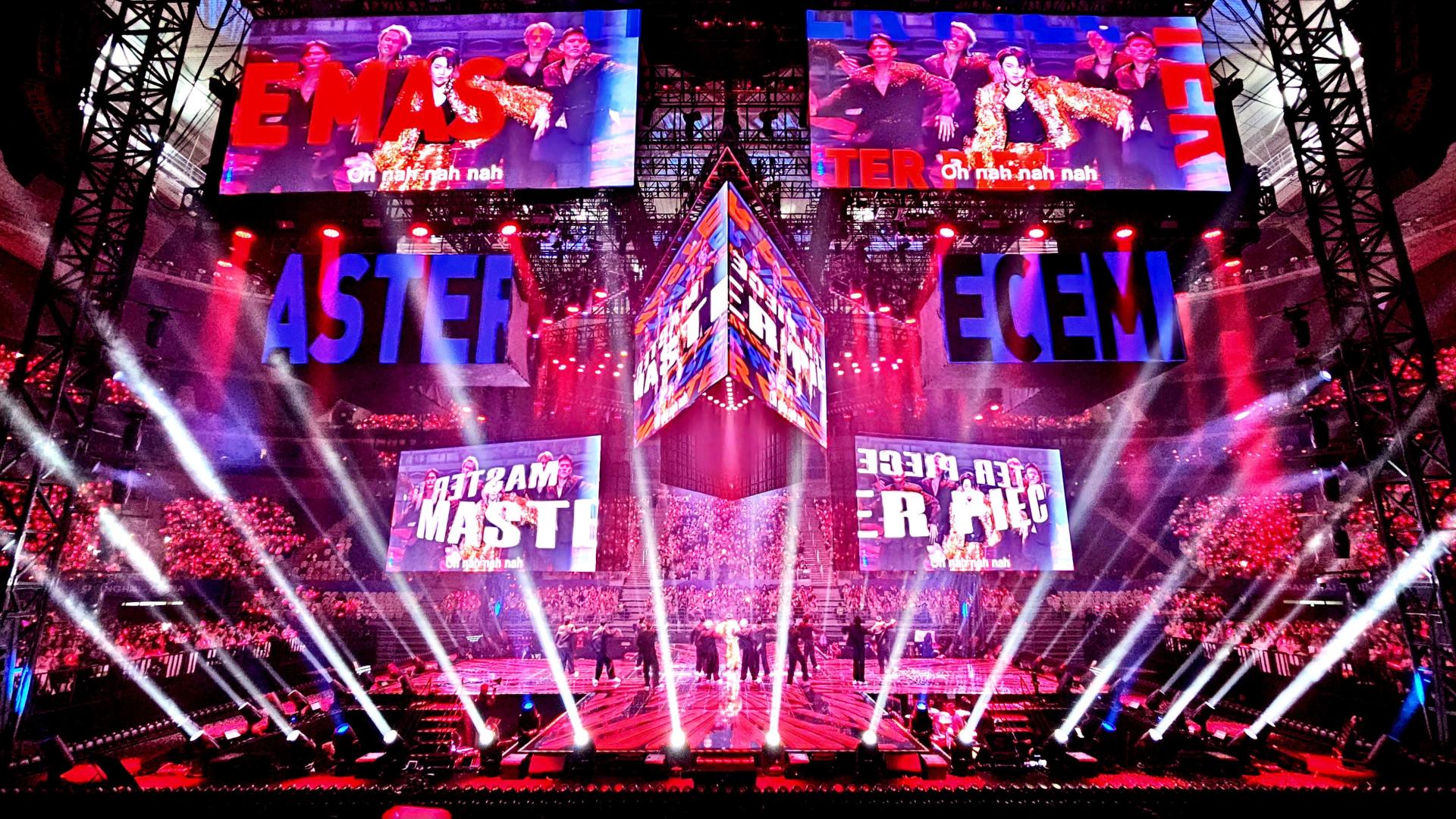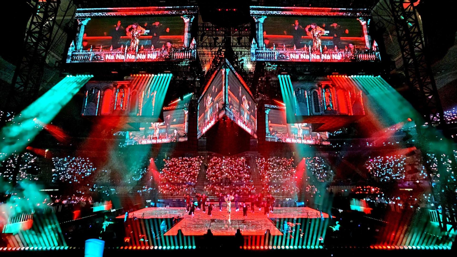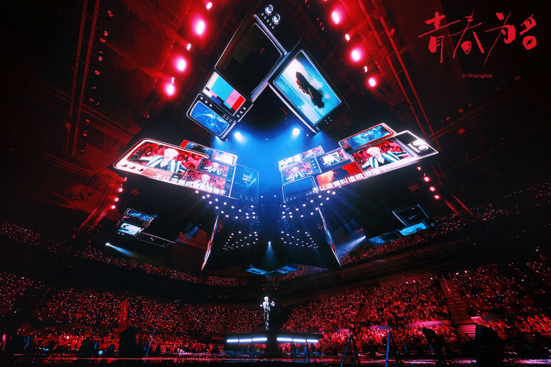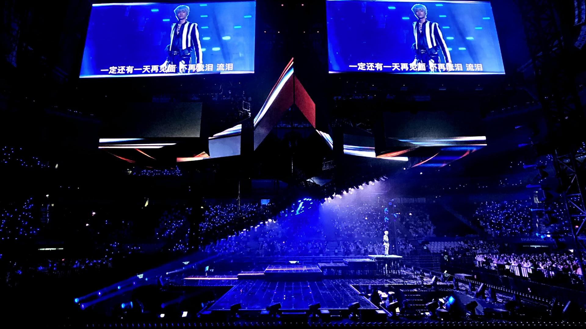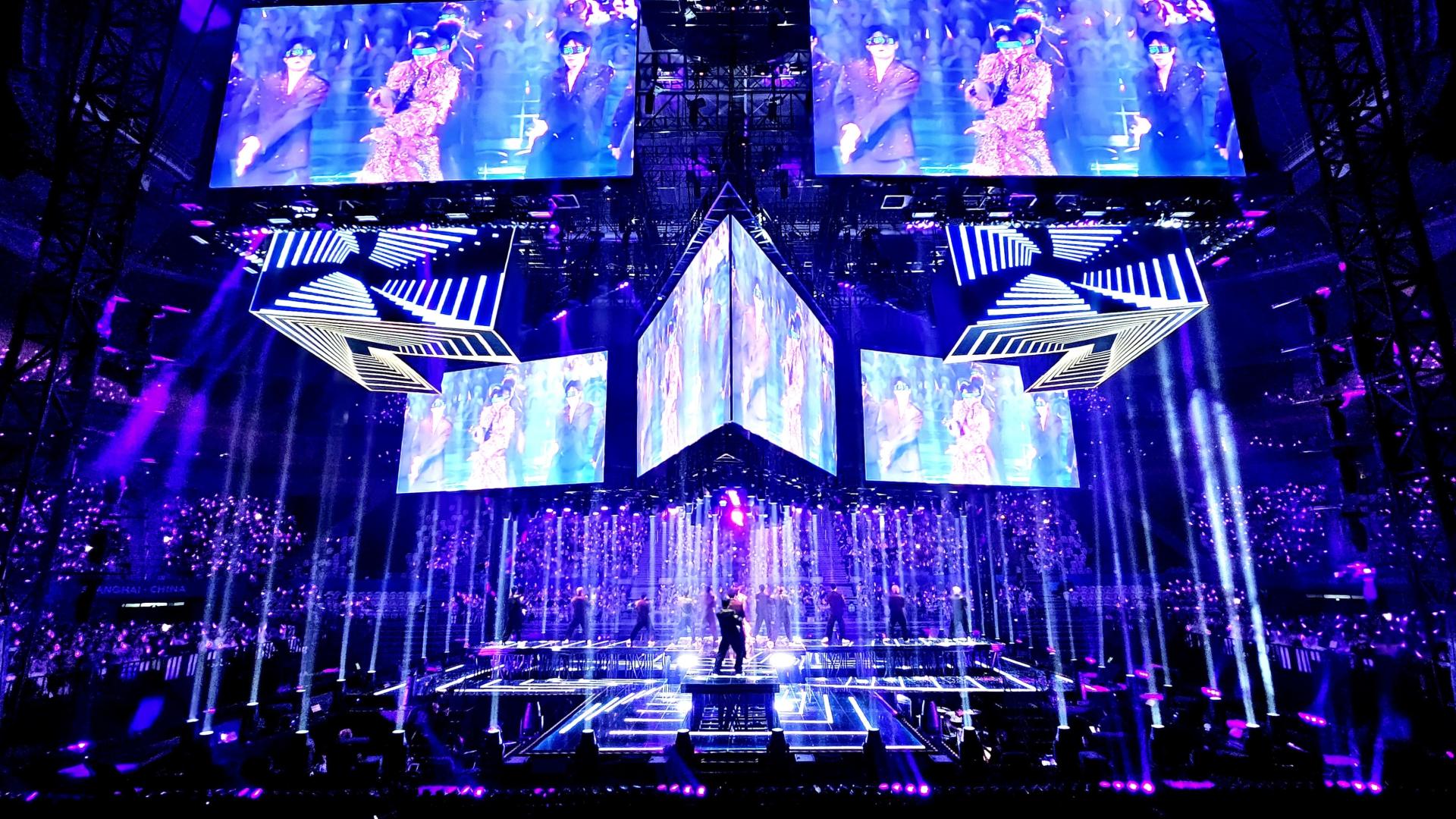 The stage design features a cross-shaped layout that extends throughout the venue. Its open, four-sided structure creates a visually immersive experience. The stage is composed of up to 15 dynamic lifting platforms and a vast LED floor, seamlessly integrating layered movements with stunning visual animations to create a rich, three-dimensional effect. One of the most exciting features is the interactive elevating jib arms, which can extend upward and outward, surrounding all four sides of the stage and bringing the artist even closer to the audience. This spectacular moment peaked as the rising platforms set the stage for one of the most thrilling highlights of the concert. The overhead structure is composed of variously shaped LED screens, interwoven with a meticulously designed lighting system. At each of the four corners, dual-layered L-shaped screens are installed, with the inner layer capable of adjusting in height and tilting at different angles. At the center of the cross-shaped stage, four massive triangular LED screens surround the core, with the entire structure able to ascend and descend freely, creating a layered and immersive visual impact.