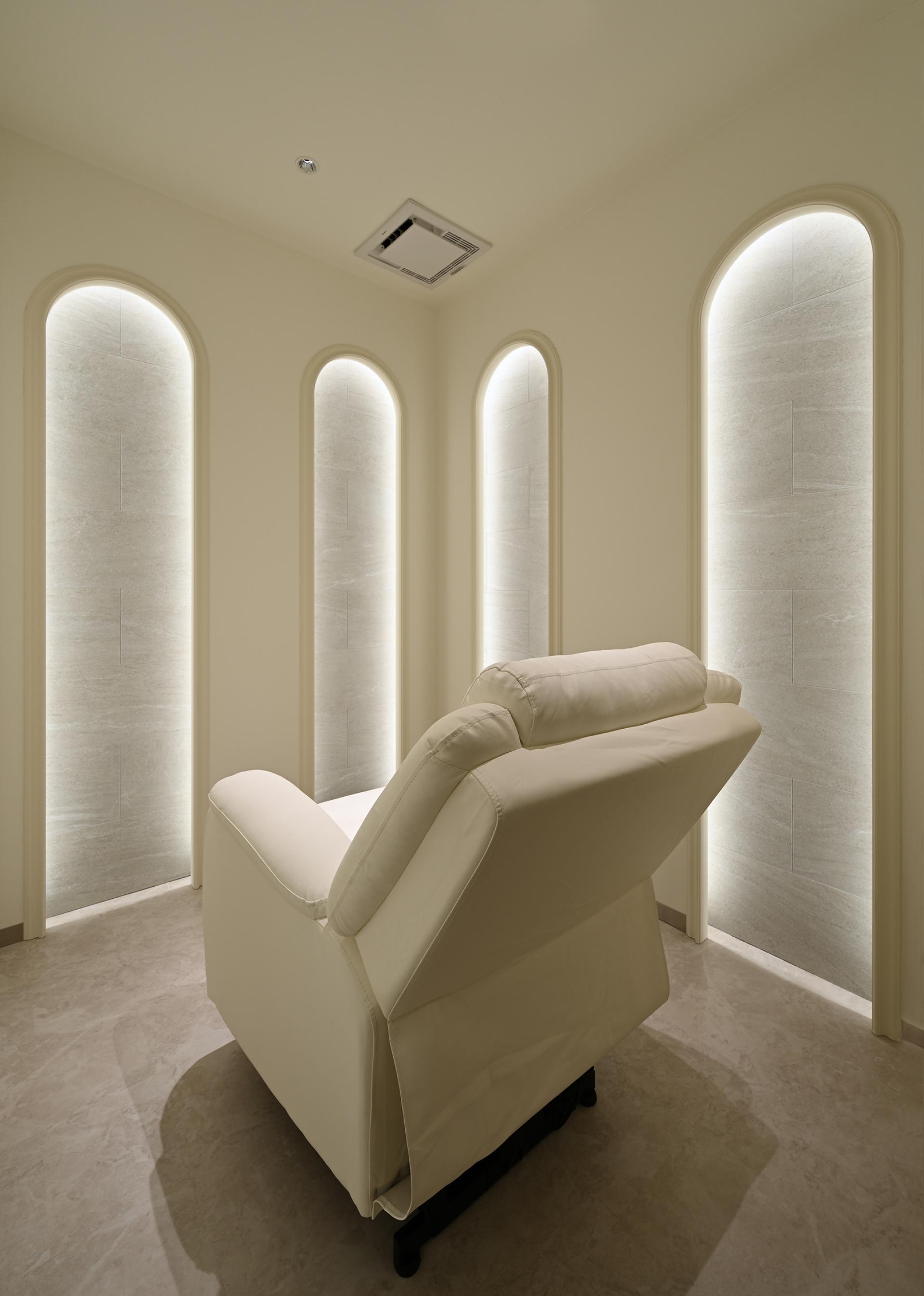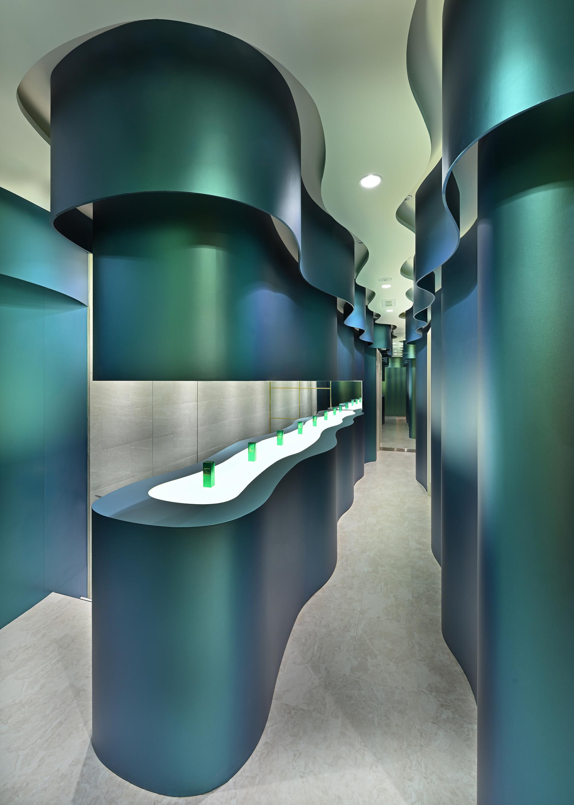 This is a members-only high-class beauty clinic mainly for male executives, so we have asked to create a high-society environment from our client. Our answer for the client’s demand was to create “good quality strangeness.” By creating the strangeness which could be uncomfortable to people with one wrong move but making it harmonizes with the space itself, we tried to betray people's expectation about a beauty clinic; white, clean and luxurious. It could be a good impact to trigger satisfaction and a sense of superiority of executives who will be visiting here, and give impactful presence to the beauty industry.