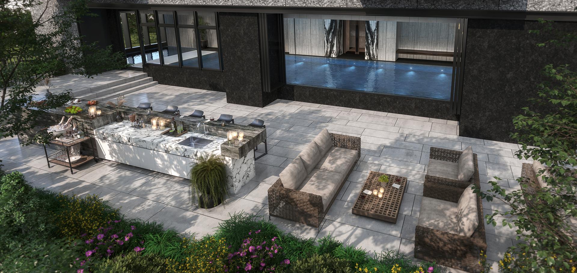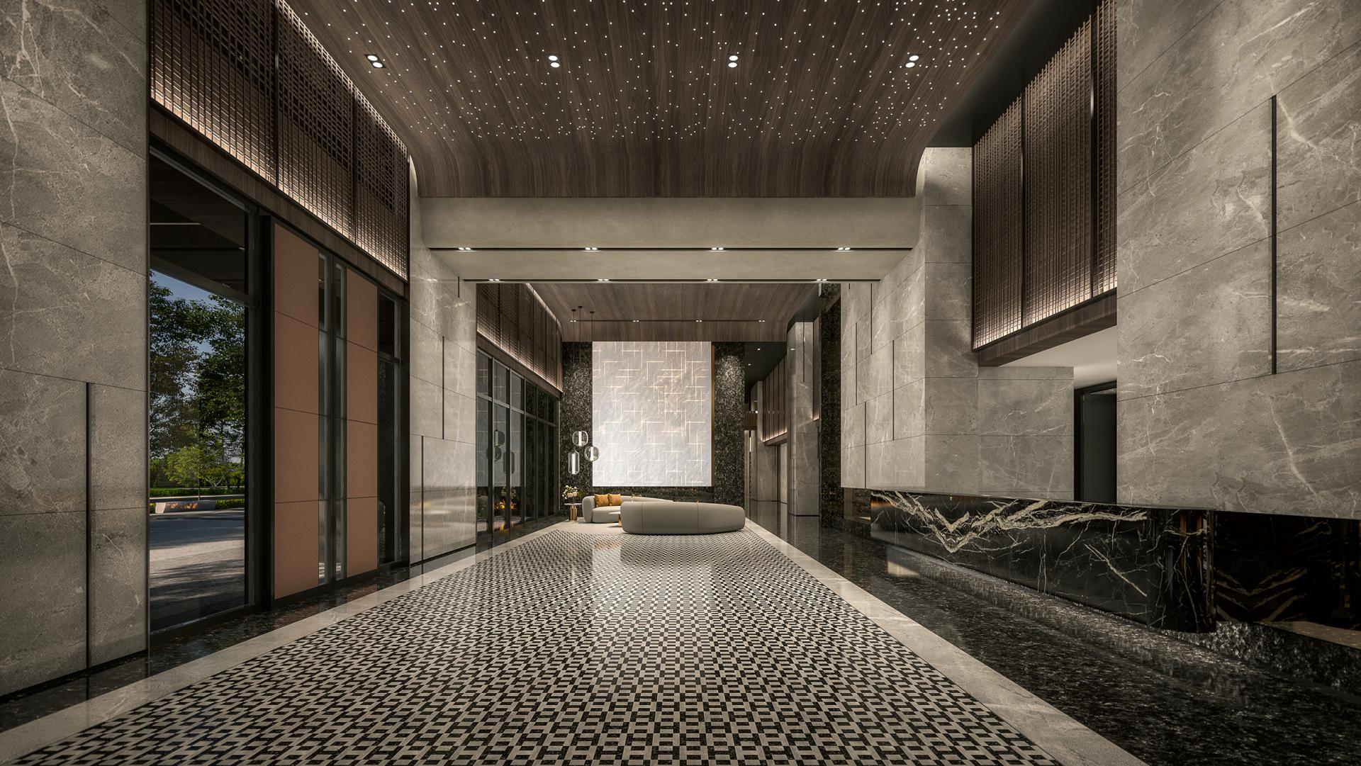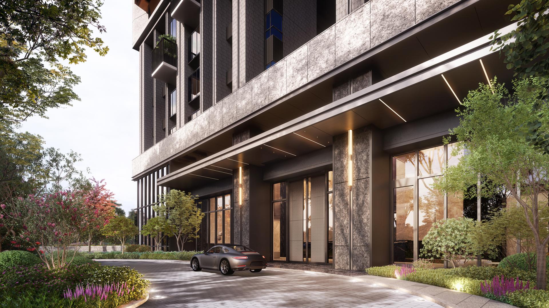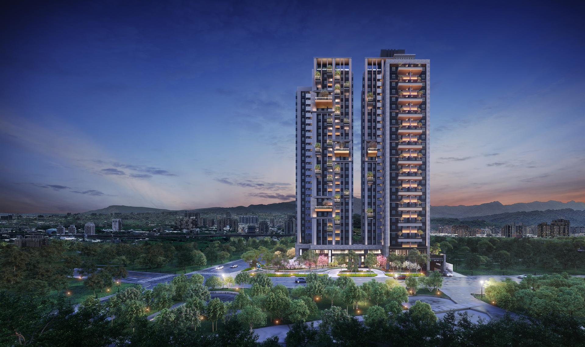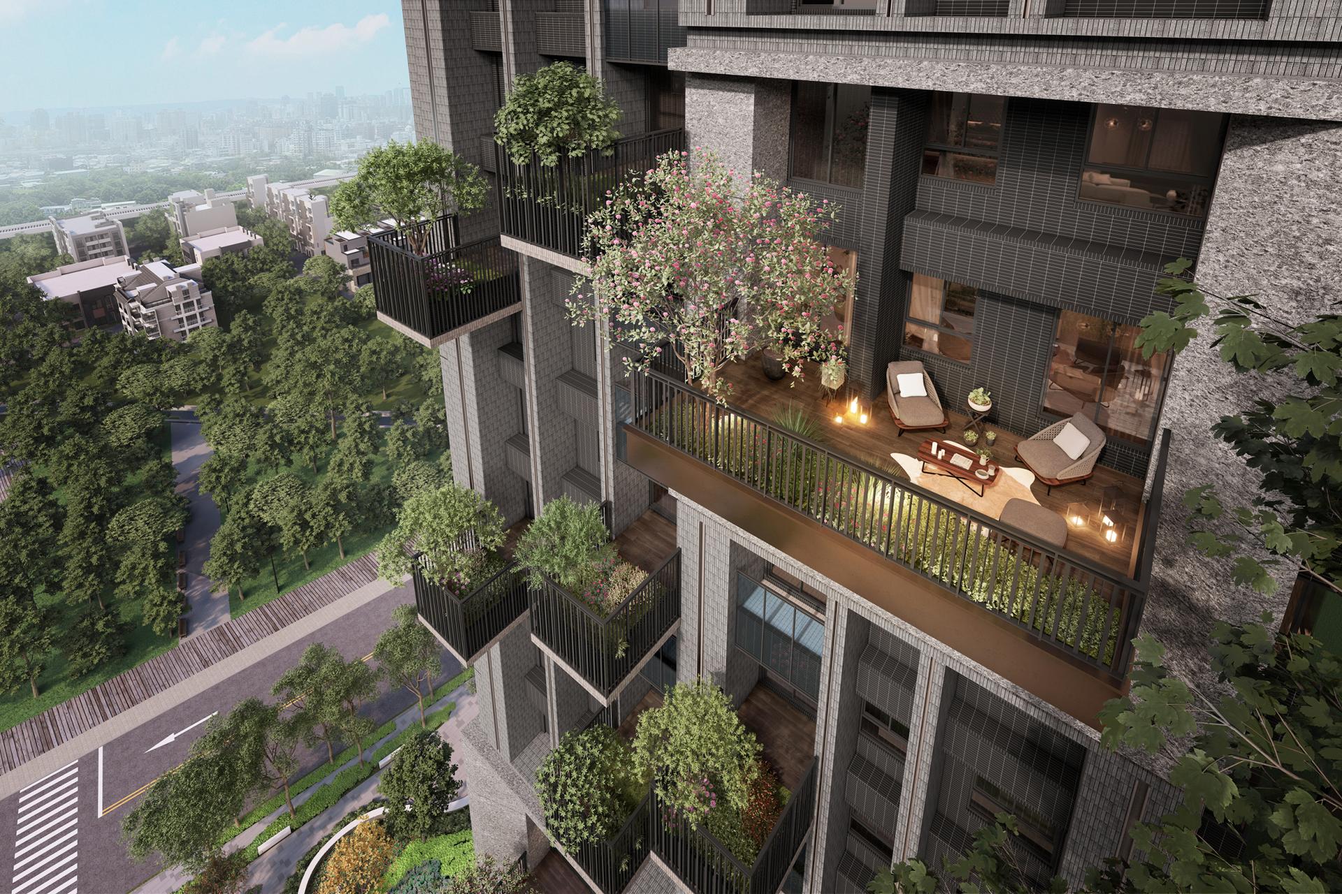 The residential complex is an innovative architectural endeavor comprising two distinct buildings, thoughtfully designed with an asymmetrical aesthetic that fosters a visually striking separation. This approach sets it apart from conventional two-building layouts, offering a fresh perspective on urban design. The right-hand building is adorned with elegantly stacked greenery, featuring balconies that harmonize in width, creating a cohesive visual flow. In contrast, the left-hand building captivates the eye with its dynamic split-level balcony design, enhancing the overall rhythm of the structure. Among these outdoor spaces, the largest balcony stands out at 32 square meters, providing ample room for residents to enjoy the outdoors.
