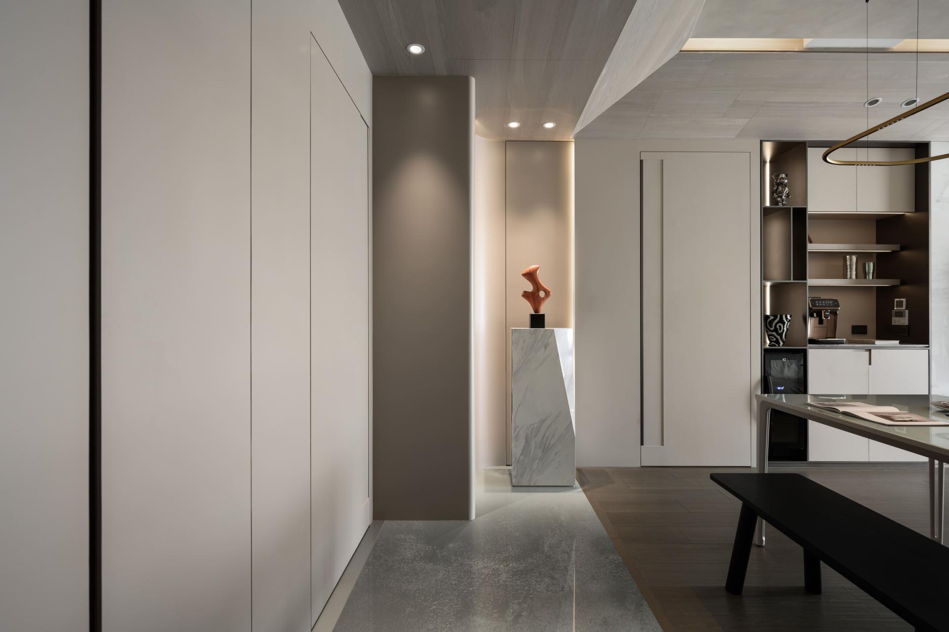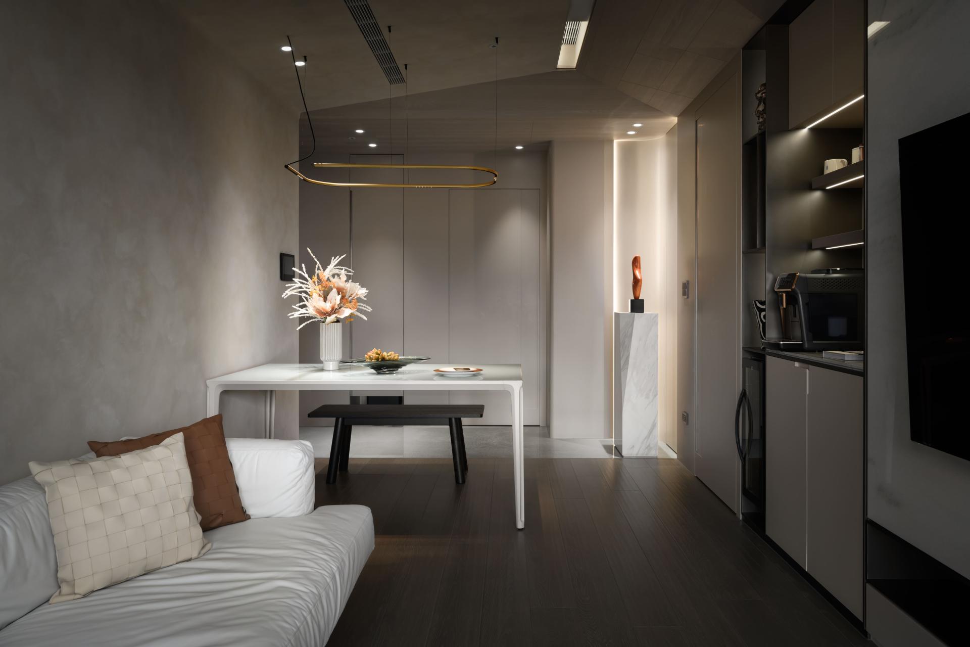 This project is designed for a single male homeowner, where thoughtful planning ensures a balance between display functionality and comfortable practicality despite the limited space. The overall aesthetic embraces a sophisticated minimalist style, incorporating wood textures and gray tones to create a warm yet refined living environment. Strategically placed lighting accentuates architectural lines, enhances spatial depth, and promotes a fluid sense of openness, making the space feel more expansive and inviting.