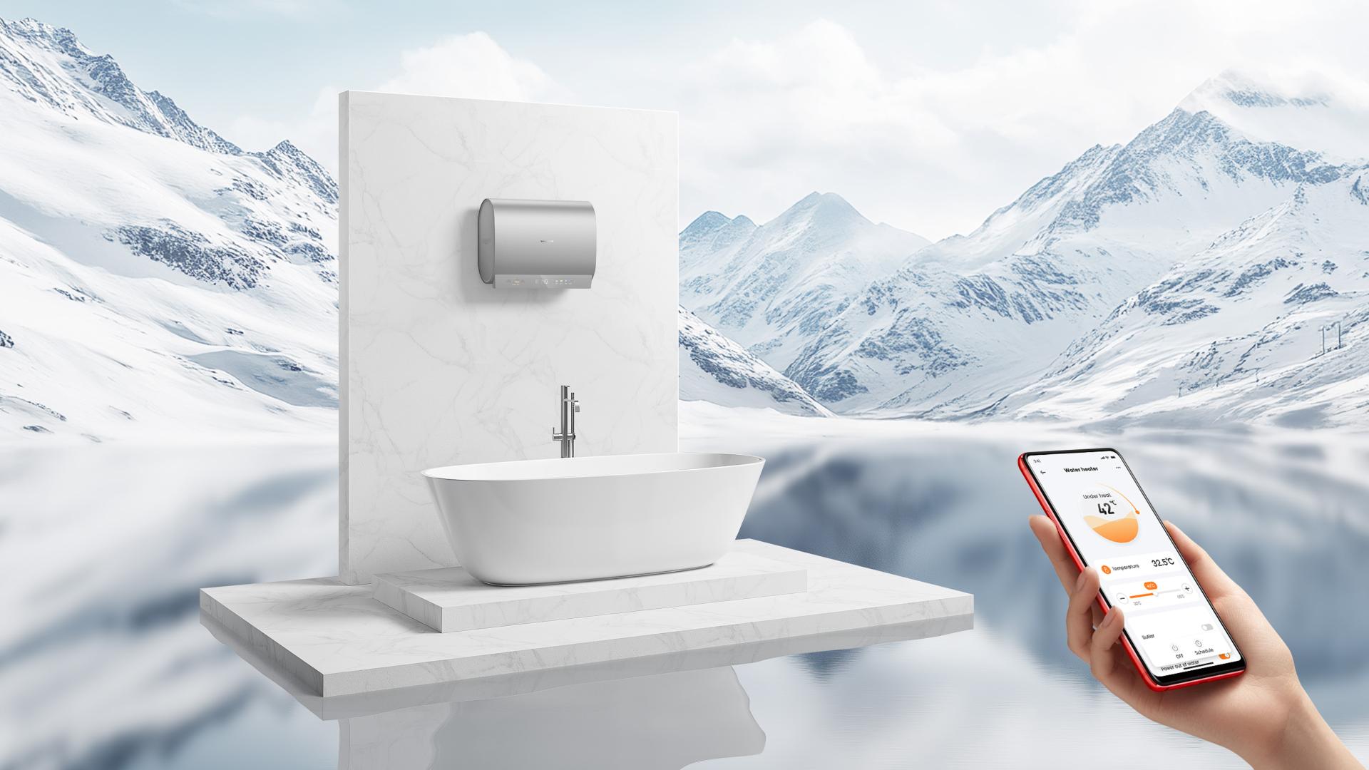 This product is a premium water heater that embodies a reliable brand philosophy, superior usage safety, and a healthy bathing experience. Leveraging industry-leading VIP insulation technology, it achieves the smallest physical size among similar products, saving space while enhancing user convenience. The body is made from recyclable materials, including pre-coated steel for the tank and an ABS plastic outer casing, with all manufacturing processes adhering to environmental assessment standards. This further underscores its commitment to green and environmentally friendly principles. We uphold the brand philosophy of "Reliability, Safety, and Health," aiming to offer users a relaxing experience similar to bathing in Changbai Mountain's mineral springs. Our products highlight health benefits with a purification system featuring a strontium-enriched module, scale inhibition alloy, magnesium rod, blue diamond lining, FOF module, and titanium ceramic heating tube, ensuring high water quality and efficiency. Additionally, the product is equipped with smart control features, allowing users to operate the water heater remotely via a mobile app. Users can preset the water temperature before heading home from work, ensuring a comfortable hot bath awaits them upon arrival, making busy lives more convenient. The product interface ingeniously captures the essence of Chinese landscape painting, depicting Changbai Mountain in an ink painting style. A central light streak symbolizes Changbai Mountain's pure mineral water, changing color with the water's temperature to reflect its dynamic visualization effect. The product features a human-sensing function that gently illuminates the UI interface as you approach, mimicking a mountain sunrise. It then softly reverts to showing the current water temperature. If you step away for over a minute, the screen dims, leaving only essential indicators lit, ensuring energy efficiency. Equipped with dual 3300W titanium ceramic heating elements, the appliance achieves first-class energy efficiency with a hot water output rate of up to 85%. This significantly improves heat conversion efficiency and effectively conserves energy. The use of Vanward’s purification magnesium rods extends the product's lifecycle and reduces the risk of leaks.