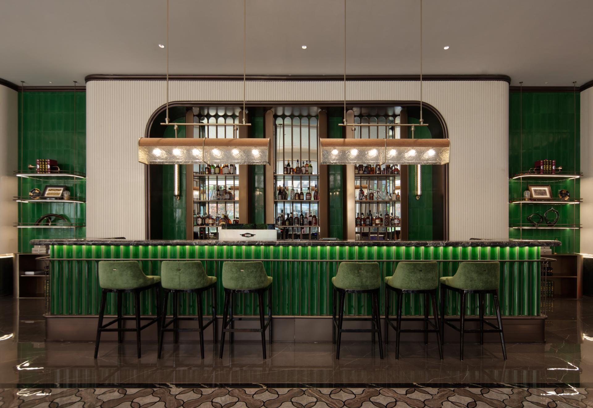 The space adopts the Haipai (Shanghai-style) cultural aesthetic, symbolizing prosperity, refinement, and vibrant urban life. This design language is seamlessly integrated with the cultural essence of Xi’an’s ancient city. Drawing inspiration from the cityscape and architectural elements such as rooftops and nighttime lighting, the color palette features emerald green, ink black, brocade red, and smoky gray. The narrative-driven spatial design unfolds across eight thematic zones: