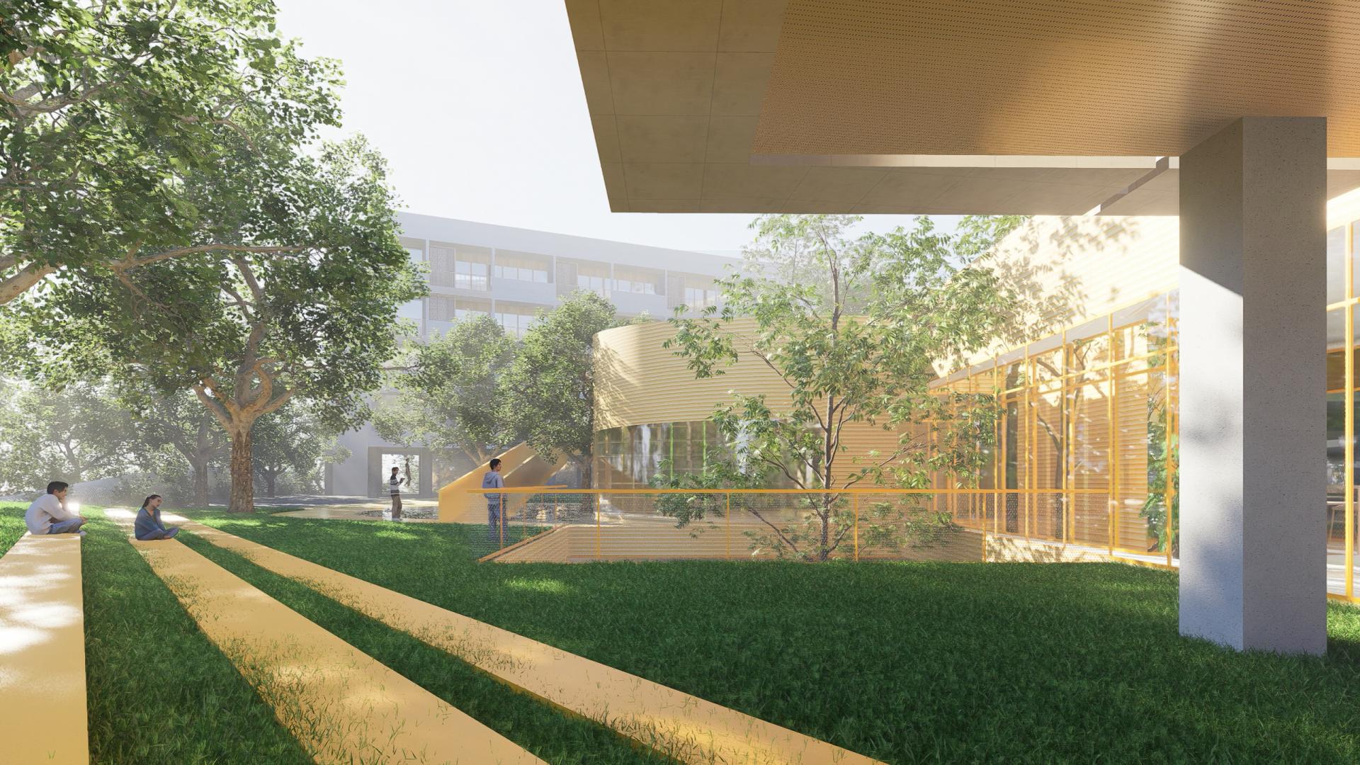 Sustainability is embedded in every aspect of the design. The campus adopts passive energy strategies, including a double-layer shading façade, optimized natural ventilation, and a rainwater collection system to improve efficiency and comfort. Photovoltaic panels, vertical greenery, and rooftop gardens enhance climate adaptability, while locally sourced, low-carbon materials minimize environmental impact. The integration of sponge city principles ensures efficient water management, reducing urban runoff and enhancing ecological resilience.