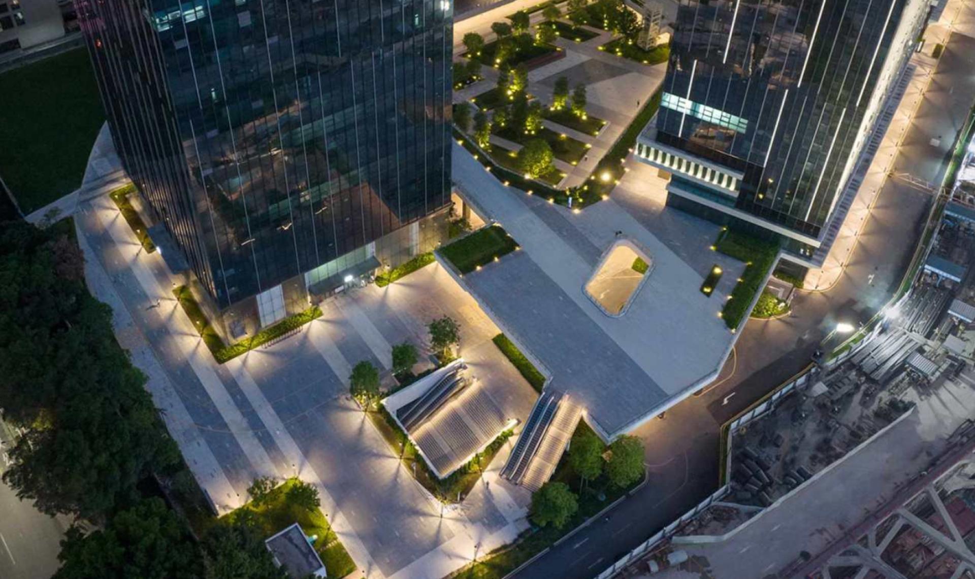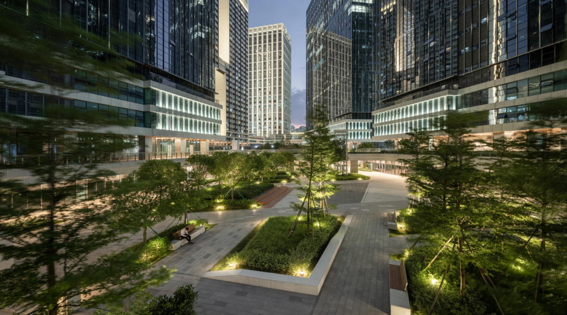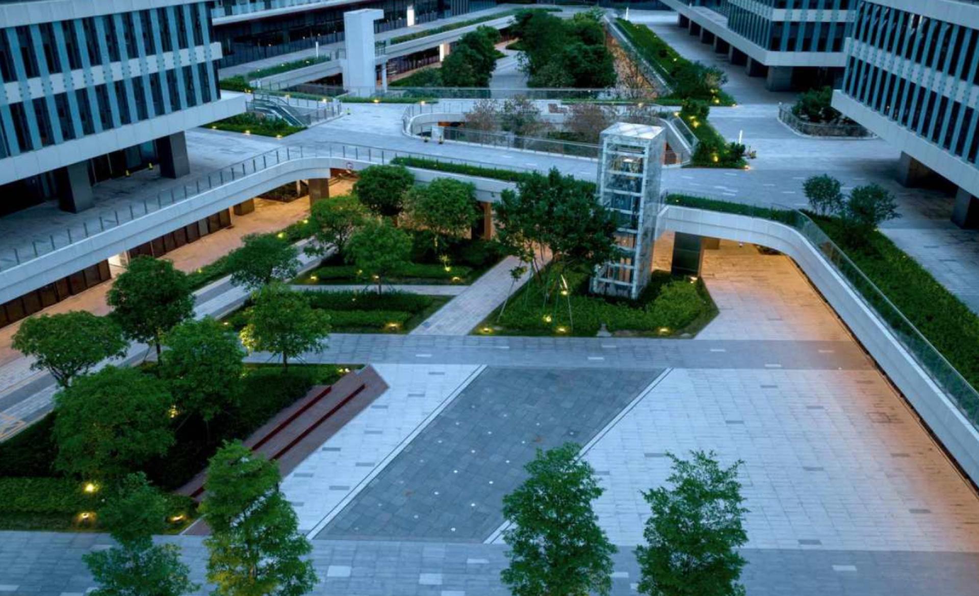 Nanshan ZhiGu Industrial Park, as a flagship project in Shenzhen's Nanshan District to promote technological and industrial upgrading, embodies a design philosophy centered on "innovation, ecology, intelligence, and humanity." It integrates cutting-edge technology with sustainable development principles, creating a composite industrial ecosystem that combines office spaces, R&D facilities, collaborative platforms, and lifestyle amenities. The park breaks away from traditional flat greening models by establishing a three-dimensional ecological system comprising "rooftop gardens + vertical greenery + sunken courtyards." The architectural facade adopts a "tech pixel" concept, featuring staggered combinations of glass and metal panels to metaphorize the fragmentation and recombination of the digital era. The entrance plaza showcases the "Tree of Innovation" sculpture, an abstract fusion of Lingnan banyan tree imagery and electronic circuit motifs, symbolizing the symbiosis of regional culture and technological spirit. Rooftops are planted with drought-resistant vegetation and integrated with photovoltaic panels for both heat insulation and power generation. Modular green walls on the exterior, equipped with automated drip irrigation systems, form a breathable "ecological skin." Sunken courtyards channel natural light and ventilation, complemented by water features and native plants to create micro-ecosystems. Calculations indicate that this multi-dimensional greening reduces building energy consumption by approximately 25%, with significant carbon reduction benefits. Guided by the "Sponge City" concept, the park utilizes permeable paving and underground rainwater collection pools, achieving an annual rainwater recycling capacity exceeding 15,000 tons for irrigation and landscape replenishment. Internally, a greywater reuse system treats domestic wastewater for toilet flushing, achieving a 40% water-saving rate. Technologies such as air-conditioning waste heat recovery and light-guiding illumination further enhance resource efficiency. Additionally, the park has earned LEED Gold and China Three-Star Green Building certifications, achieving 60% energy self-sufficiency through geothermal heat pumps, photovoltaic power generation (annual output exceeding 500,000 kWh), and energy storage systems. The facade employs Low-E glass and aerogel insulation materials, improving thermal performance by 30% compared to national standards, substantially reducing HVAC loads.