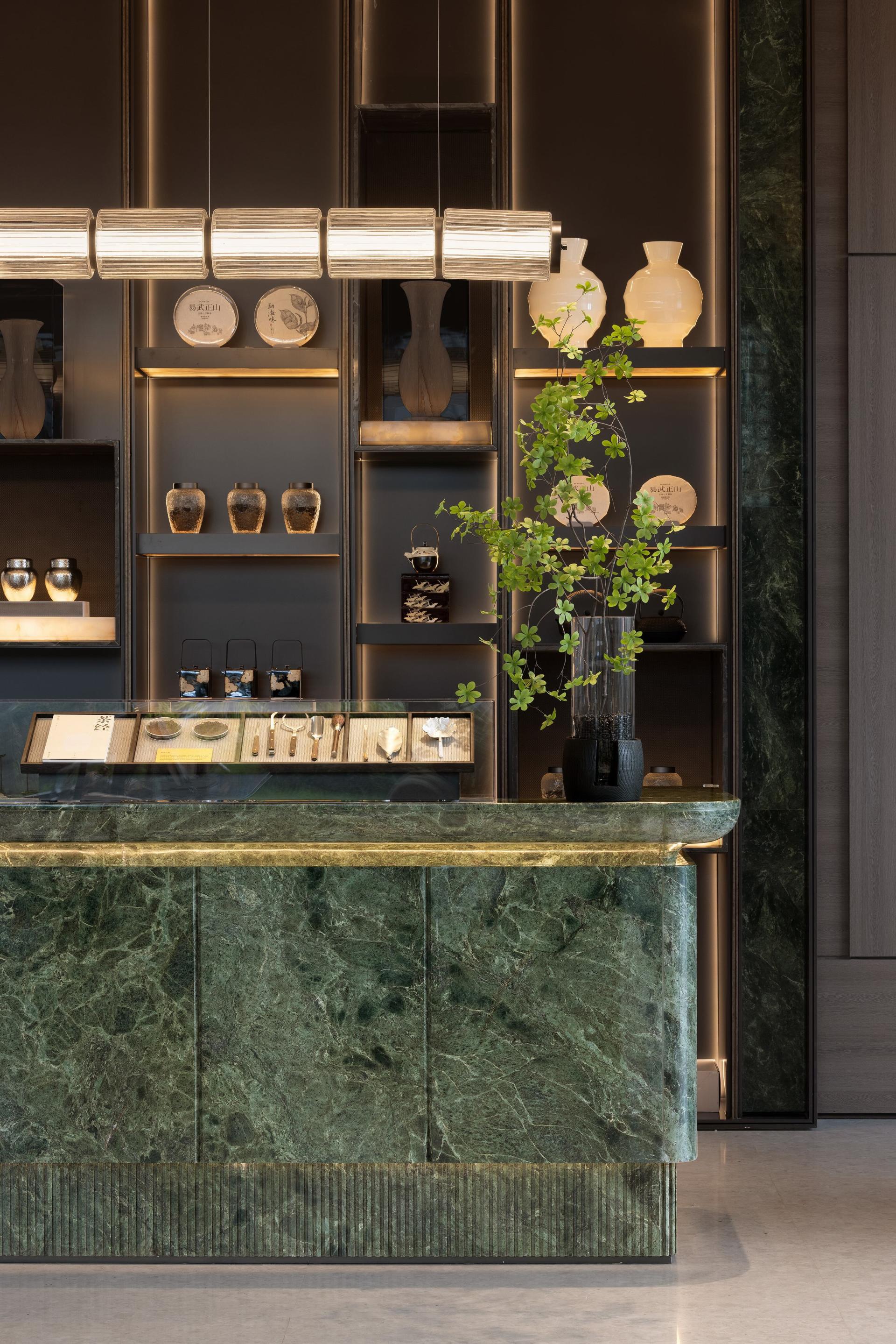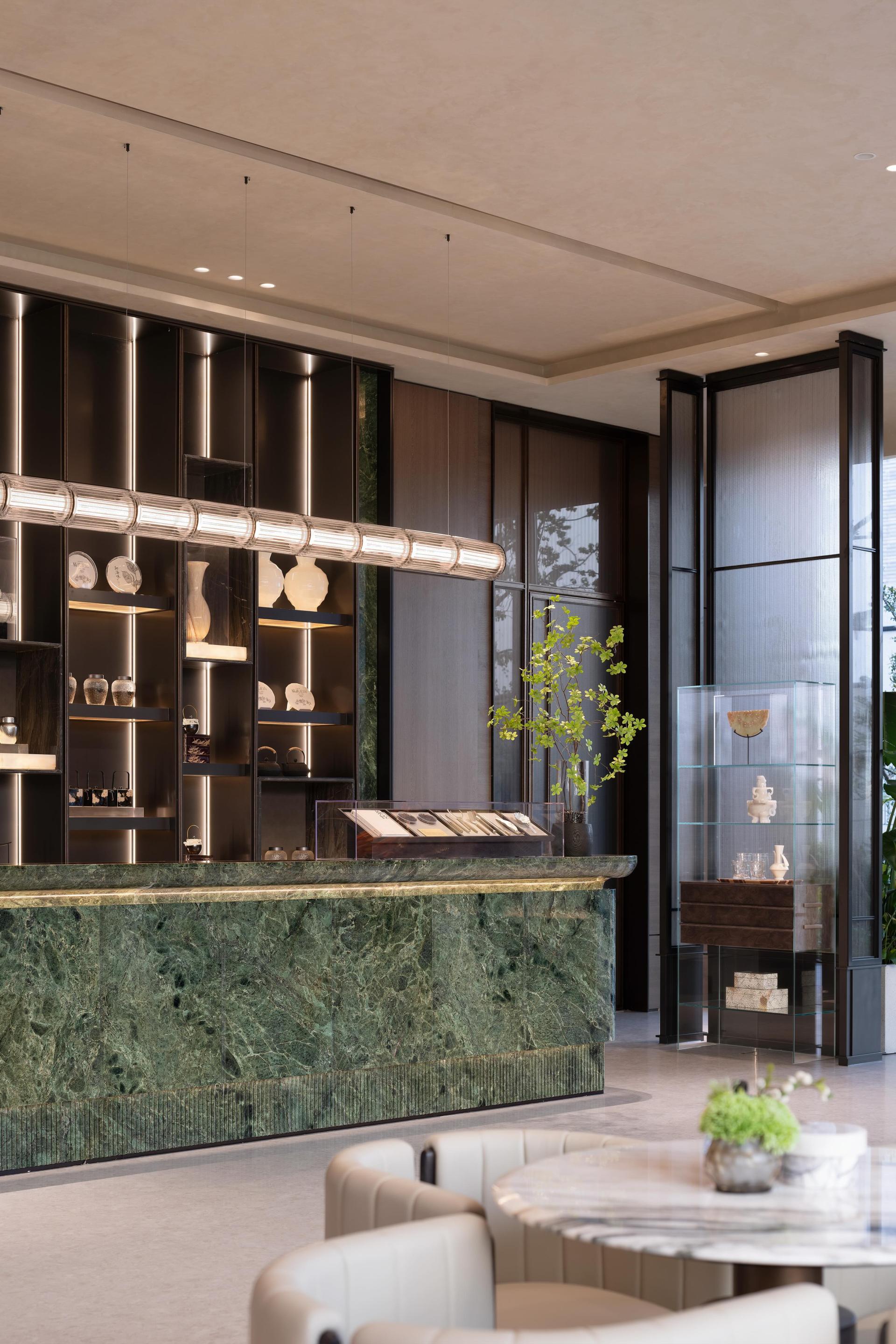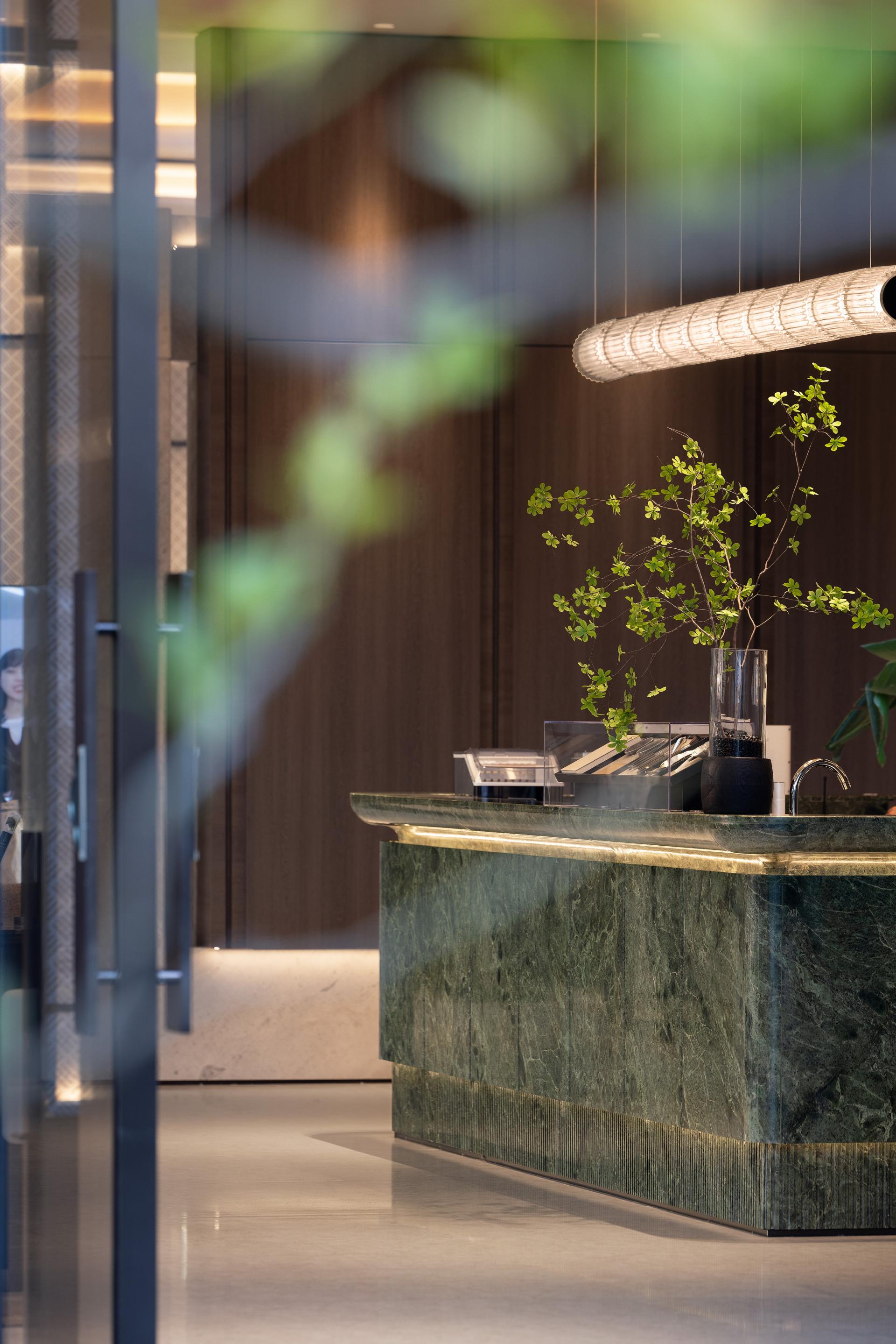 We intend to interpret oriental connotations and natural aesthetics through modern design language. The use of a large number of glass screens and windows allows visual communication between different spaces, indoors and outdoors, and integrates materials, colors, light and shadow into design. The gentleness of wood and the green marble inject the vitality of nature into the space. Elongating the horizontal windows makes the space more extended, which not only makes the space "elongated", but also brings scenery into the room, and is also in line with the traditional viewing method of Chinese aesthetics.