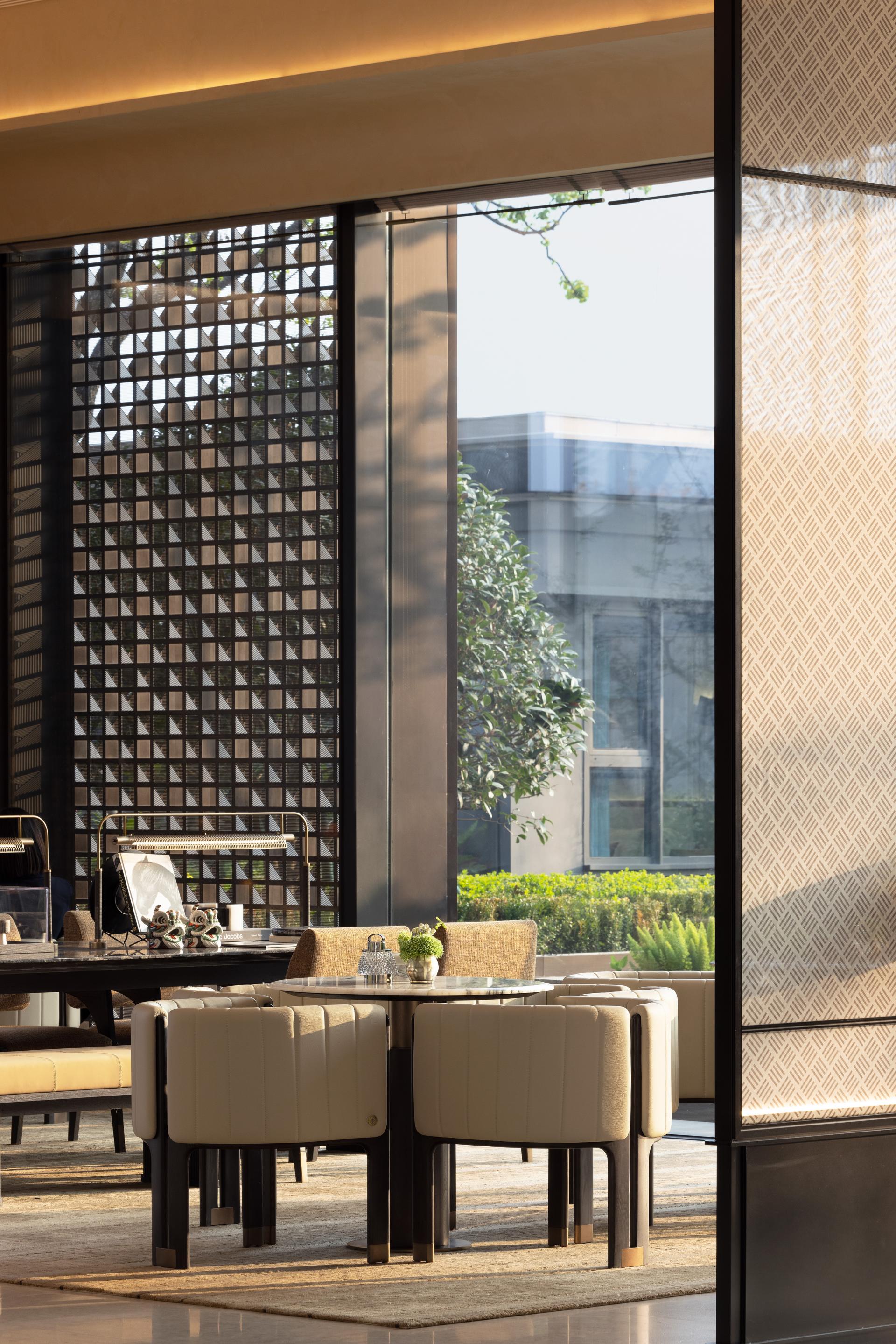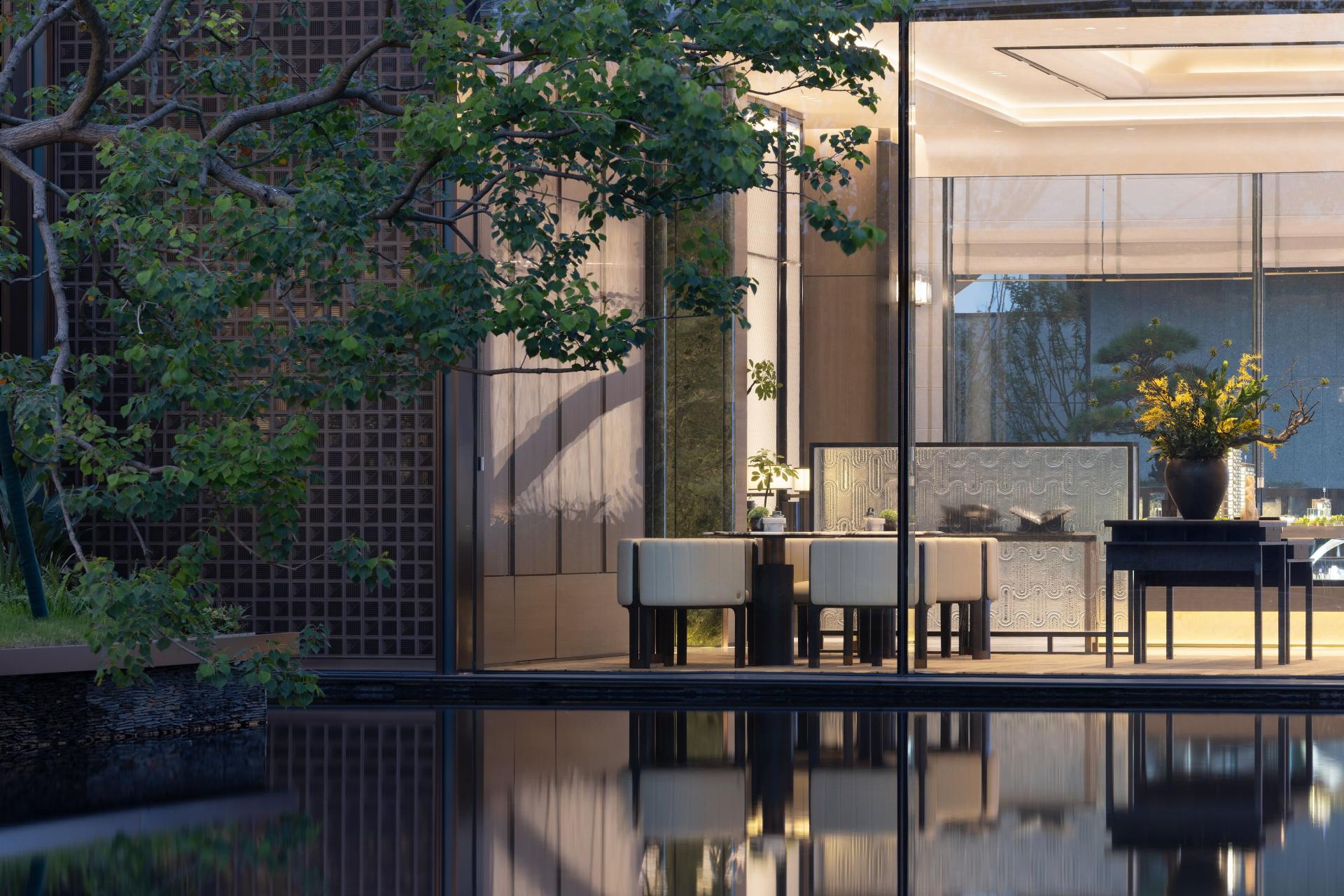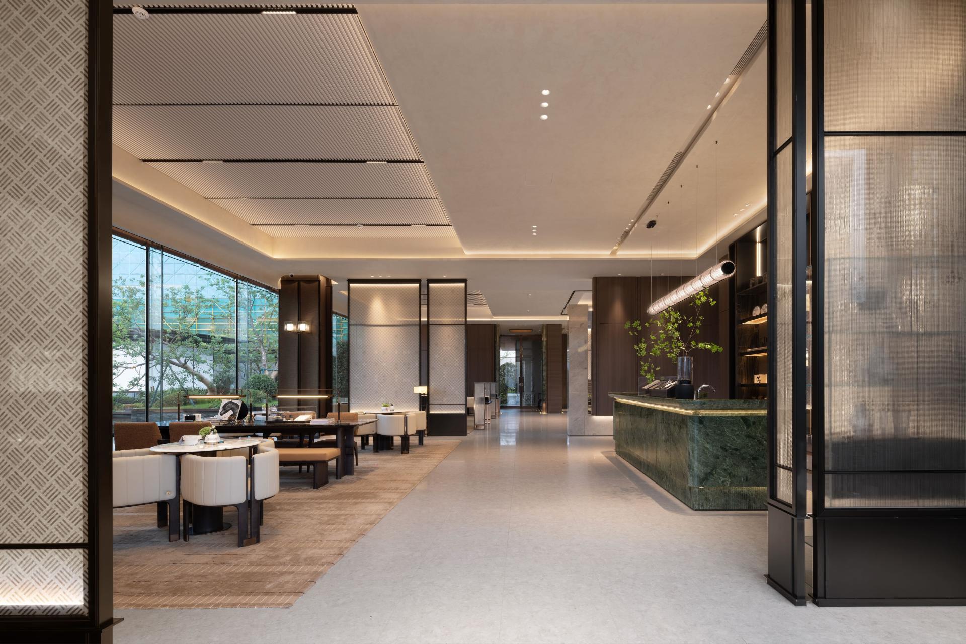 We intend to interpret oriental connotations and natural aesthetics through modern design language. The use of a large number of glass screens and windows allows visual communication between different spaces, indoors and outdoors, and integrates materials, colors, light and shadow into design. The gentleness of wood and the green marble inject the vitality of nature into the space. Elongating the horizontal windows makes the space more extended, which not only makes the space "elongated", but also brings scenery into the room, and is also in line with the traditional viewing method of Chinese aesthetics.