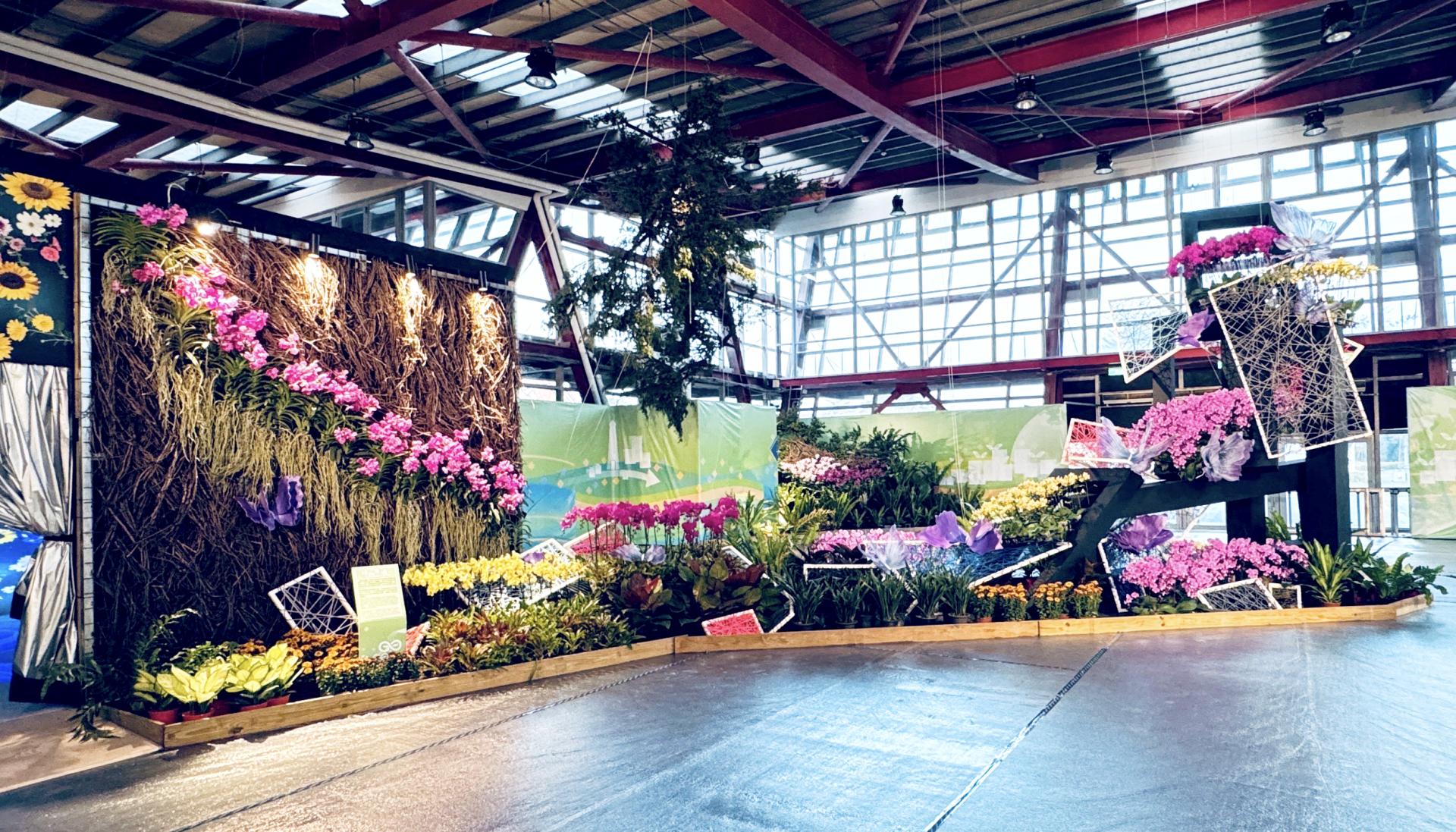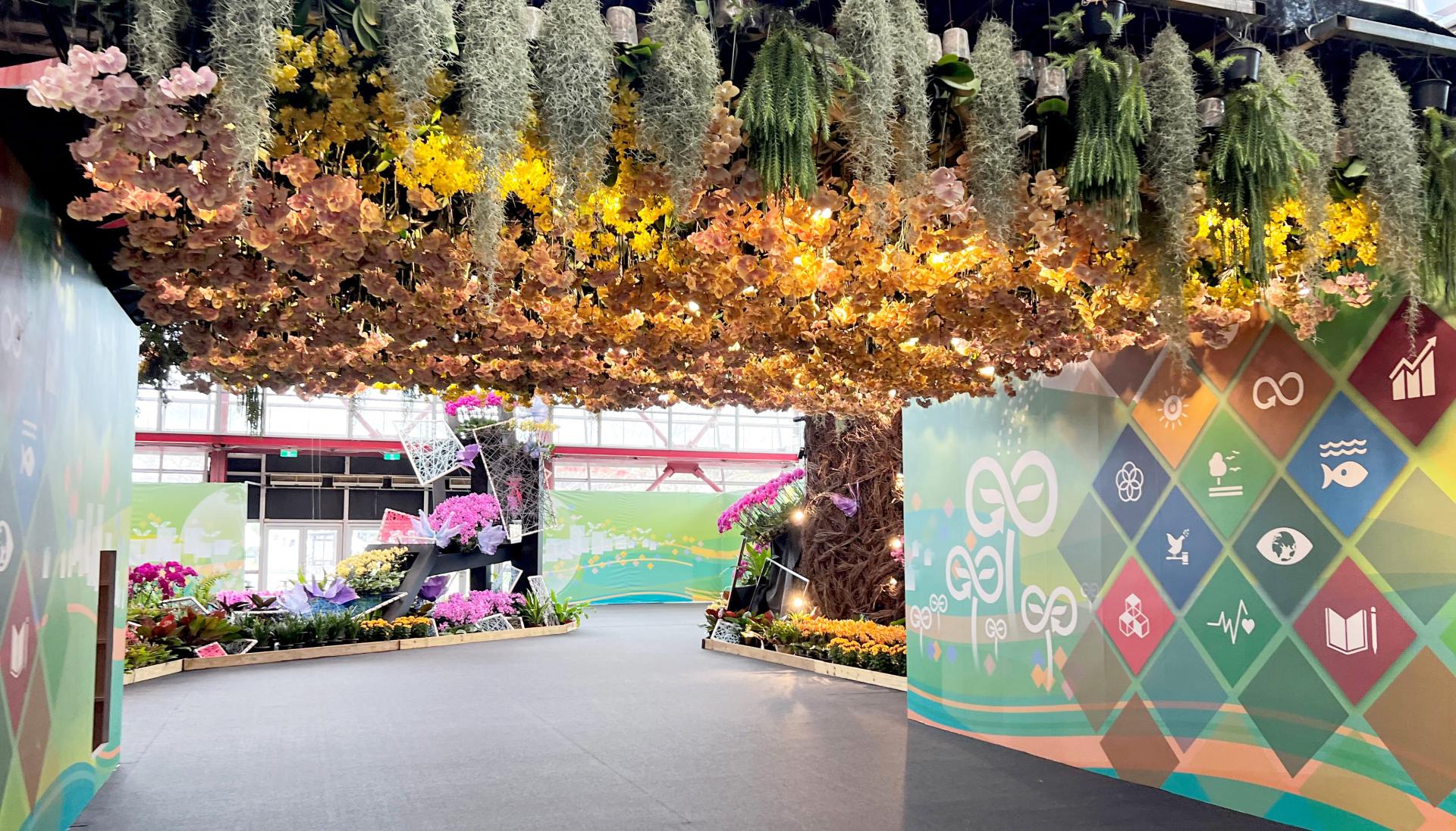 The "Green Sustainability" area reflects the flower industry's commitment to sustainability, advocating for sustainable agriculture and ESG principles. Ingeniously incorporating agricultural waste, it interweaves discarded grapevines with plants, showcasing the creative aesthetics of resource reuse and breathing new life into discarded materials