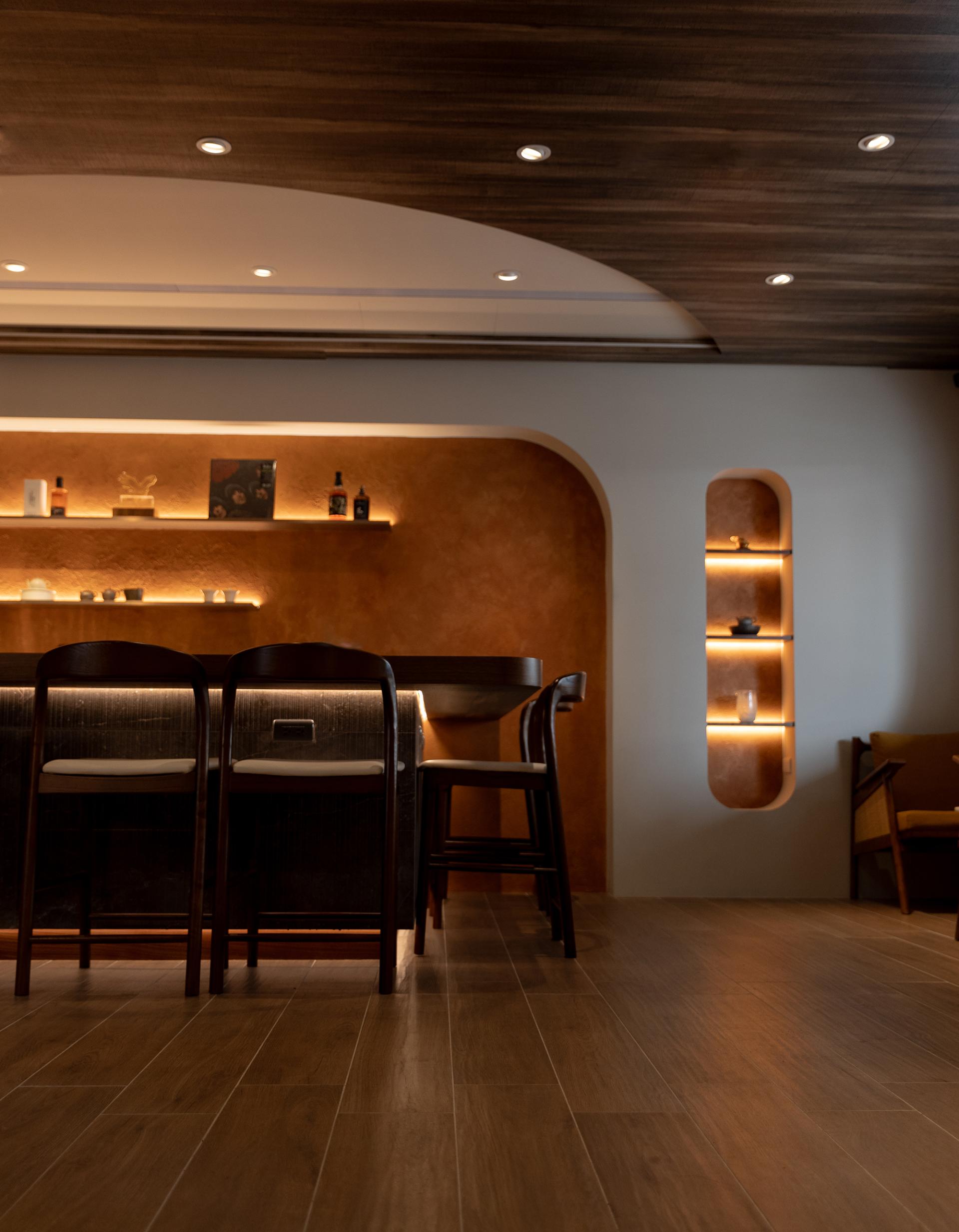 This project entails the thoughtful planning of a versatile dining space that elegantly merges a tea room, bar, and art exhibition area. The design is meticulously crafted to create a serene retreat, inviting guests to escape the frenetic pace of urban life, in alignment with the owner's vision. To achieve a tranquil atmosphere, the design team employed innovative strategies, including a two-way circulation system and soundproof wall constructions that effectively shield the interior from external disturbances. An inviting palette of stone, wood, and clay, combined with soft lighting and graceful curved elements, infuses the space with a warm, inviting ambiance that encourages relaxation and conversation.